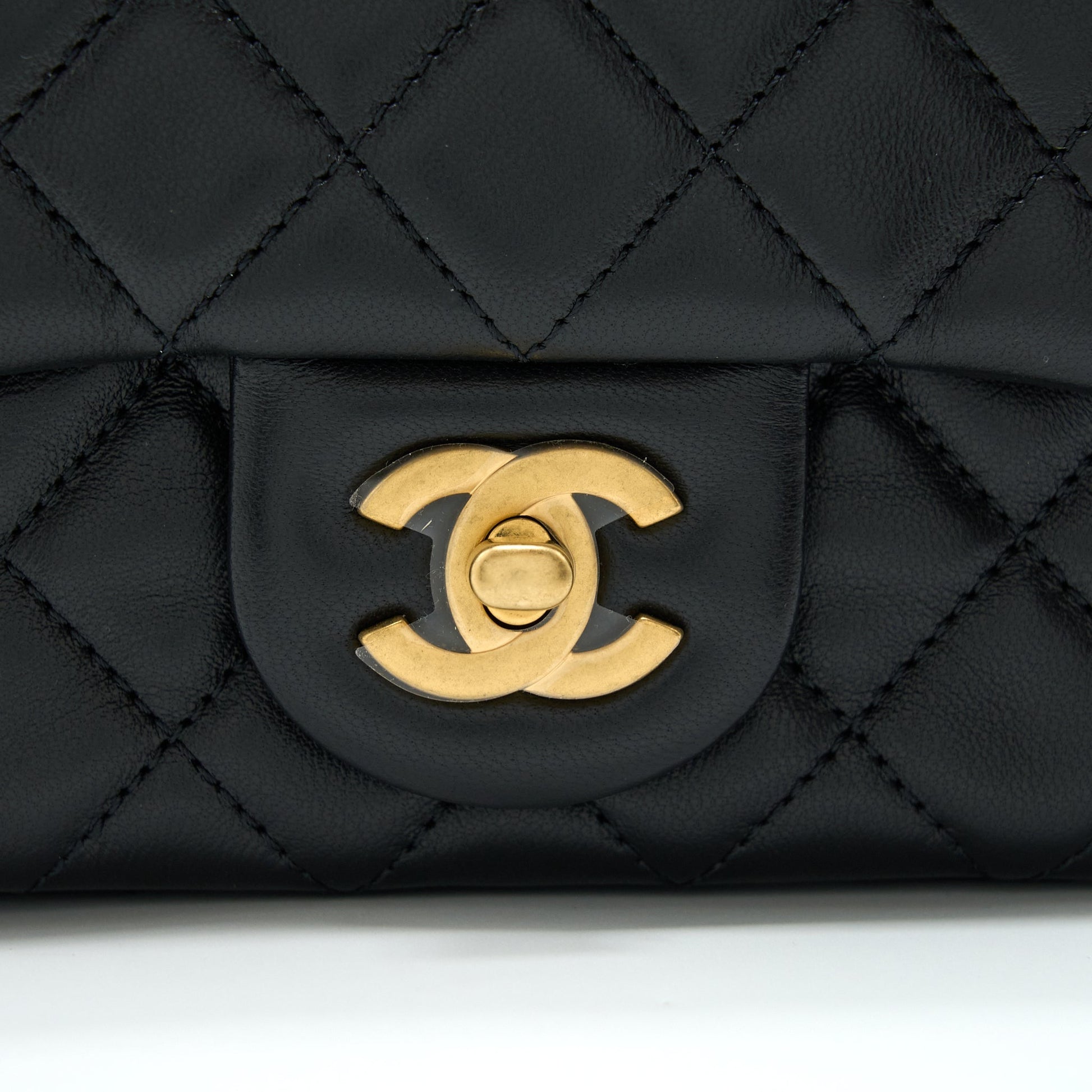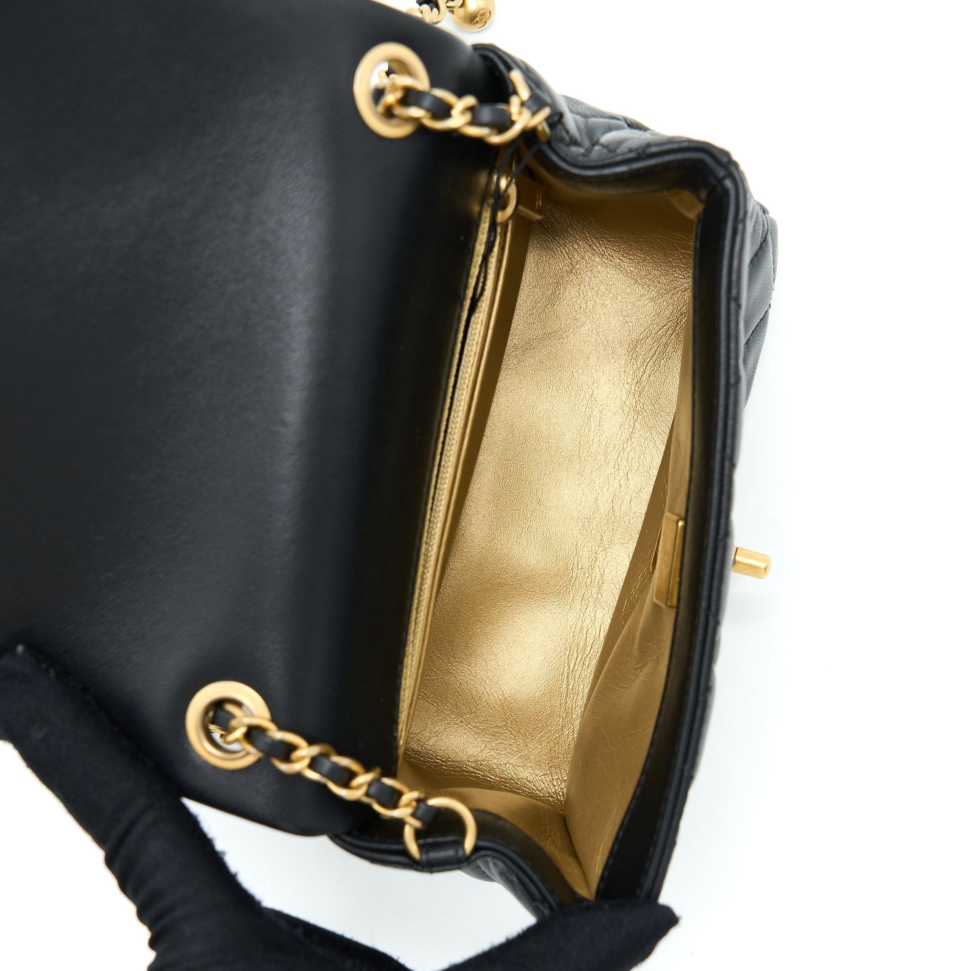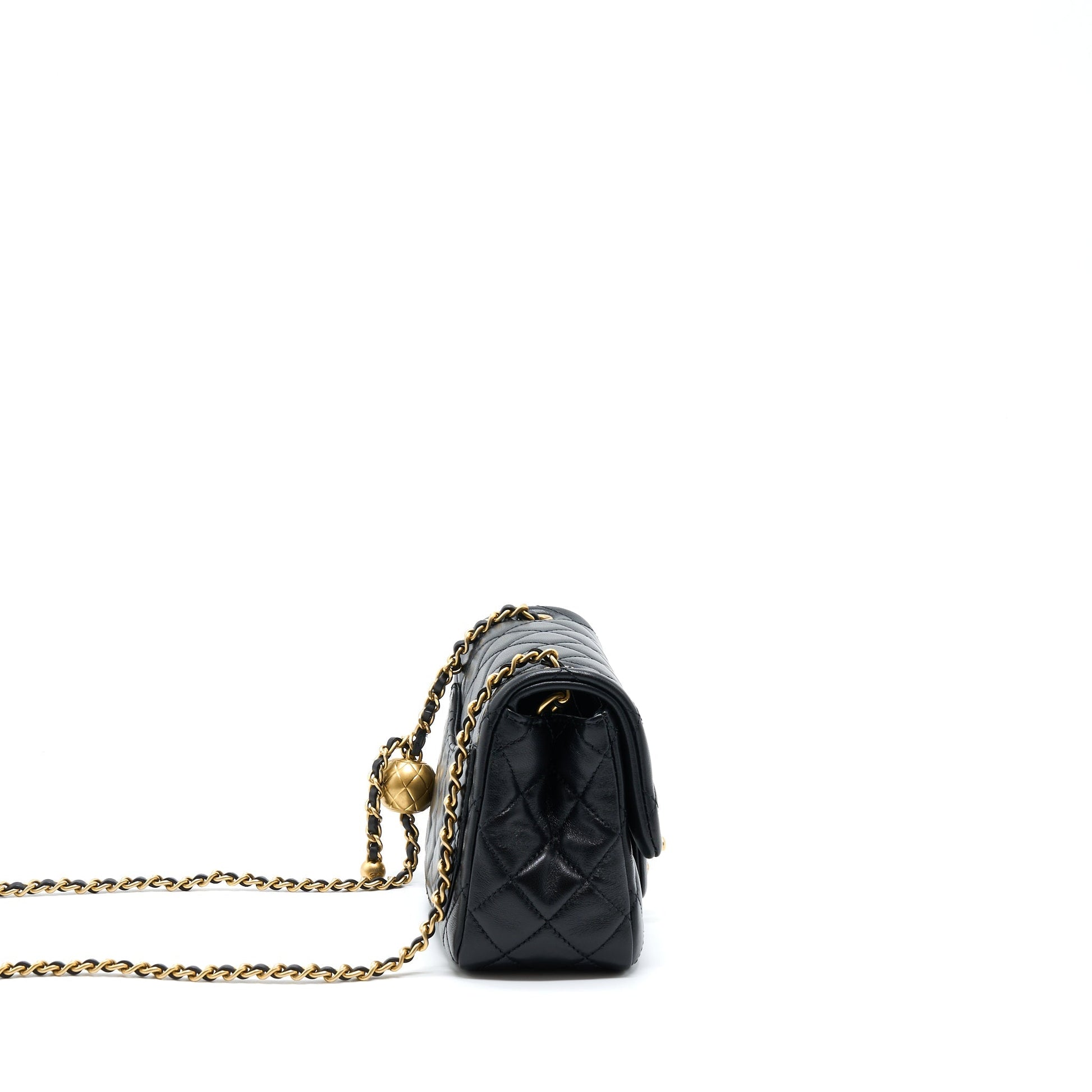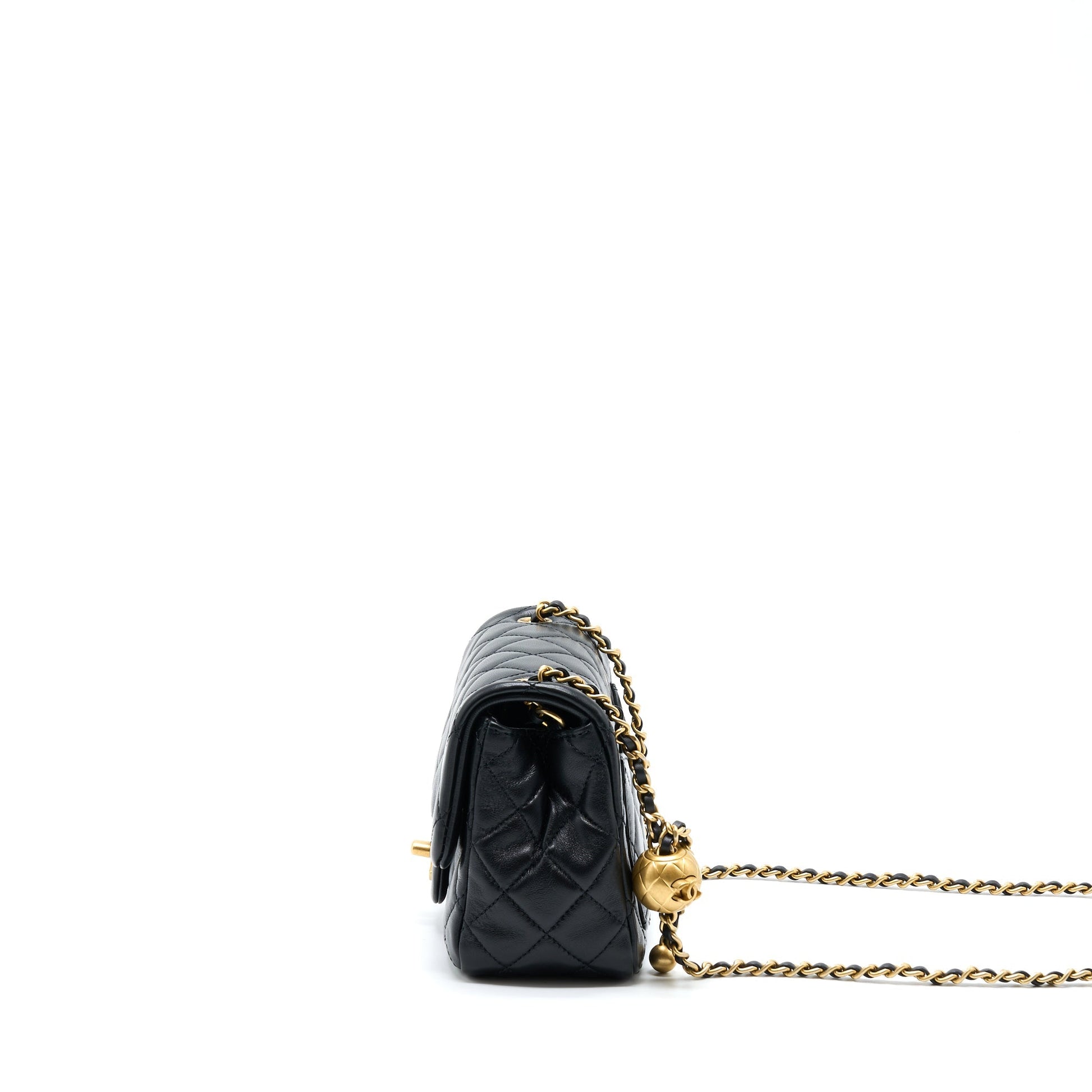 Chanel Pearl Crush Mini Square Flap Bag Lambskin Black GHW (Microchip)