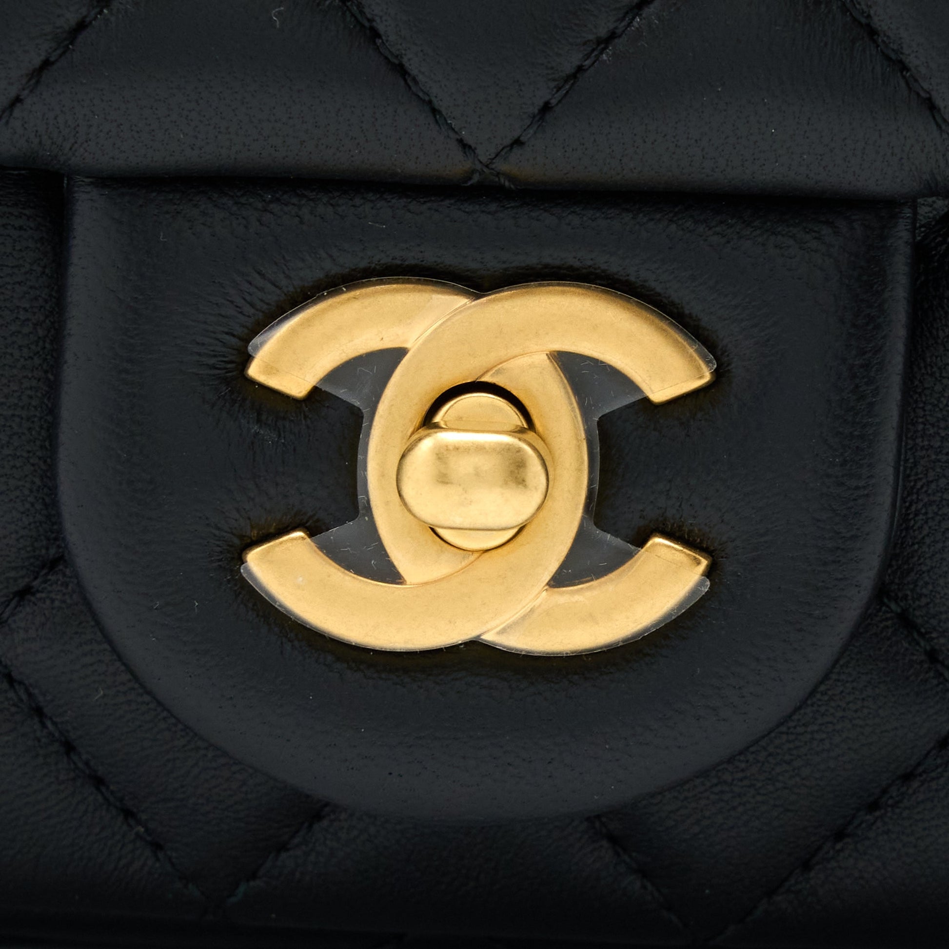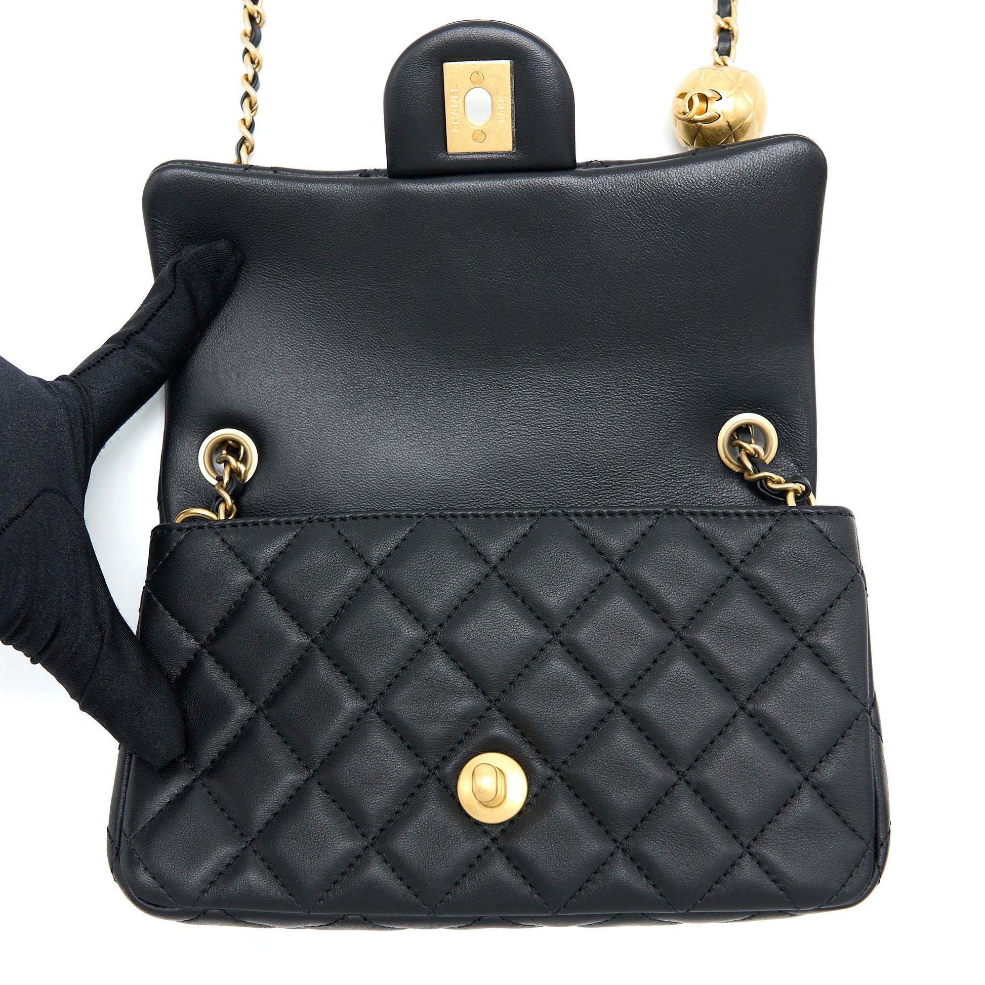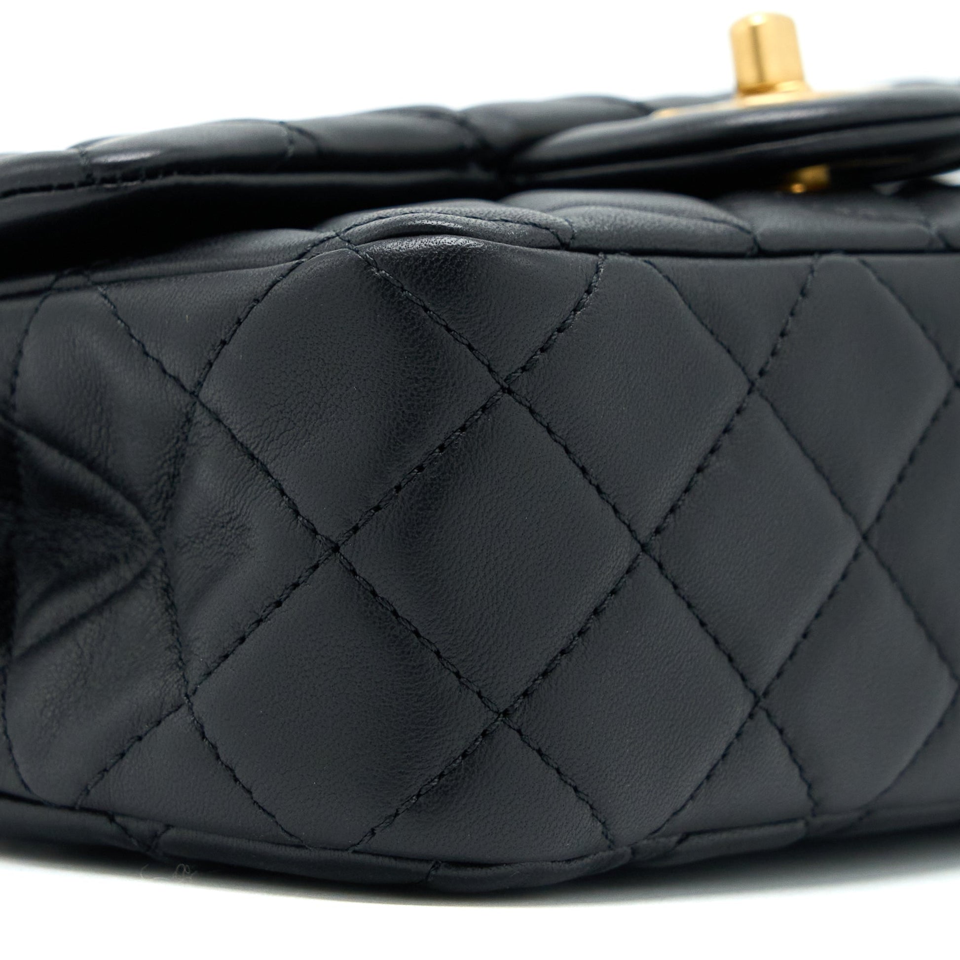 Chanel Pearl Crush Mini Rectangular Flap Bag Lambskin Black GHW (Microchip)