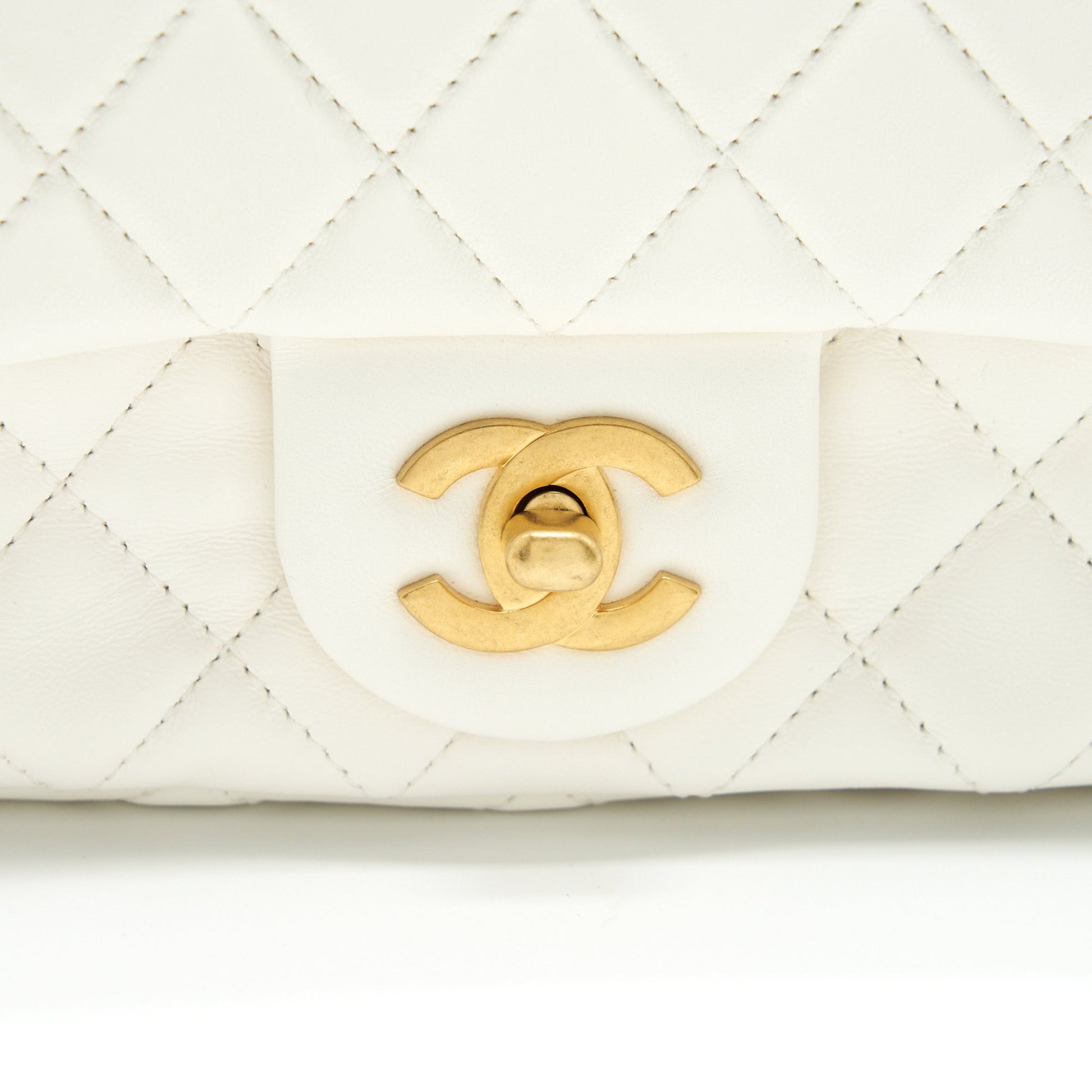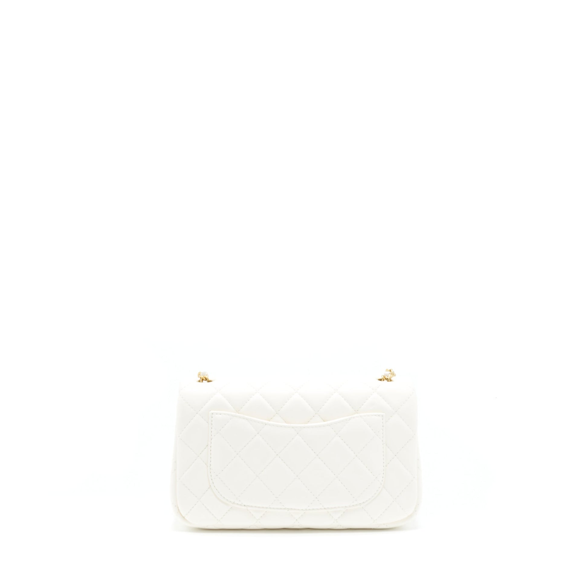 Chanel Pearl Crush Mini Rectangular Flap Bag Lambskin White GHW (Microchip)