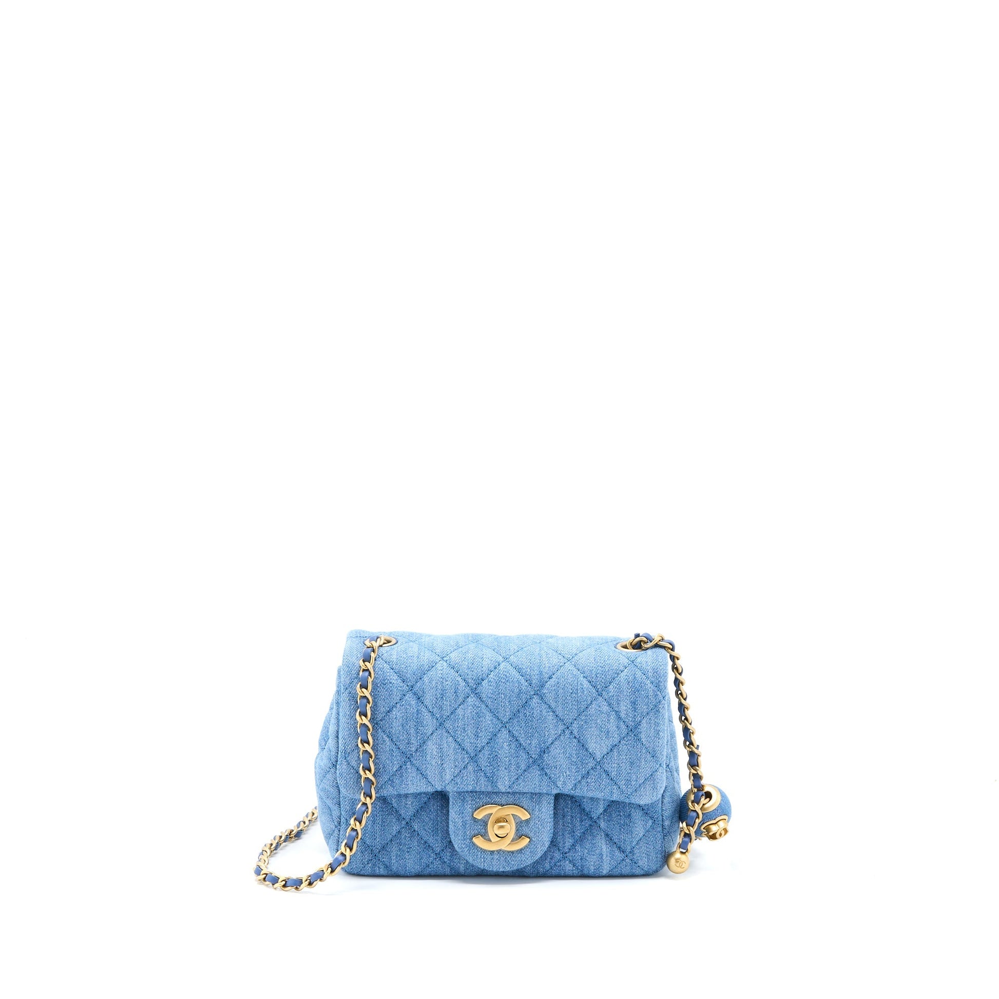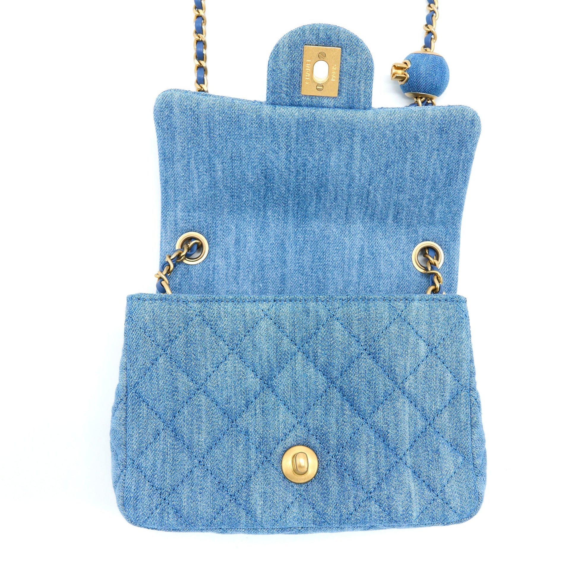 Chanel Pearl Crush Mini Square Flap Bag Denim GHW (Microchip)