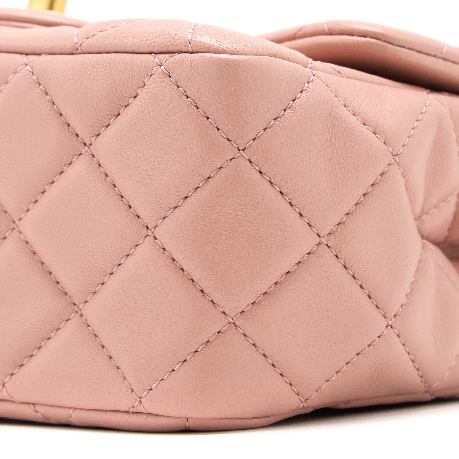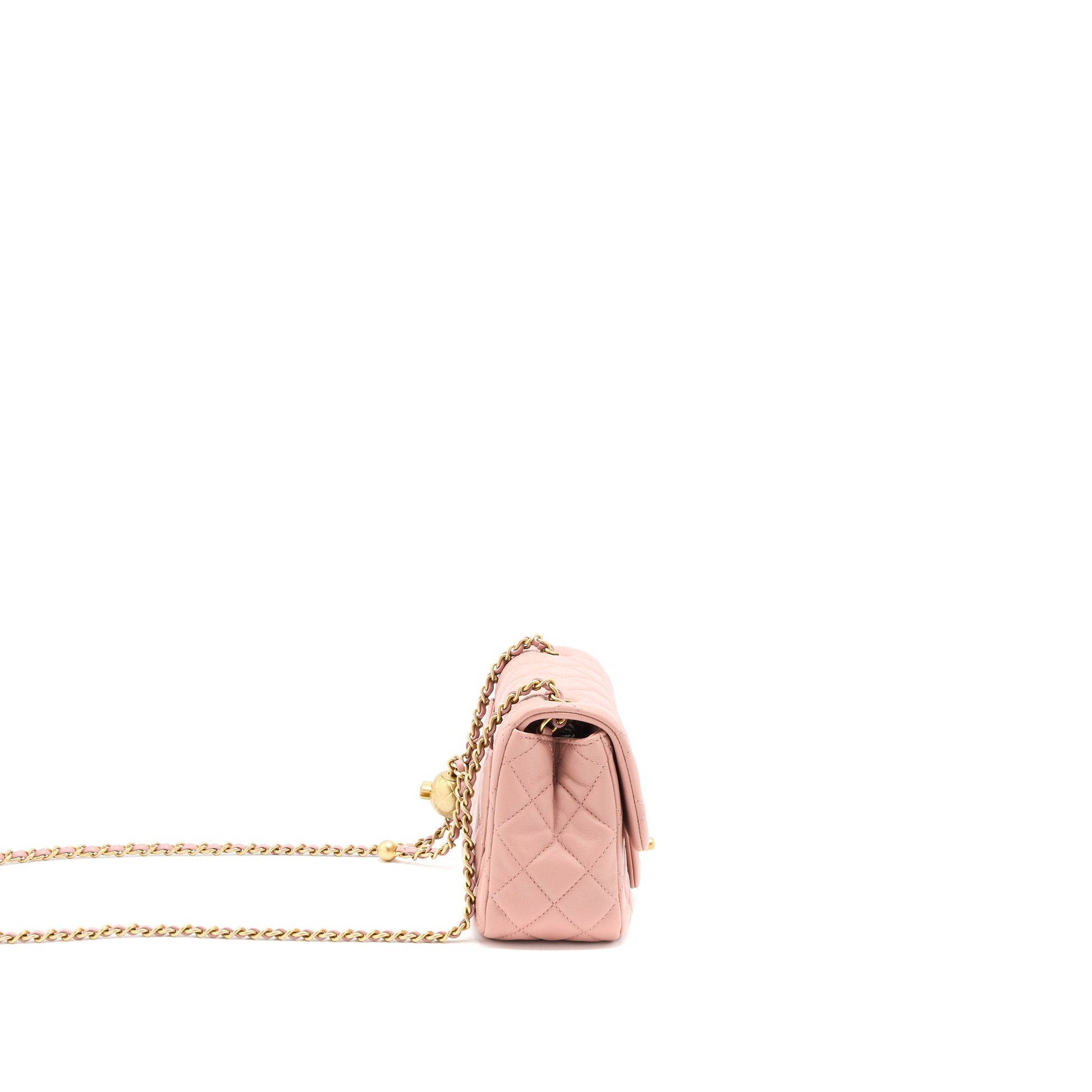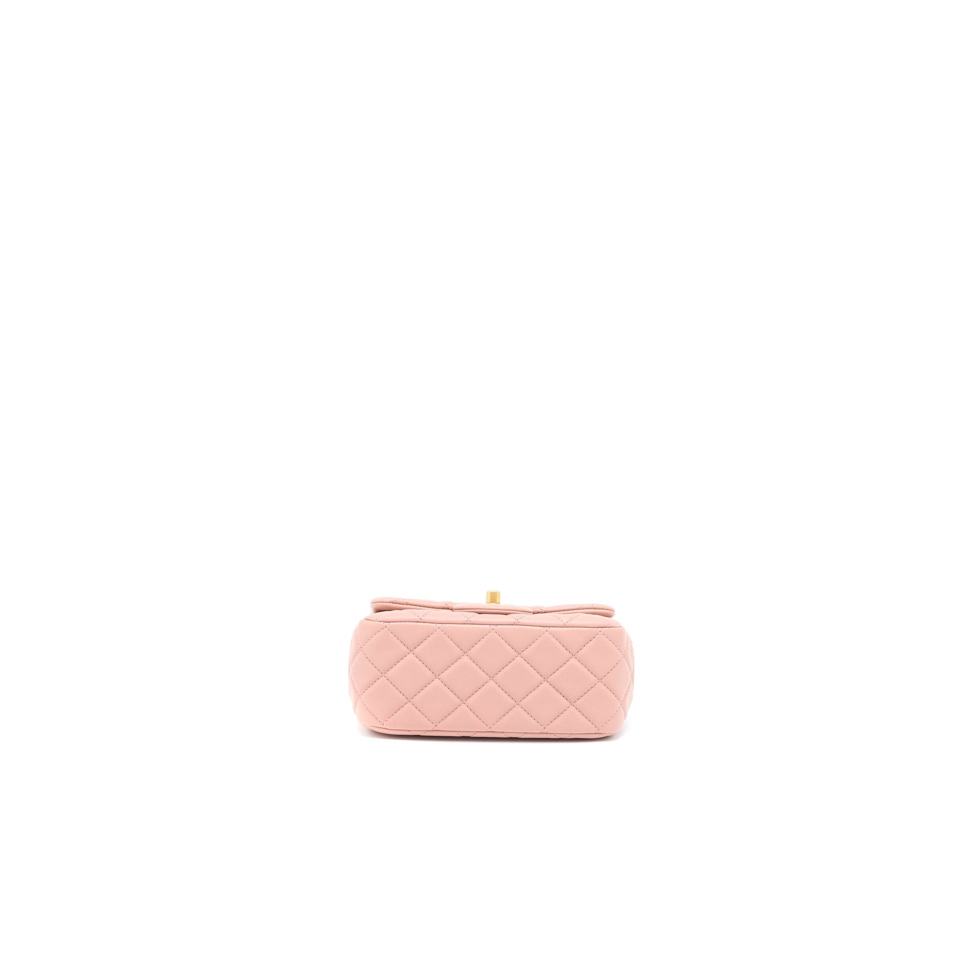 Chanel Pearl Crush Mini Square Flap Bag Lambskin Dark Pink GHW (Microchip)