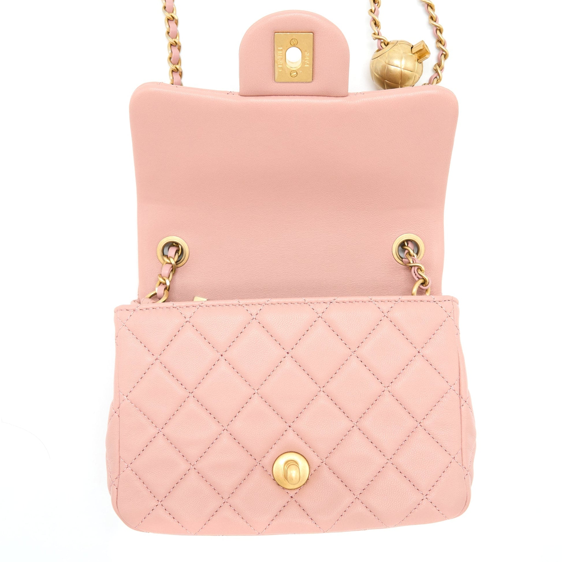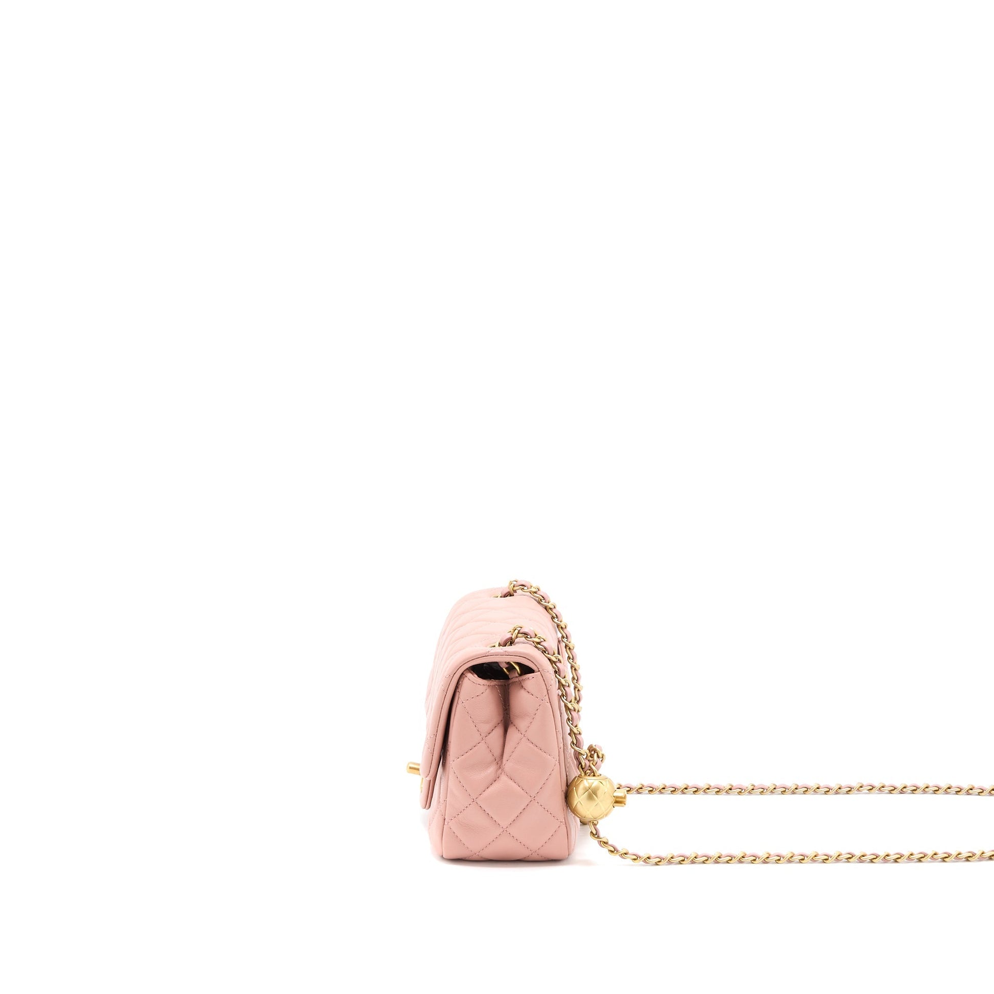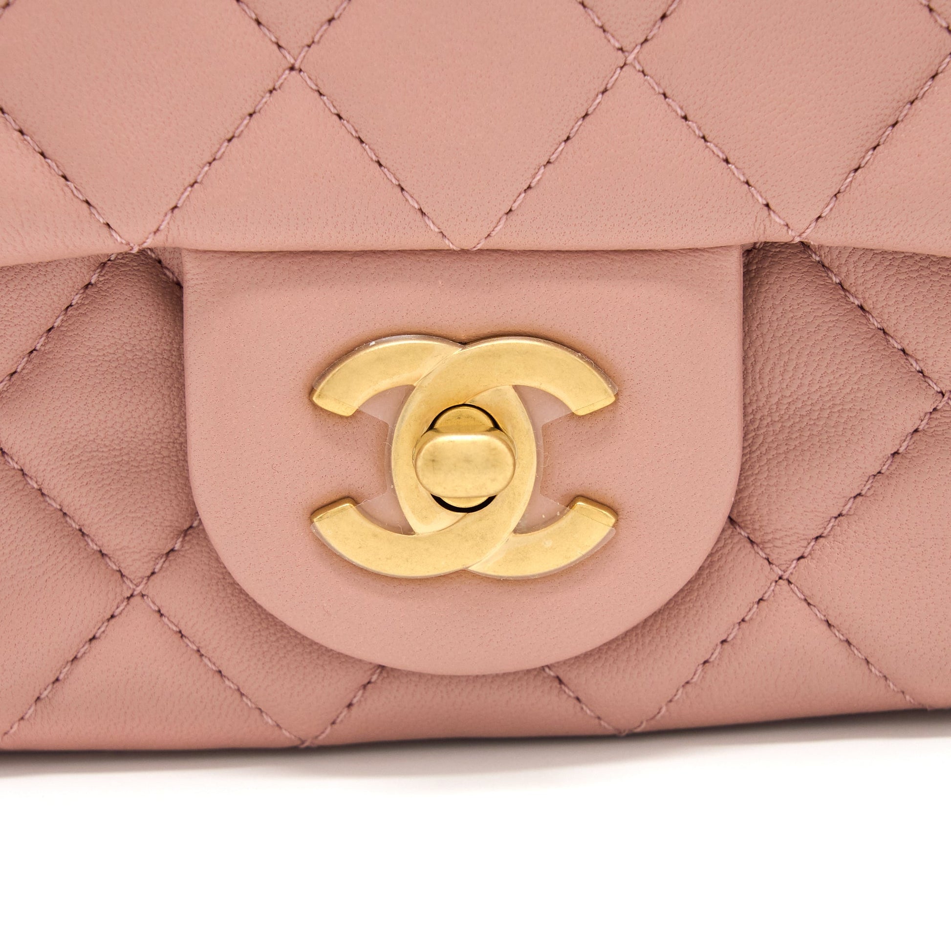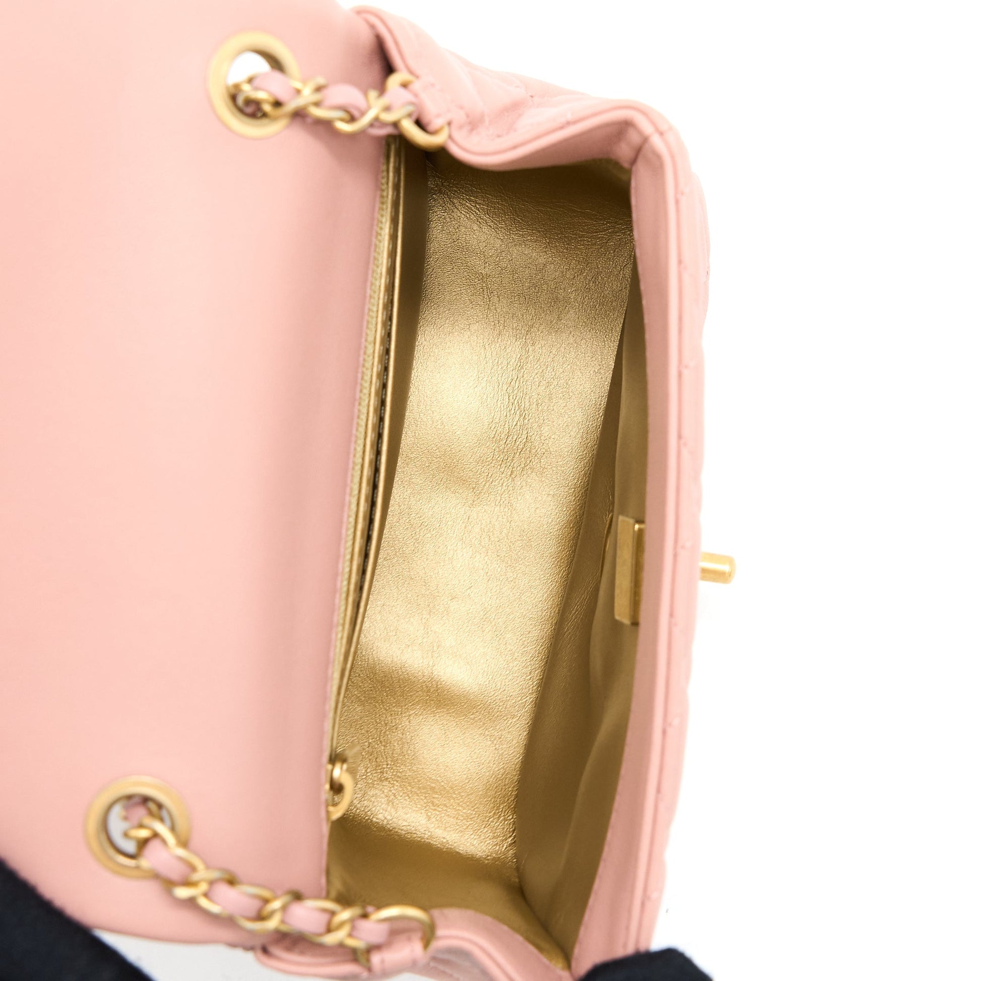 Chanel Pearl Crush Mini Square Flap Bag Lambskin Dark Pink GHW (Microchip)