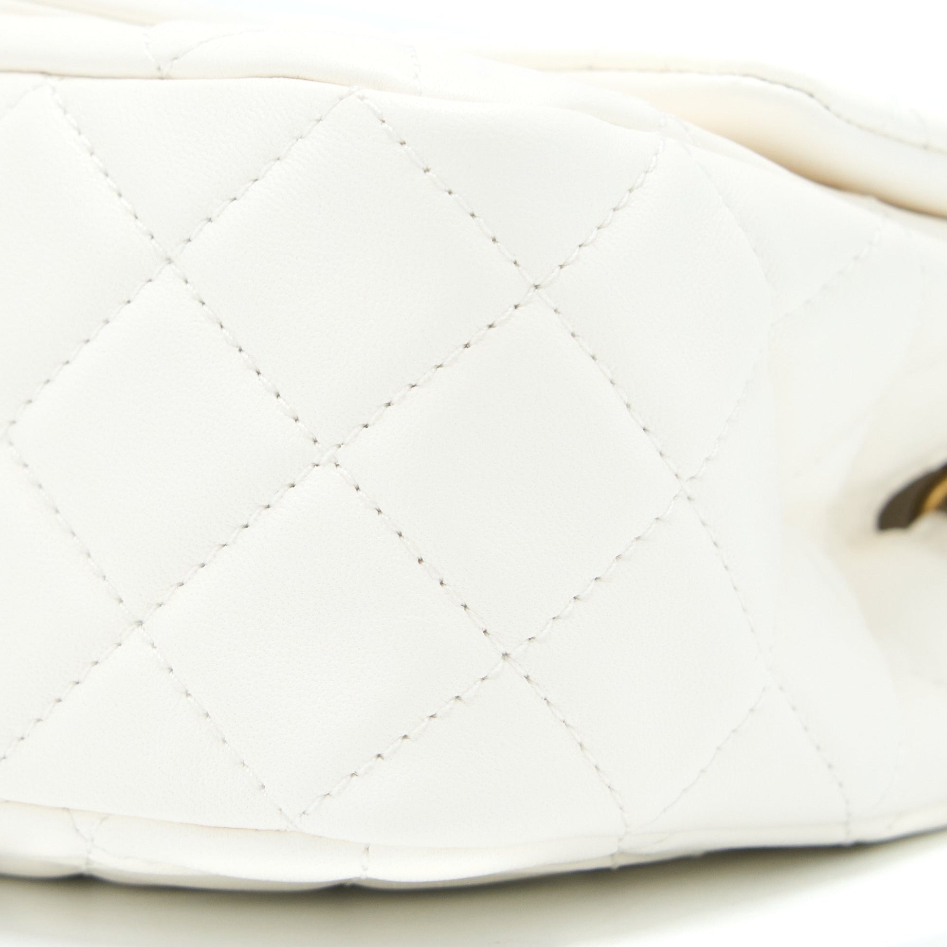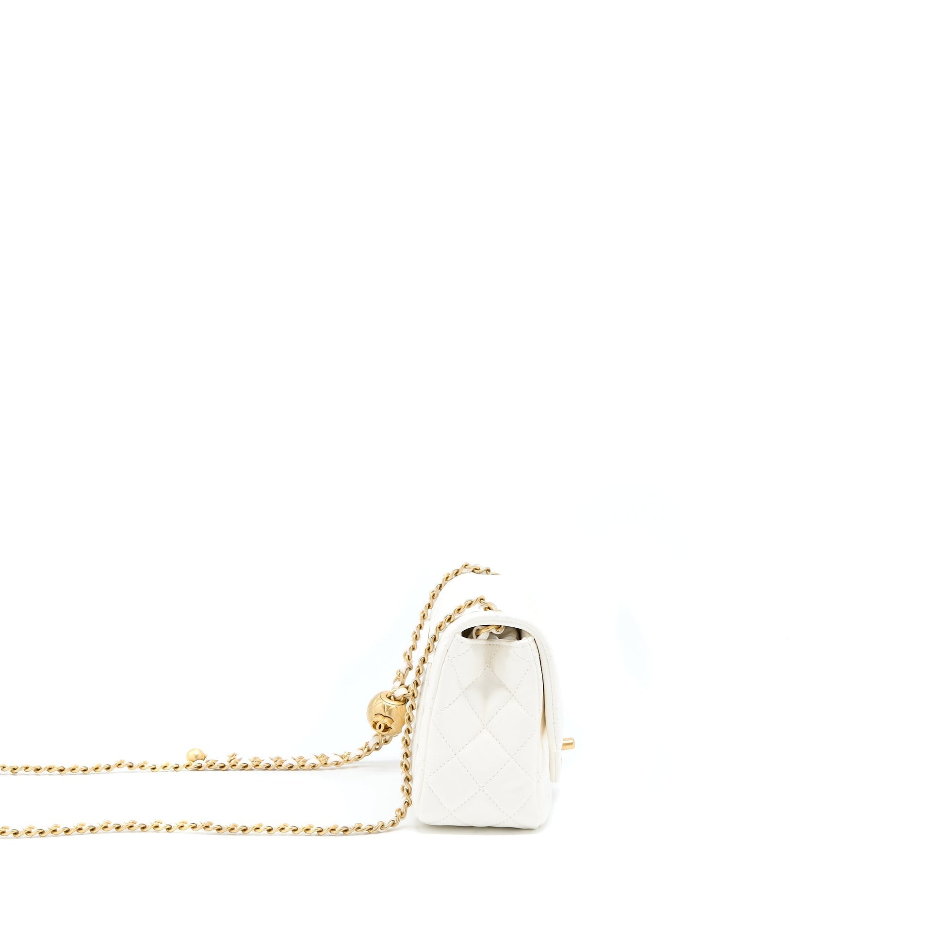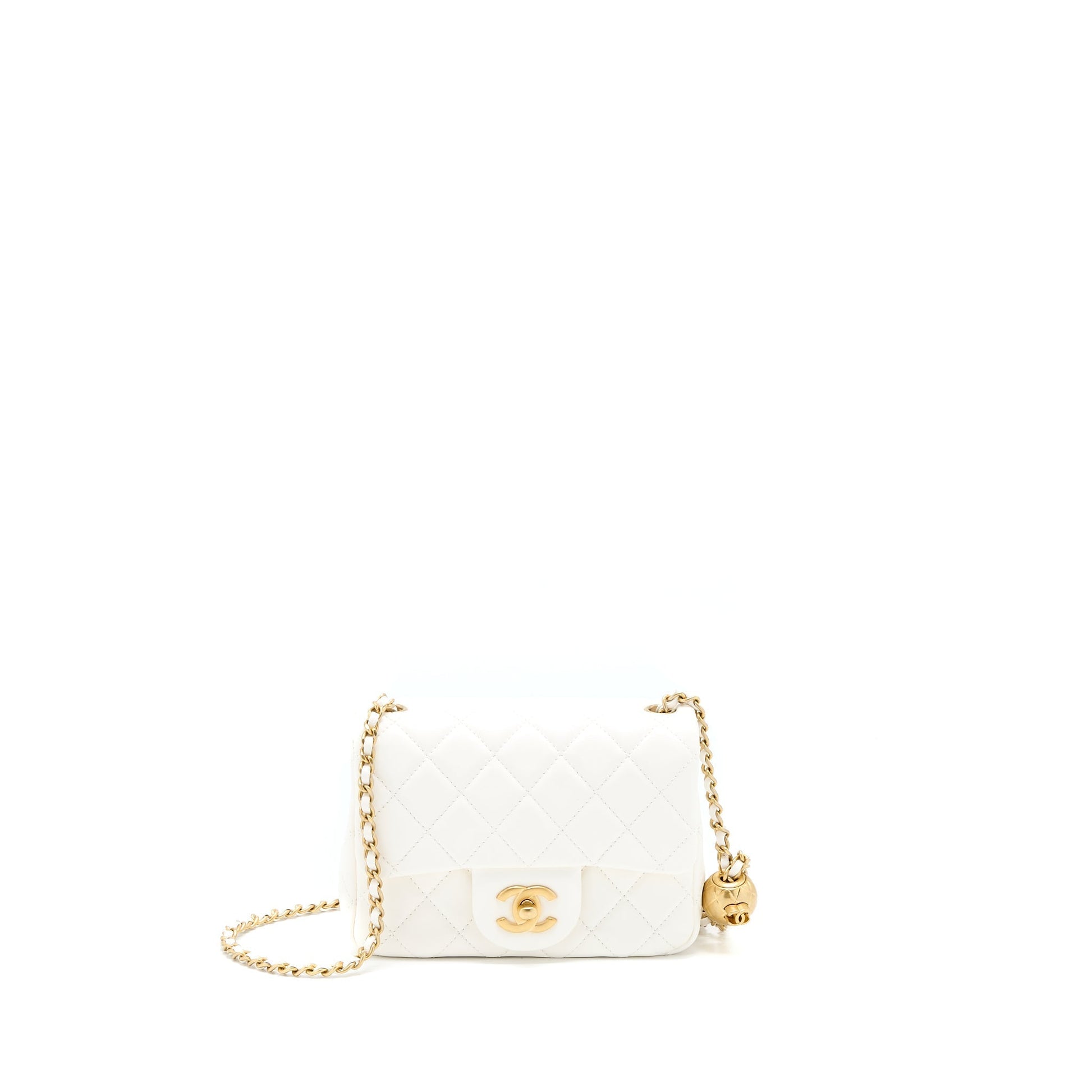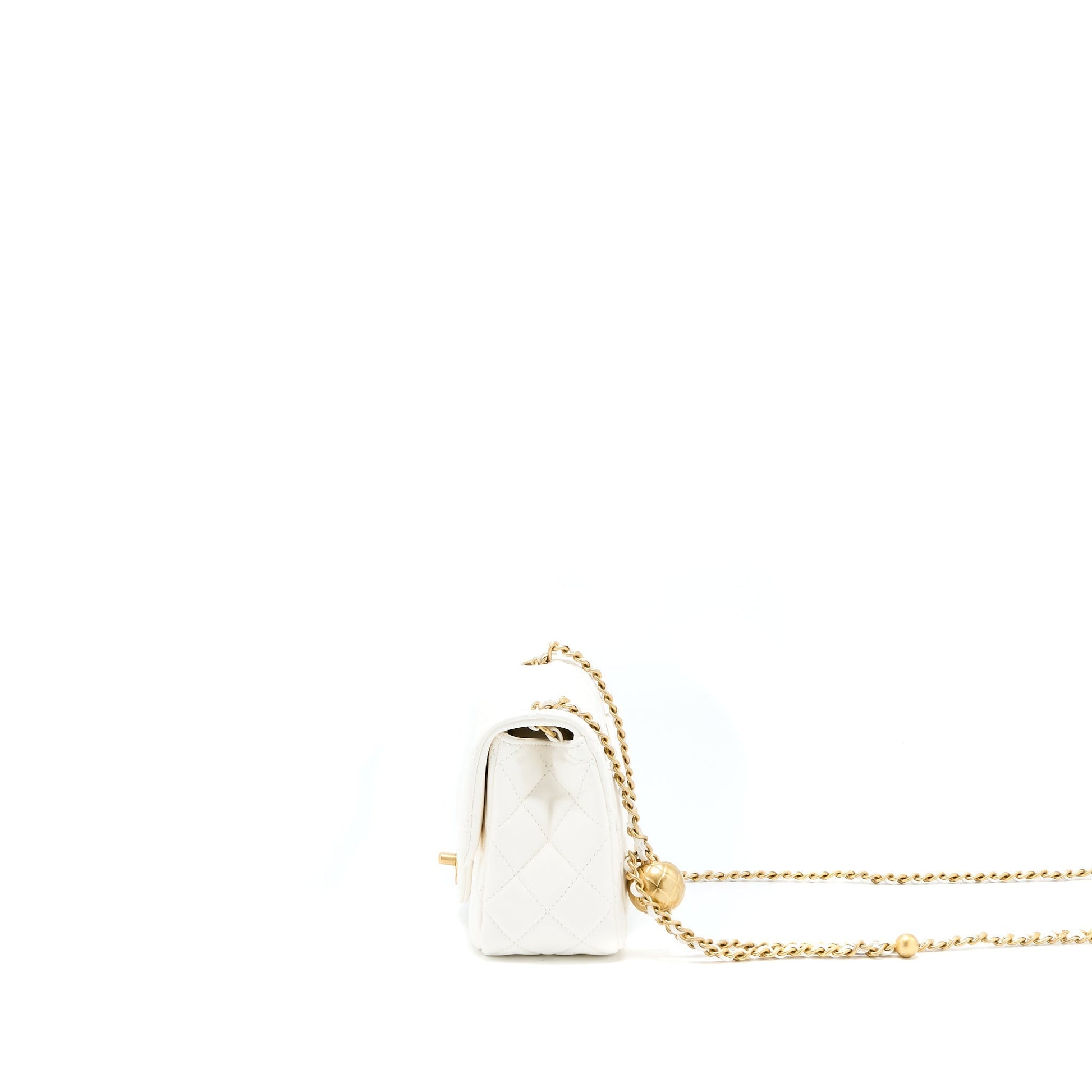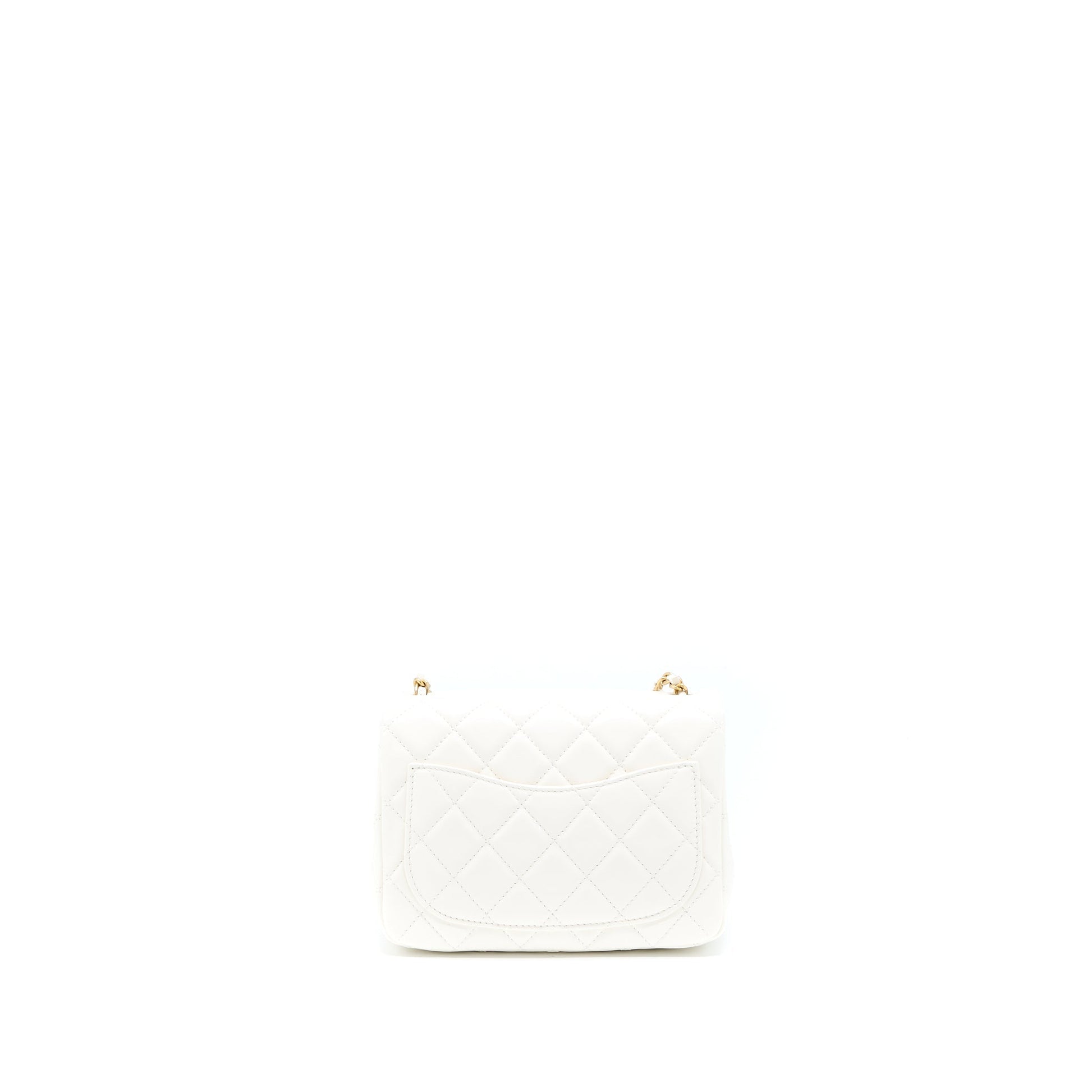Chanel Pearl Crush Mini Square Flap Bag Lambskin White GHW(Microchip)