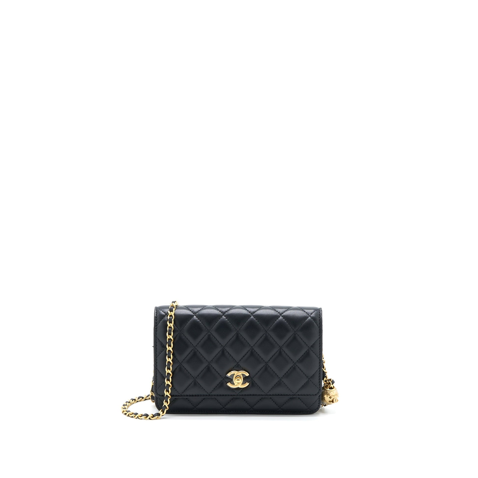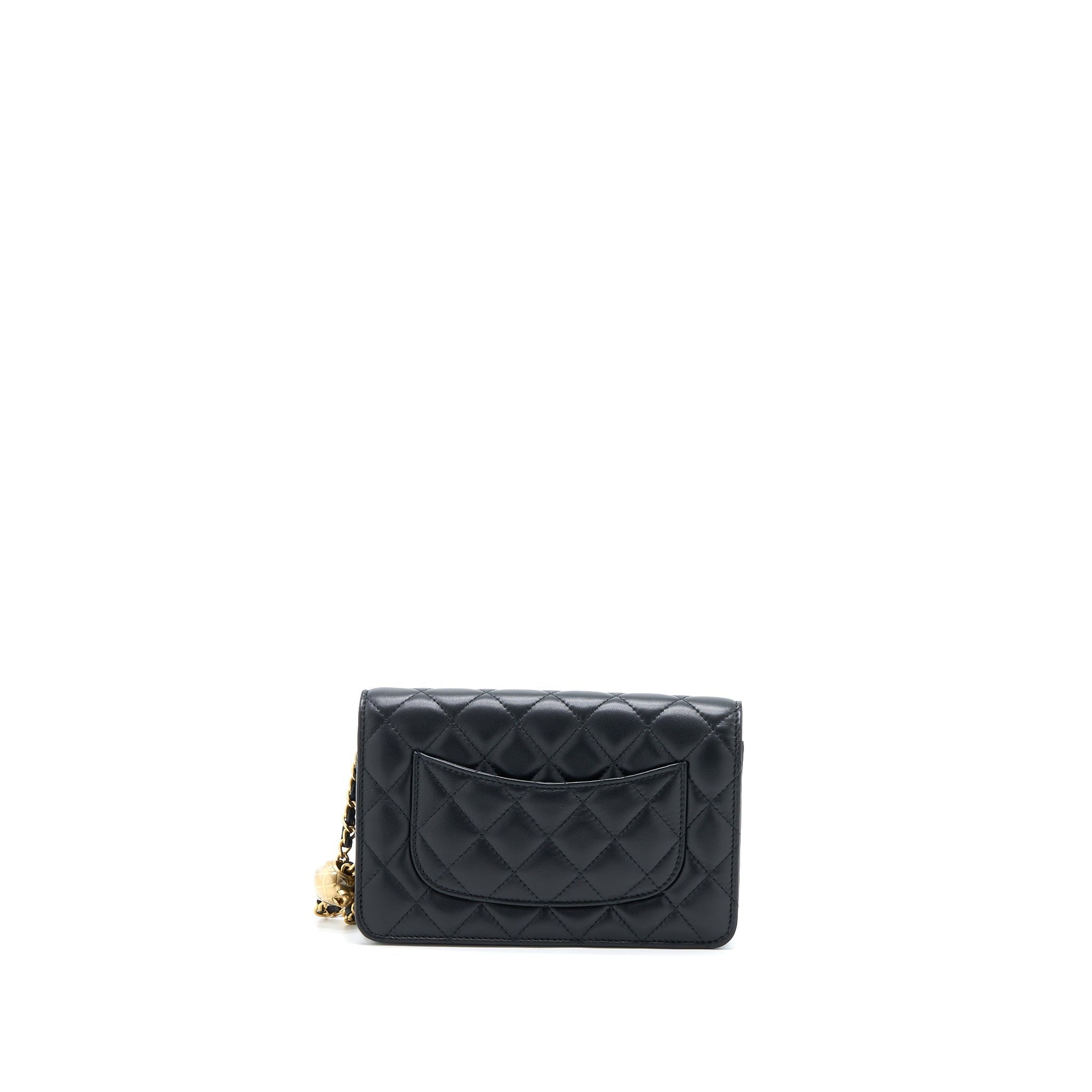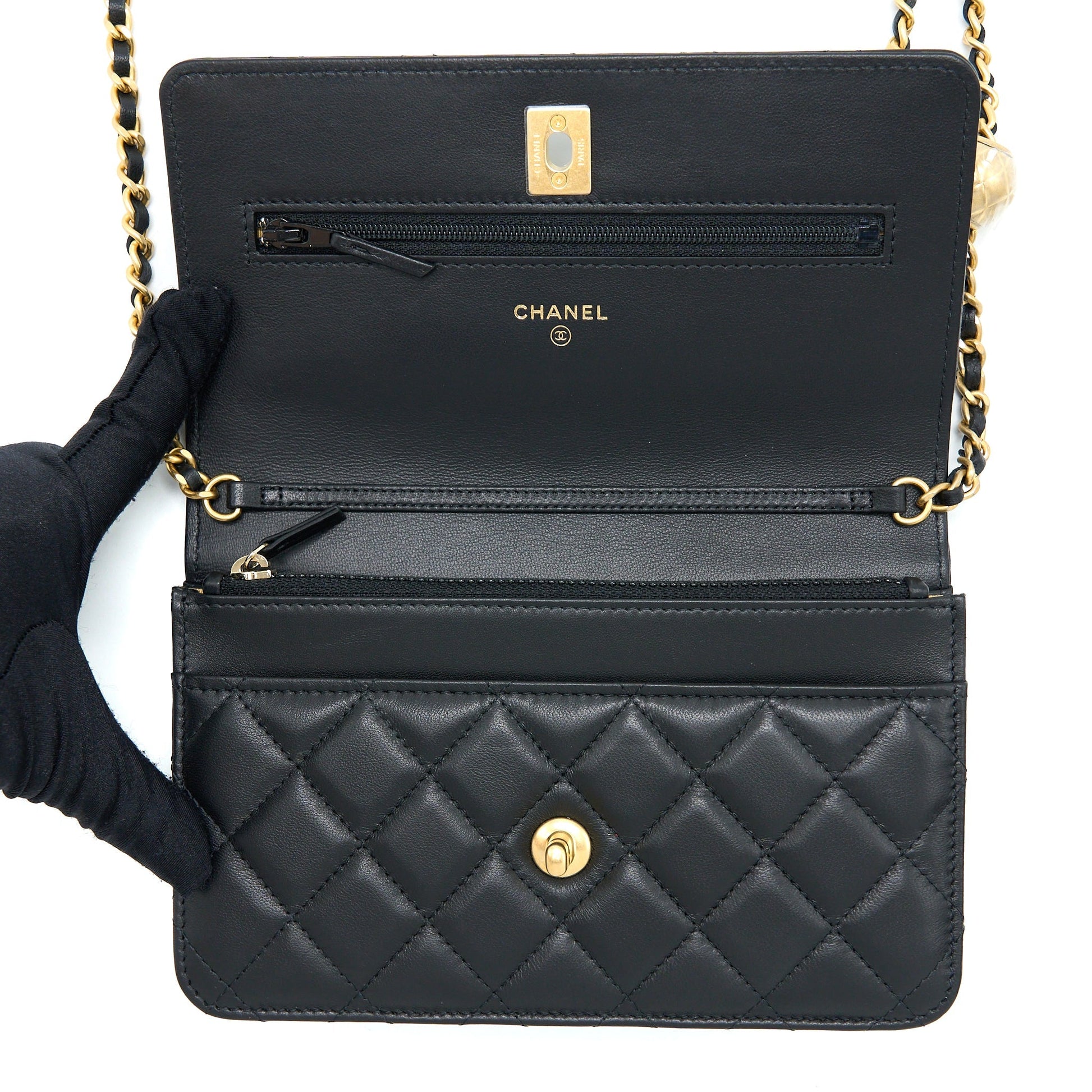 Chanel Pearl Crush Wallet On Chain Lambskin Black Brushed GHW (Microchip)