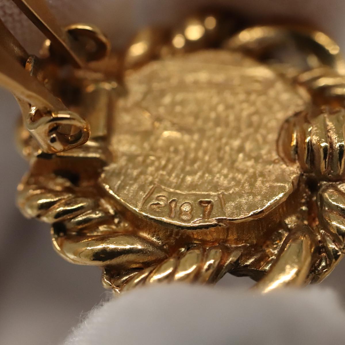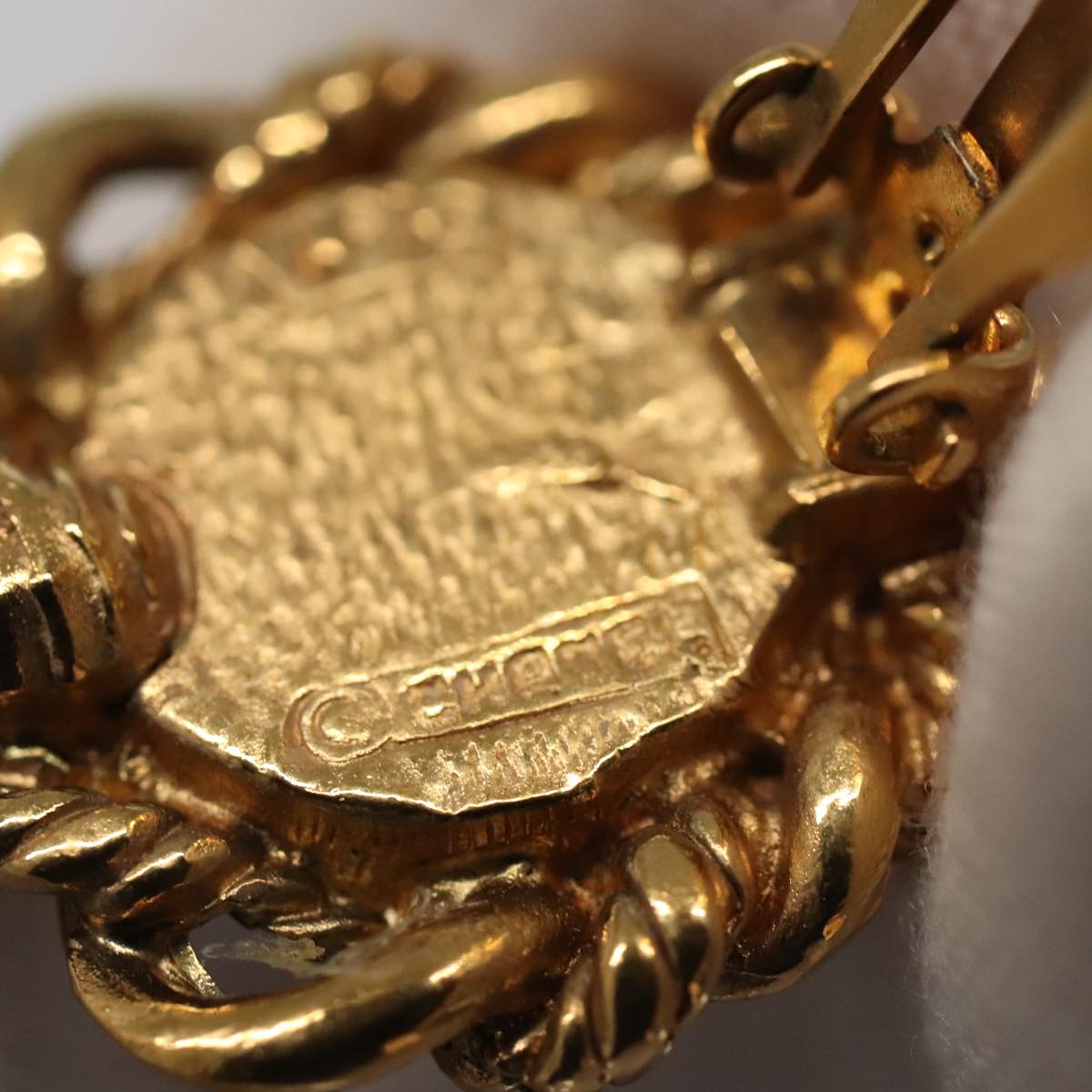 CHANEL Pearl Earring metal Gold Tone CC bs19423