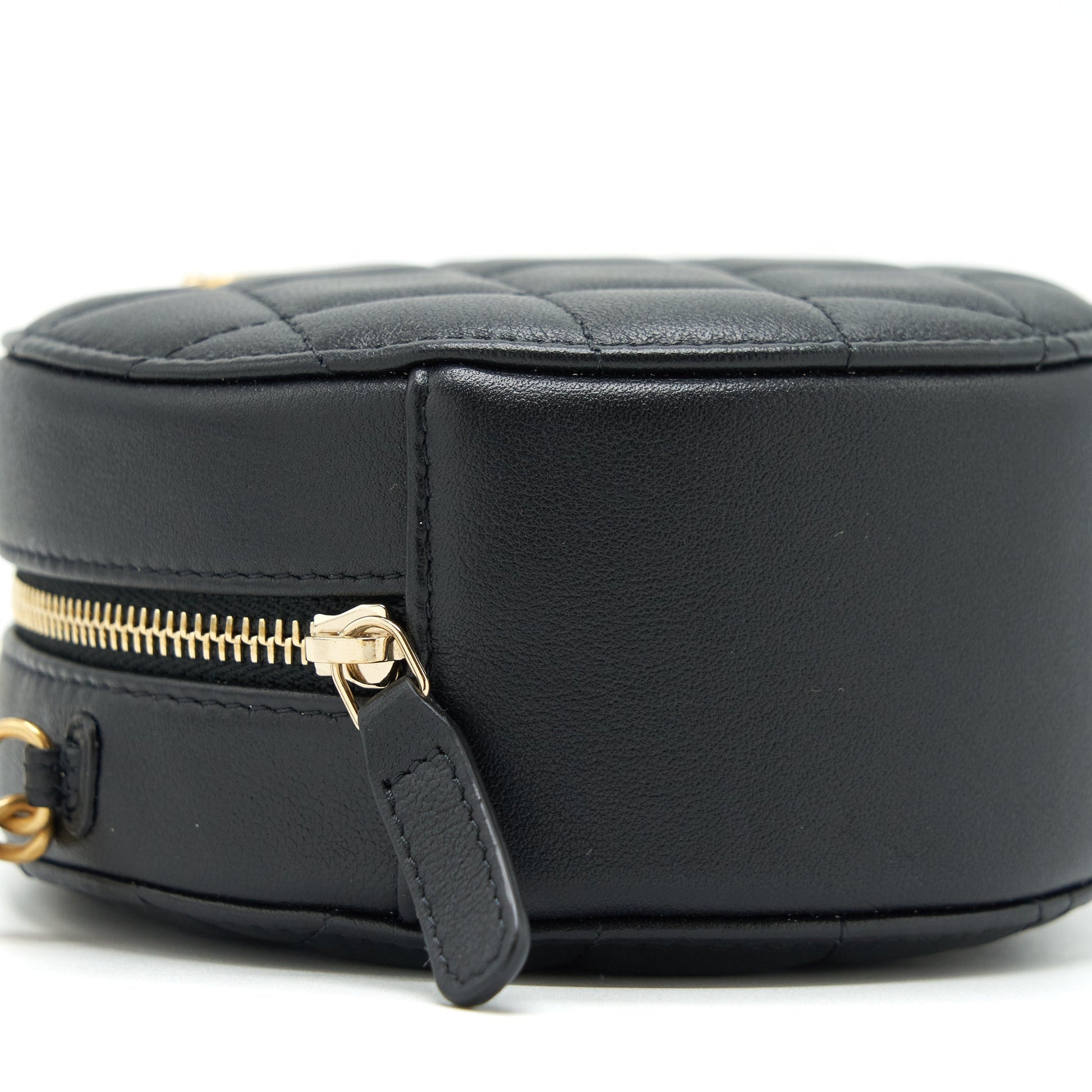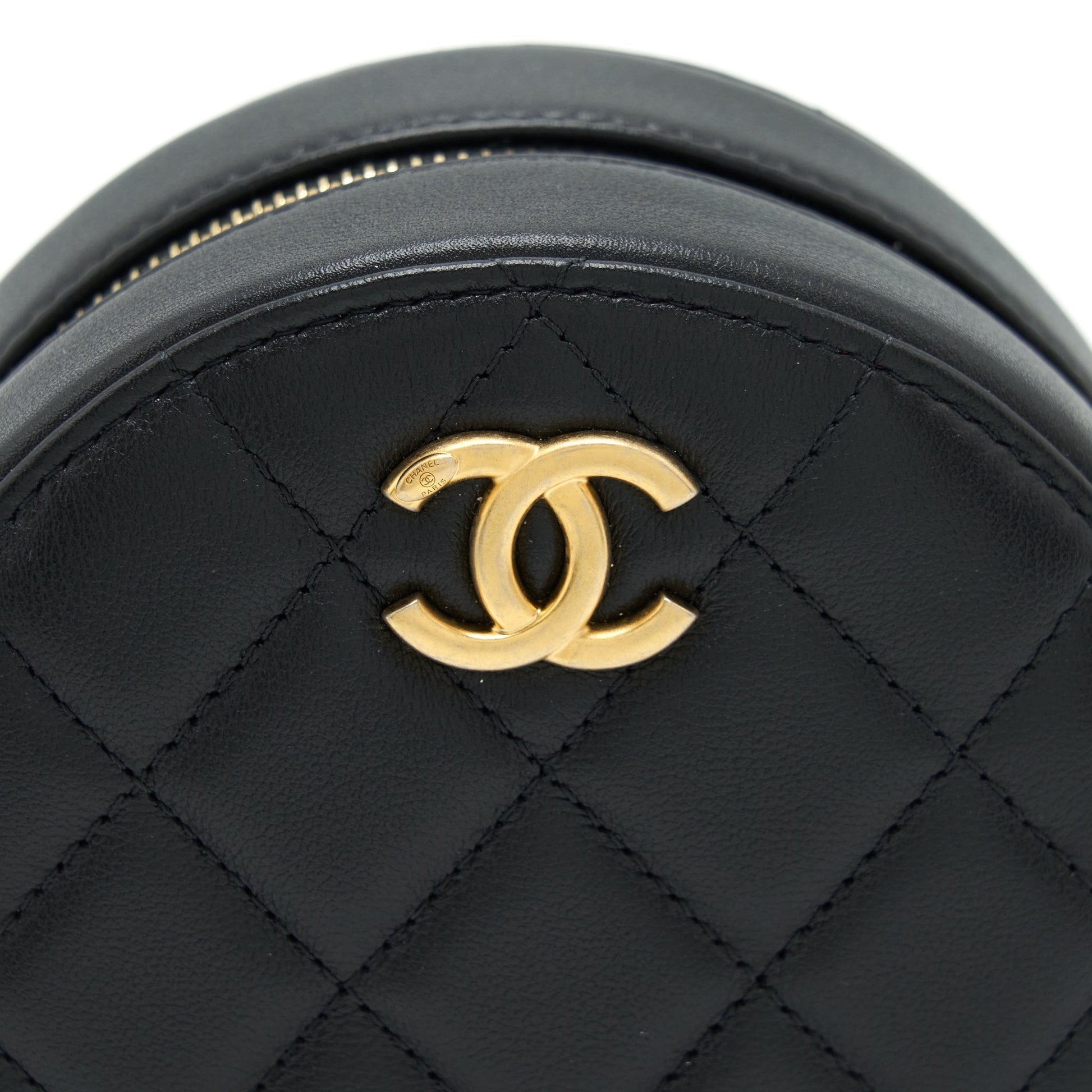 Chanel Pearl Round Clutch With Chain Calfskin Black GHW