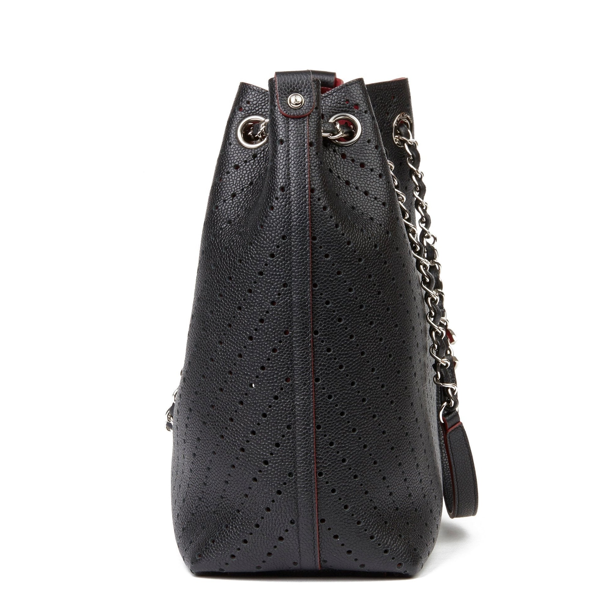 Chanel Perforated Grained Calfskin Accordion Shopping Tote With Pouch