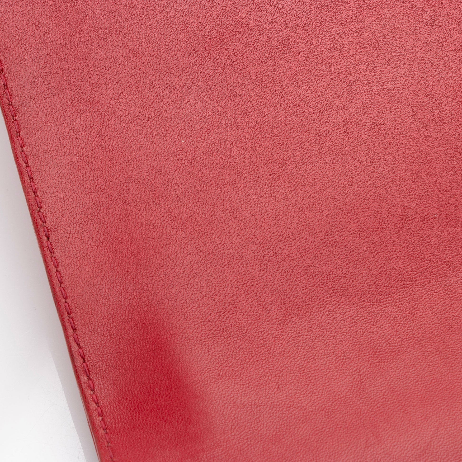 Condition Notes: Visible scuffs and marks to exterior bottom corners. Dryness and scuffs throughout exterior leather trim. Surface scratches to hardware. Visible scuffs throughout front leather and interior flap. Light marks and darkening throughout interior.