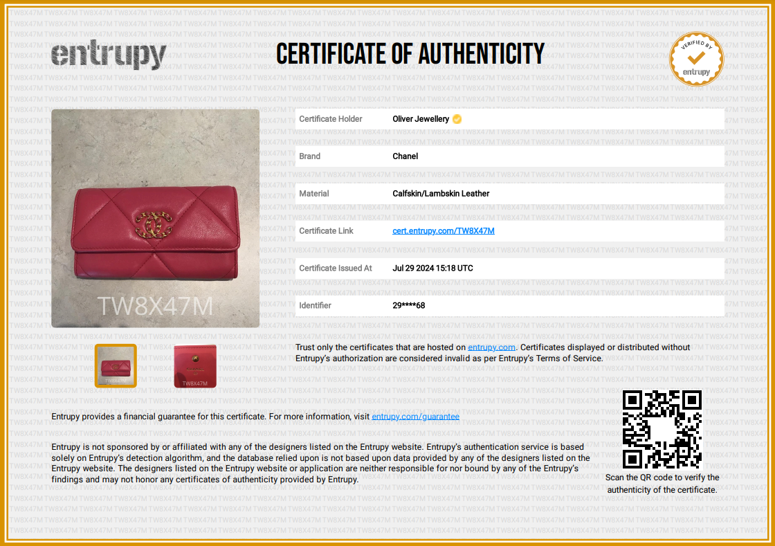Chanel Pink Leather 19 Flap Wallet W/ Box & Authenticity Card
