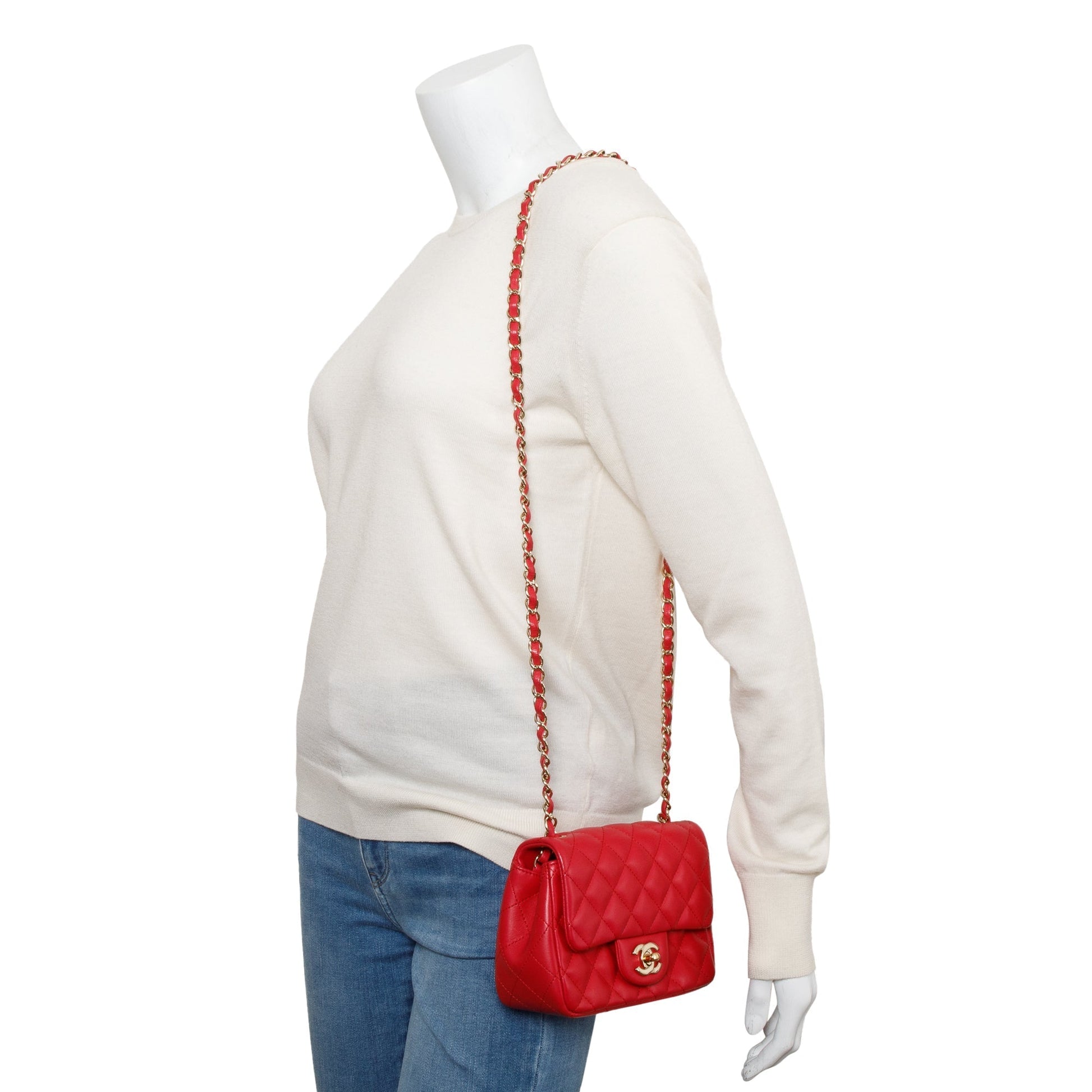 Chanel Pink Quilted Lambskin Leather Classic Square Mini Flap Bag w/ Authenticity Card
