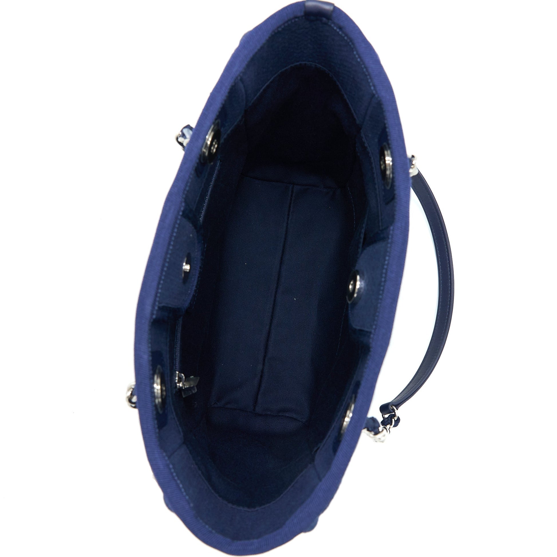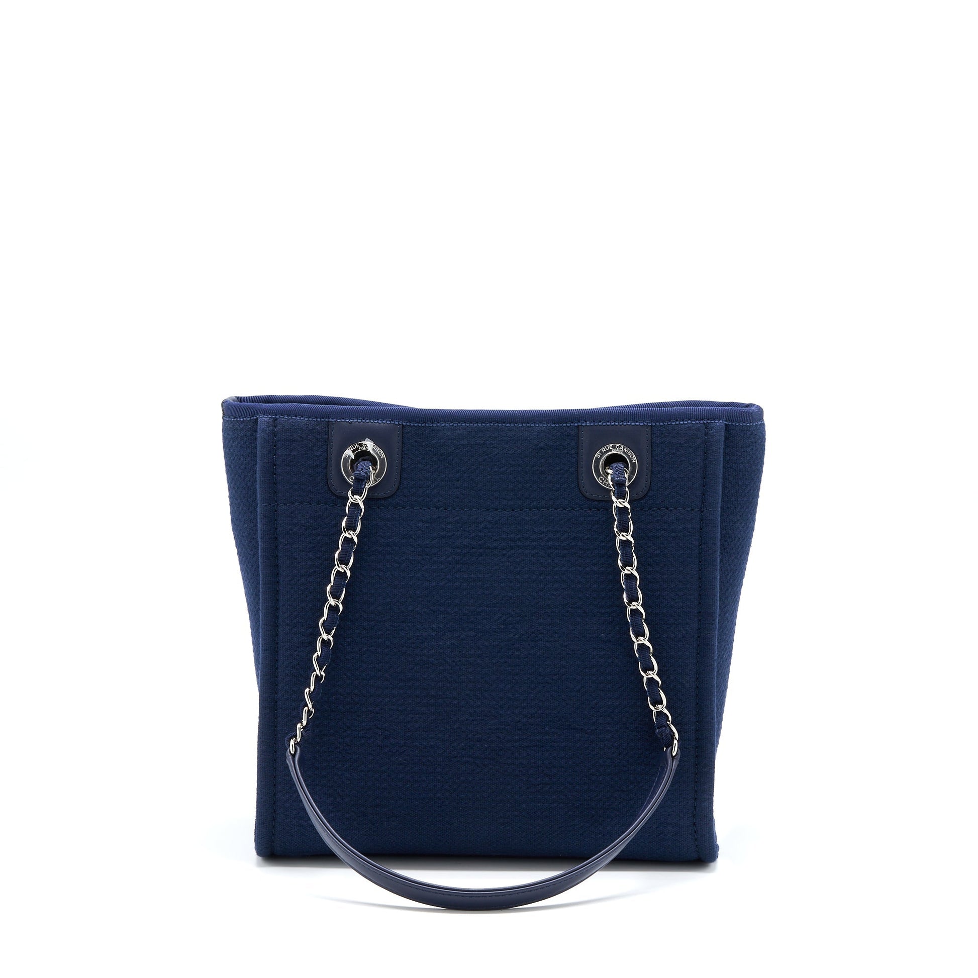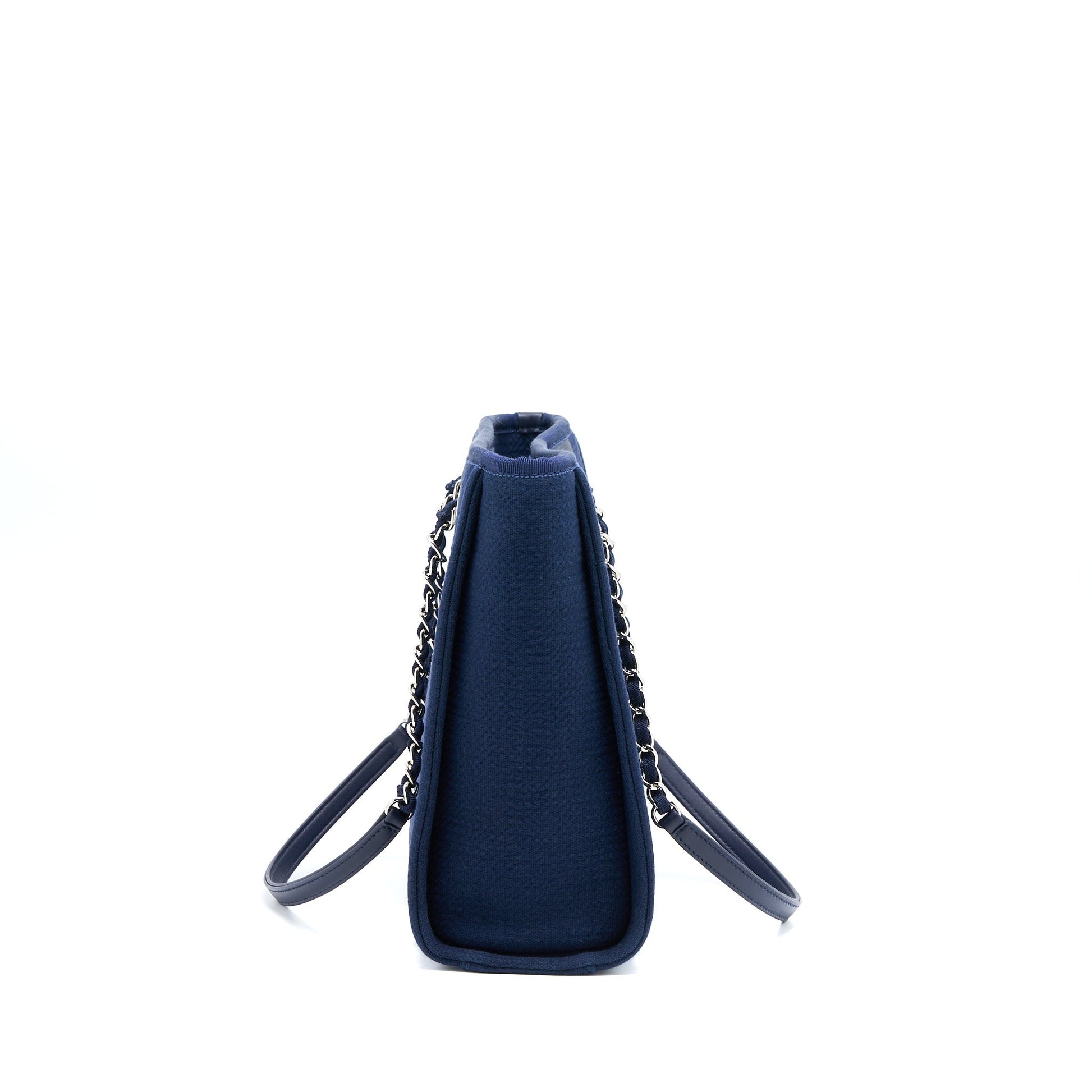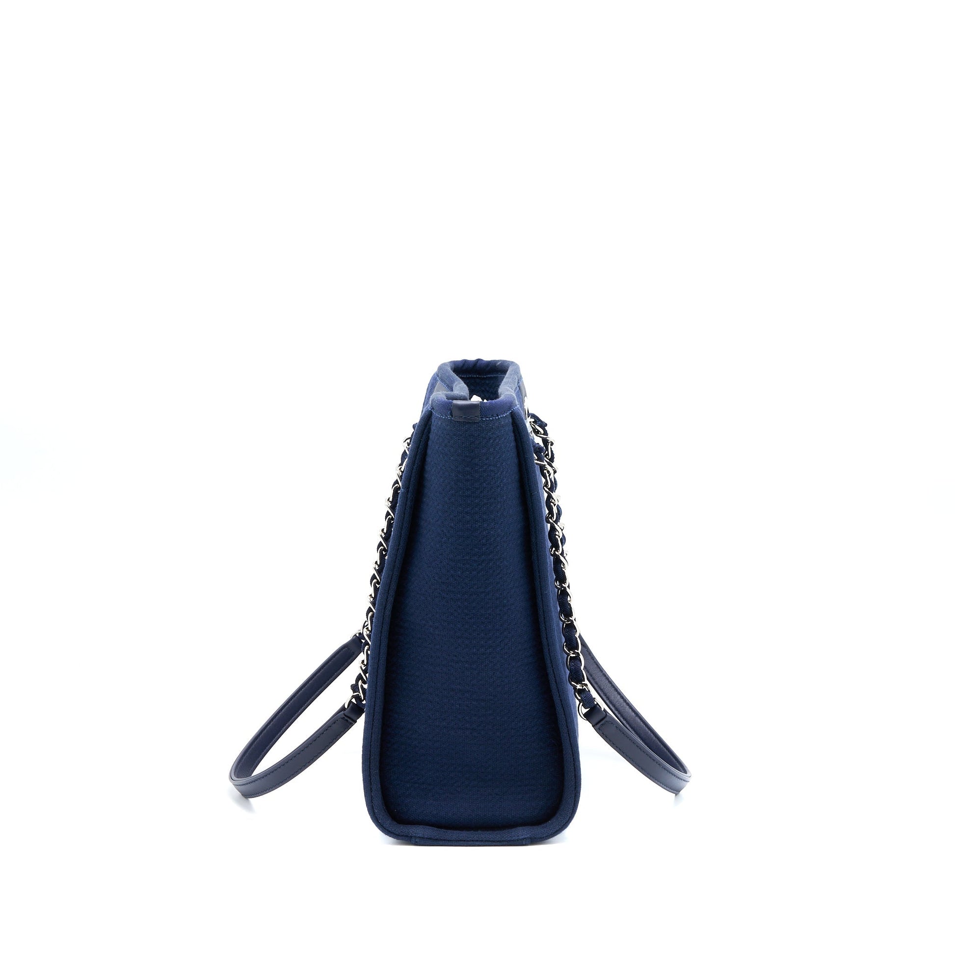 Chanel PM Deauville Tote Bag Canvas Navy SHW (Microchip)
