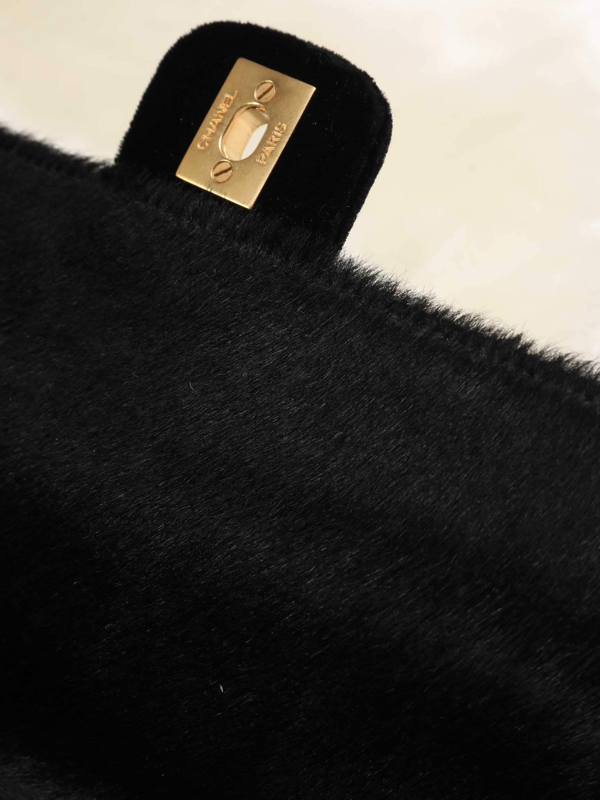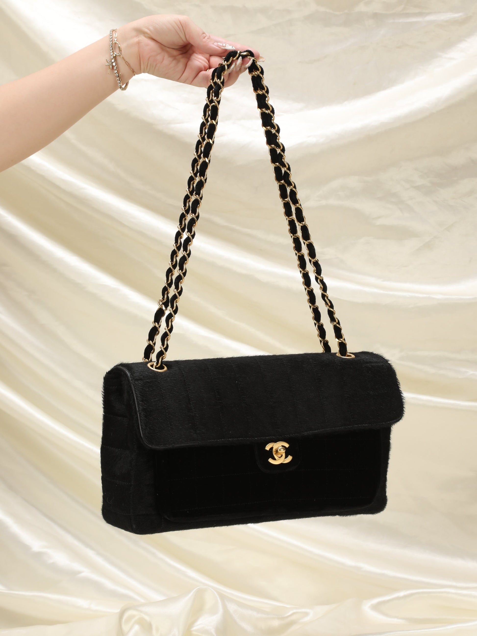 This square quilted half flap is a definitely a piece you cannot miss out on. This shoulder bag crafted in pony hair, is extremely soft and goes with every outfit due to its classic black and champagne gold combo!?