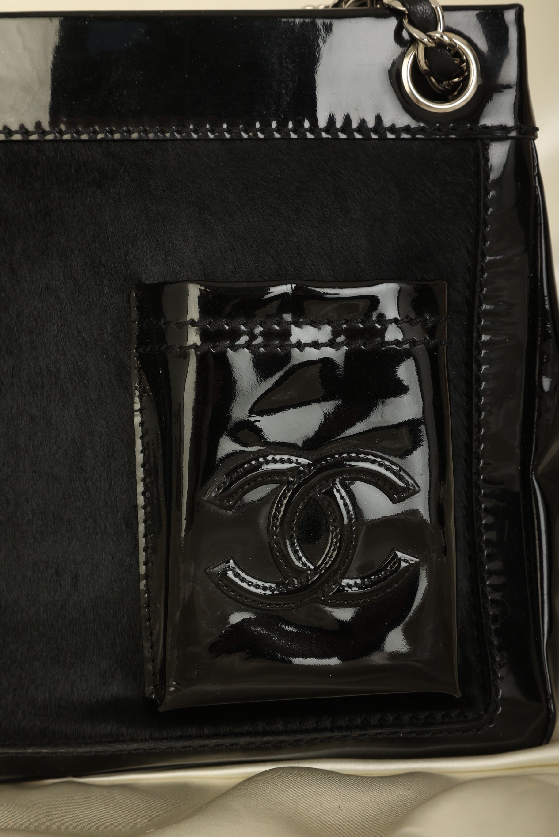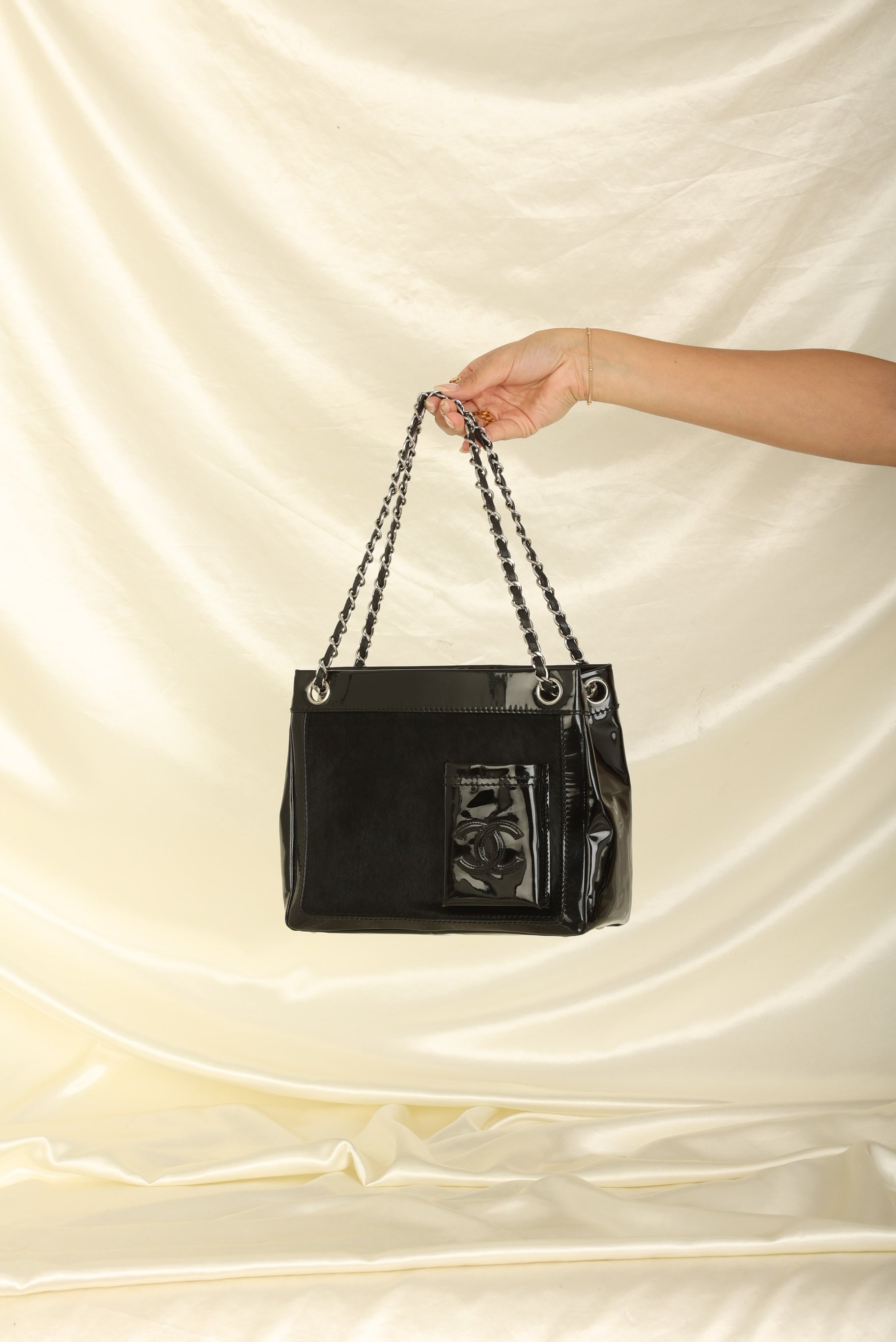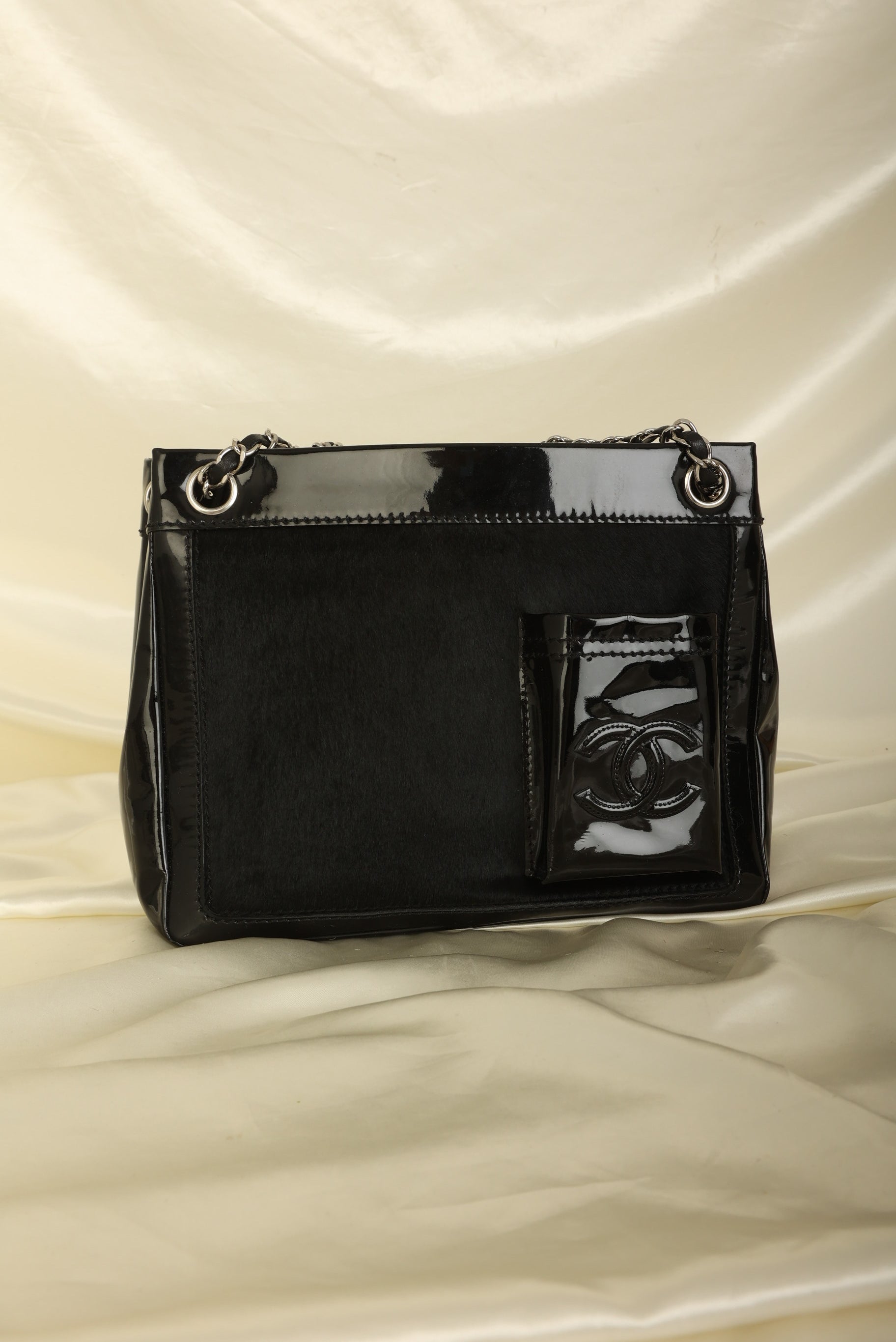 The Chanel Pony Hair Patent Mini Tote is the perfect everyday bag to carry around your daily essentials plus more! The black patent paired with the black pony hair, tied together with the silver hardware gives such a chic contrast to this bag. You can wear this as a short or long shoulder bag and can fit your iPad/kindle along with your other daily essentials.