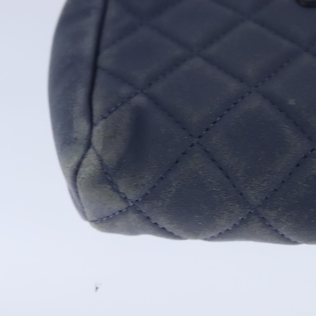 CHANEL Pouch Lamb Skin Blue CC 104355