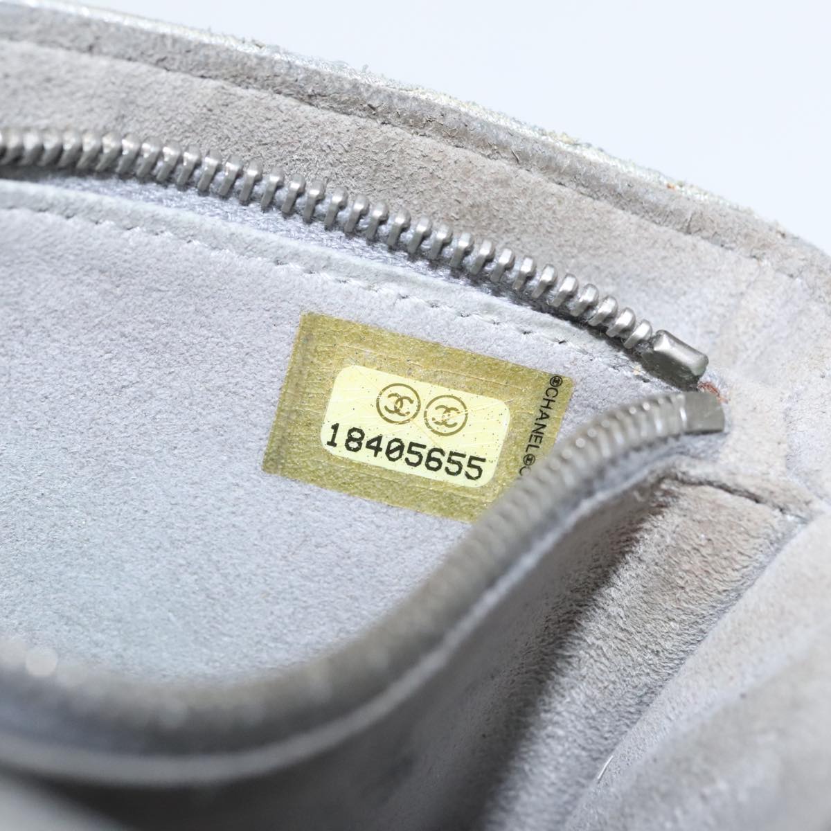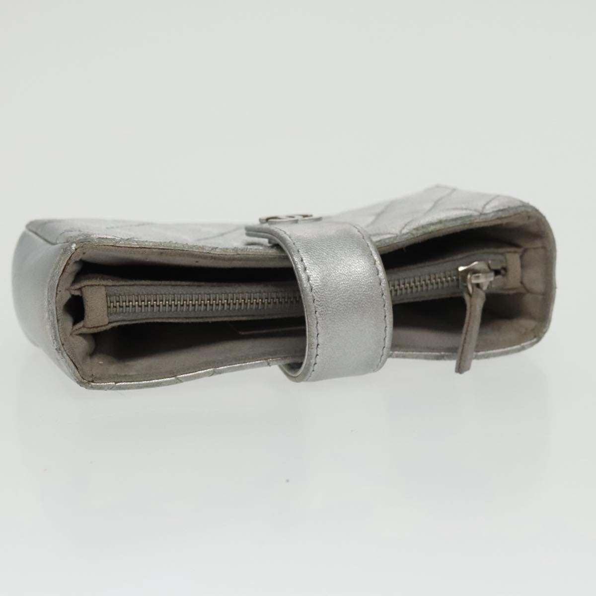 CHANEL Pouch Lamb Skin Silver CC 100726