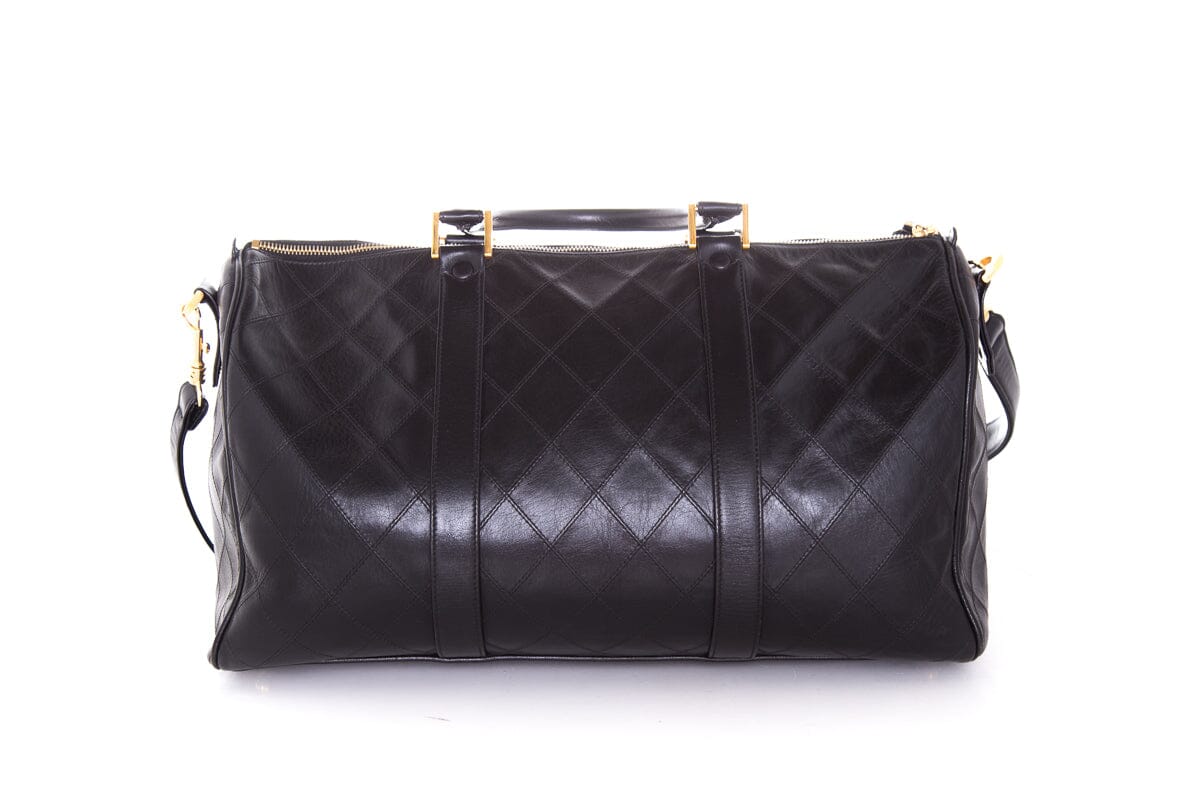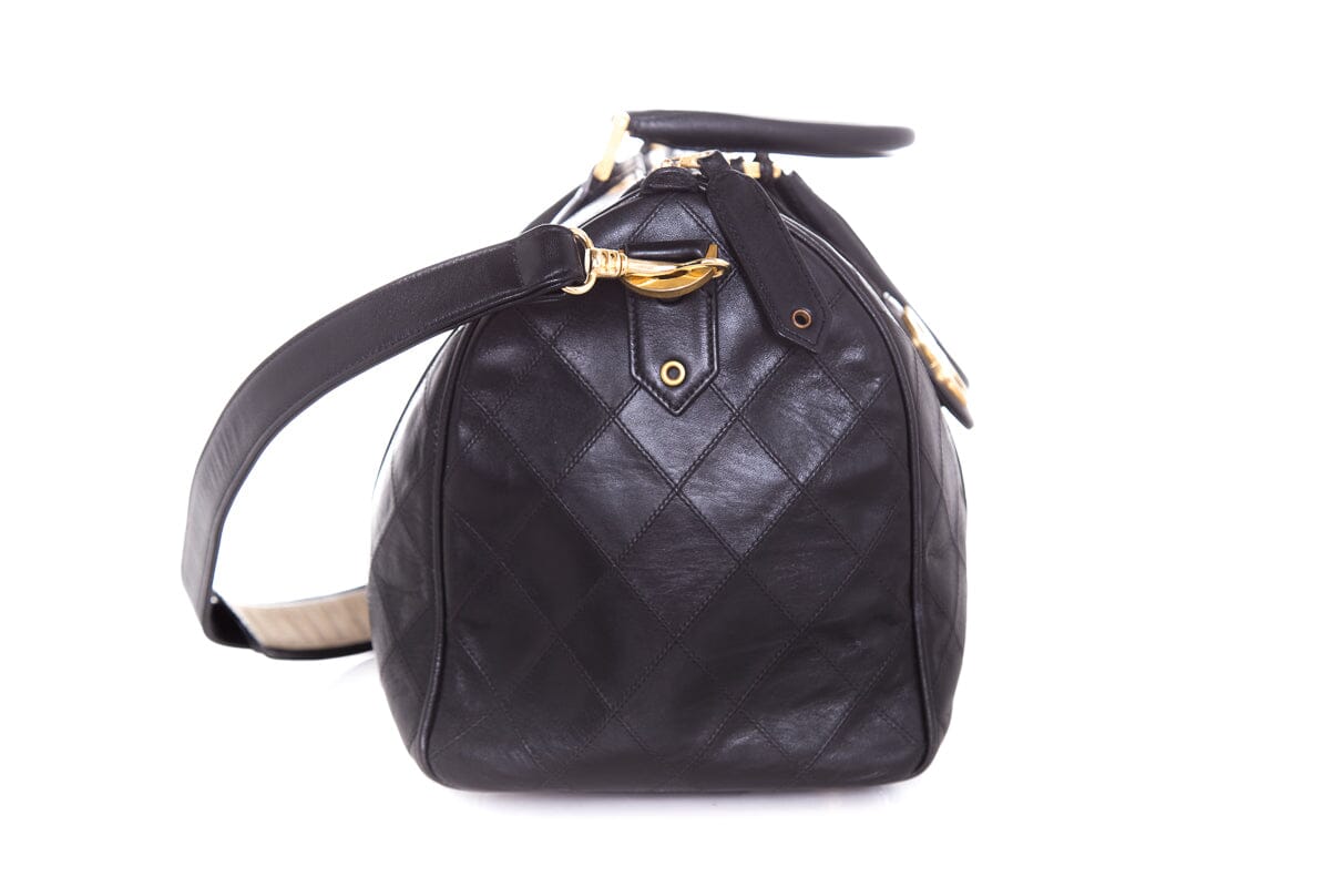 Chanel Quilted Lambskin Boston Duffle Tote With Strap; Gold tone Hardware, CC Logo Luggage Tab. This item is in New condition.