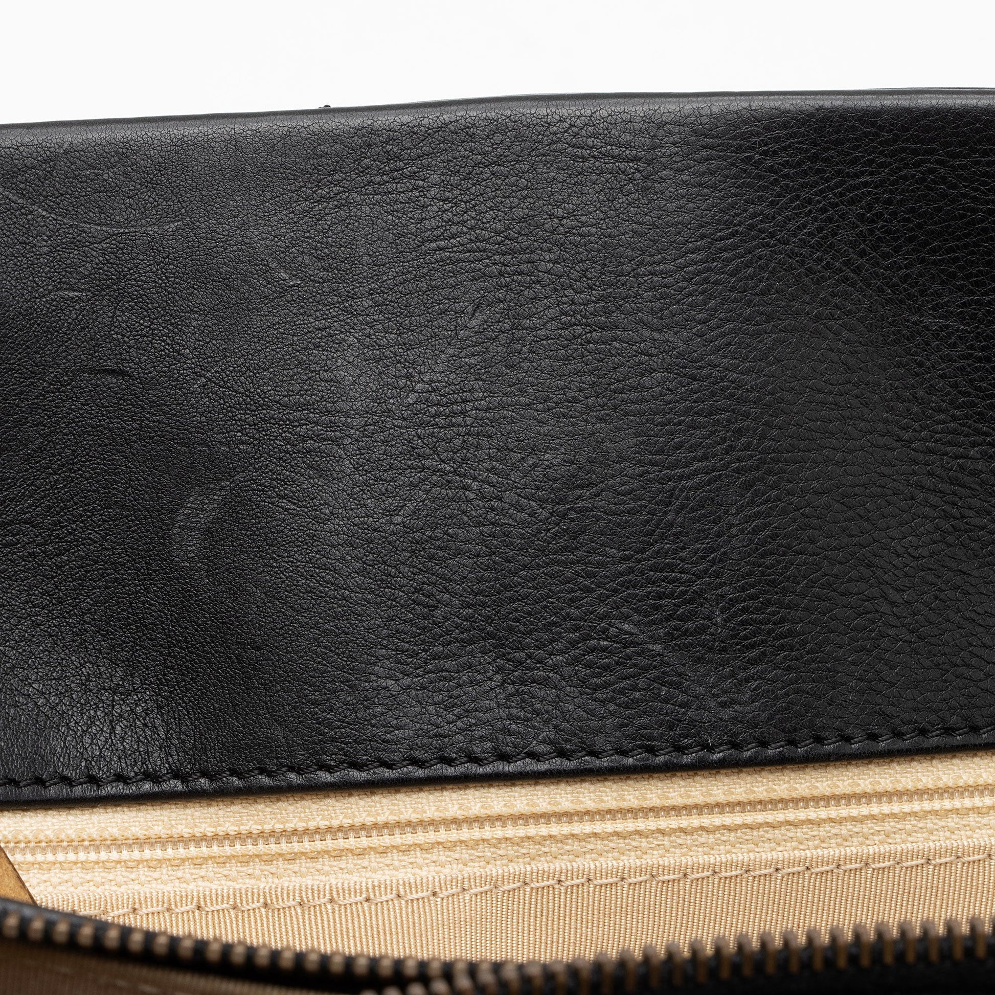Condition Notes: Creasing throughout exterior causing loss of structure. Minor wear to exterior bottom corners. Light scuffs throughout handle leather. Light surface scratches to hardware. Marks and light darkening throughout interior.
