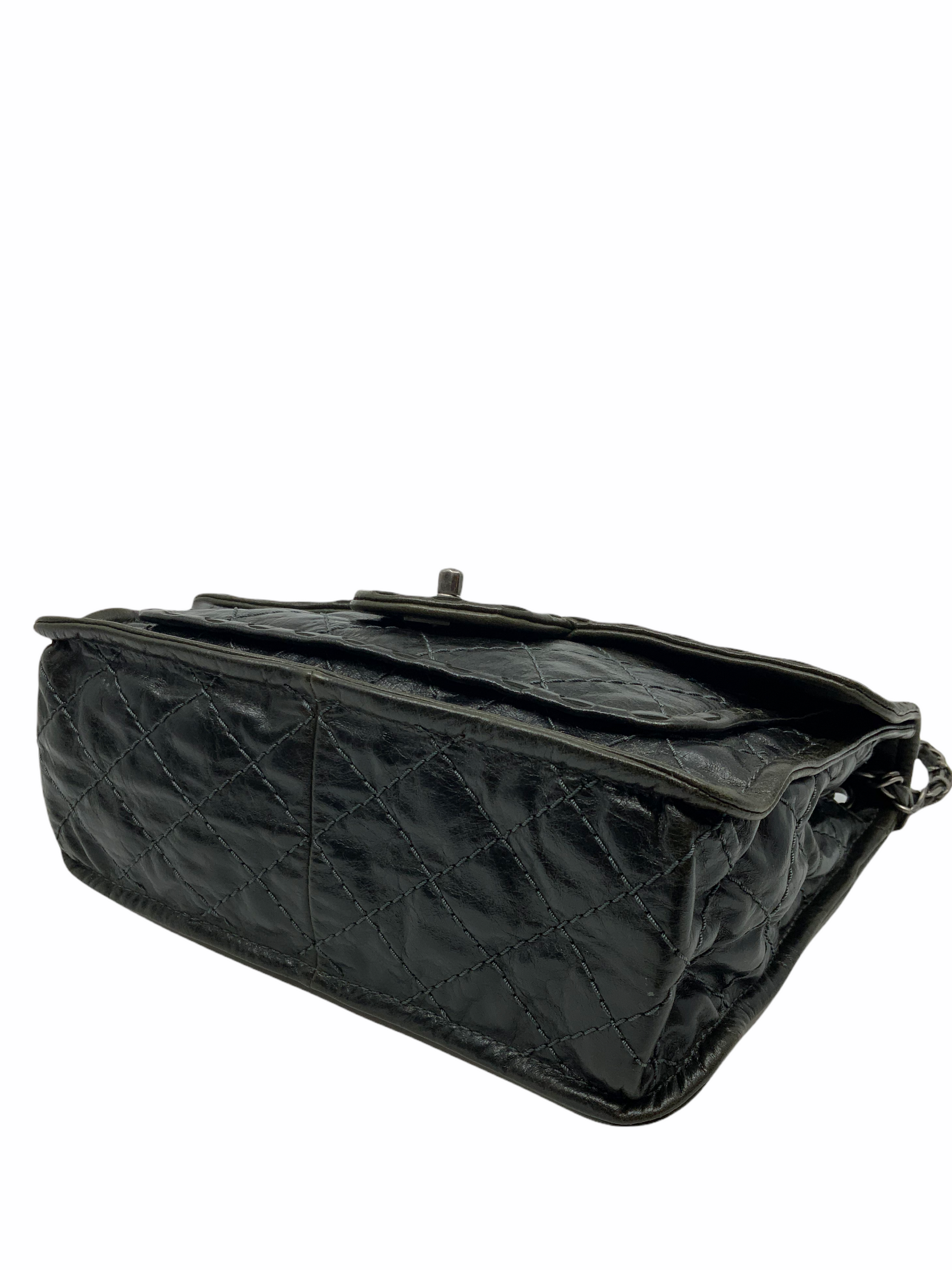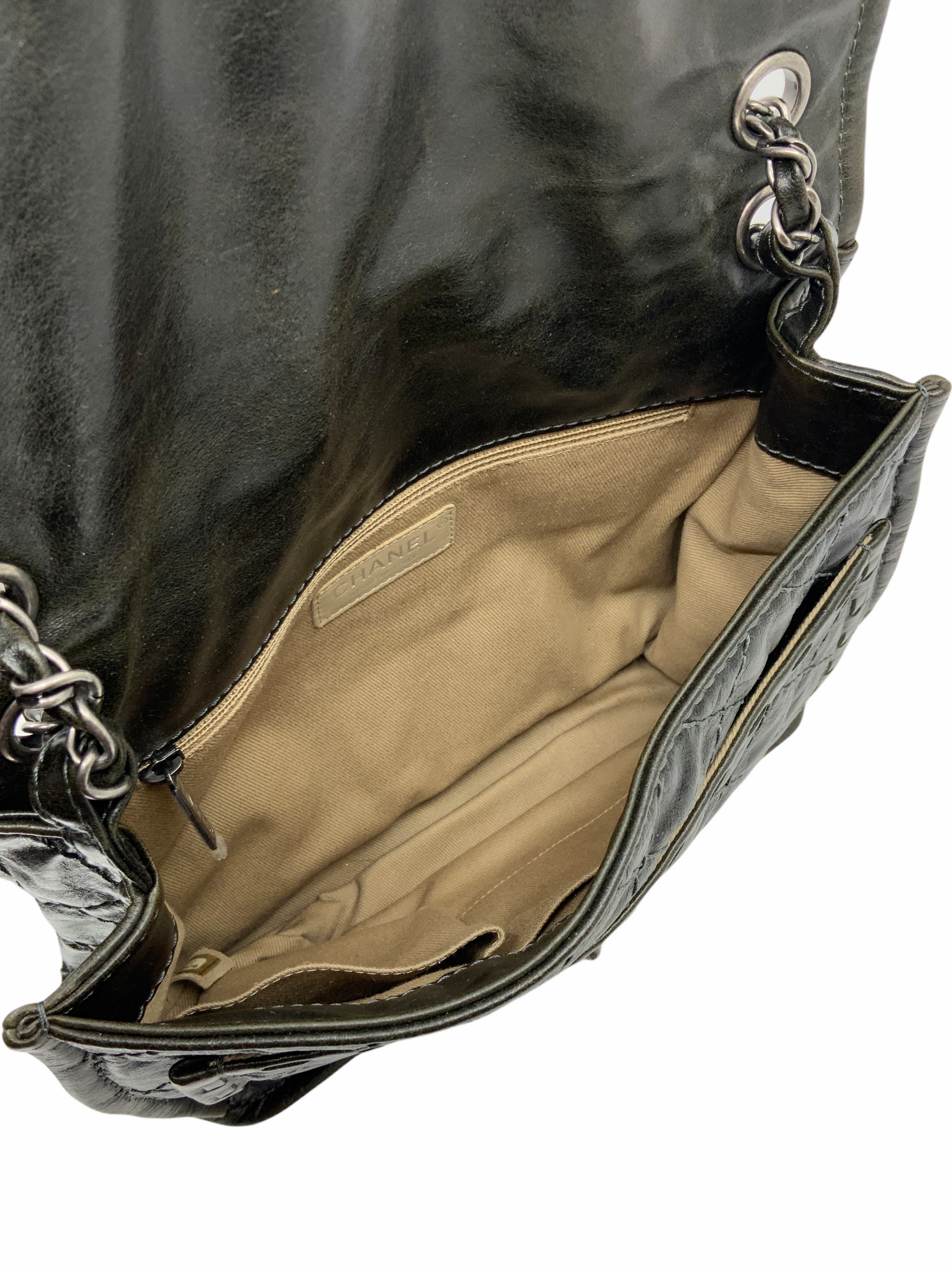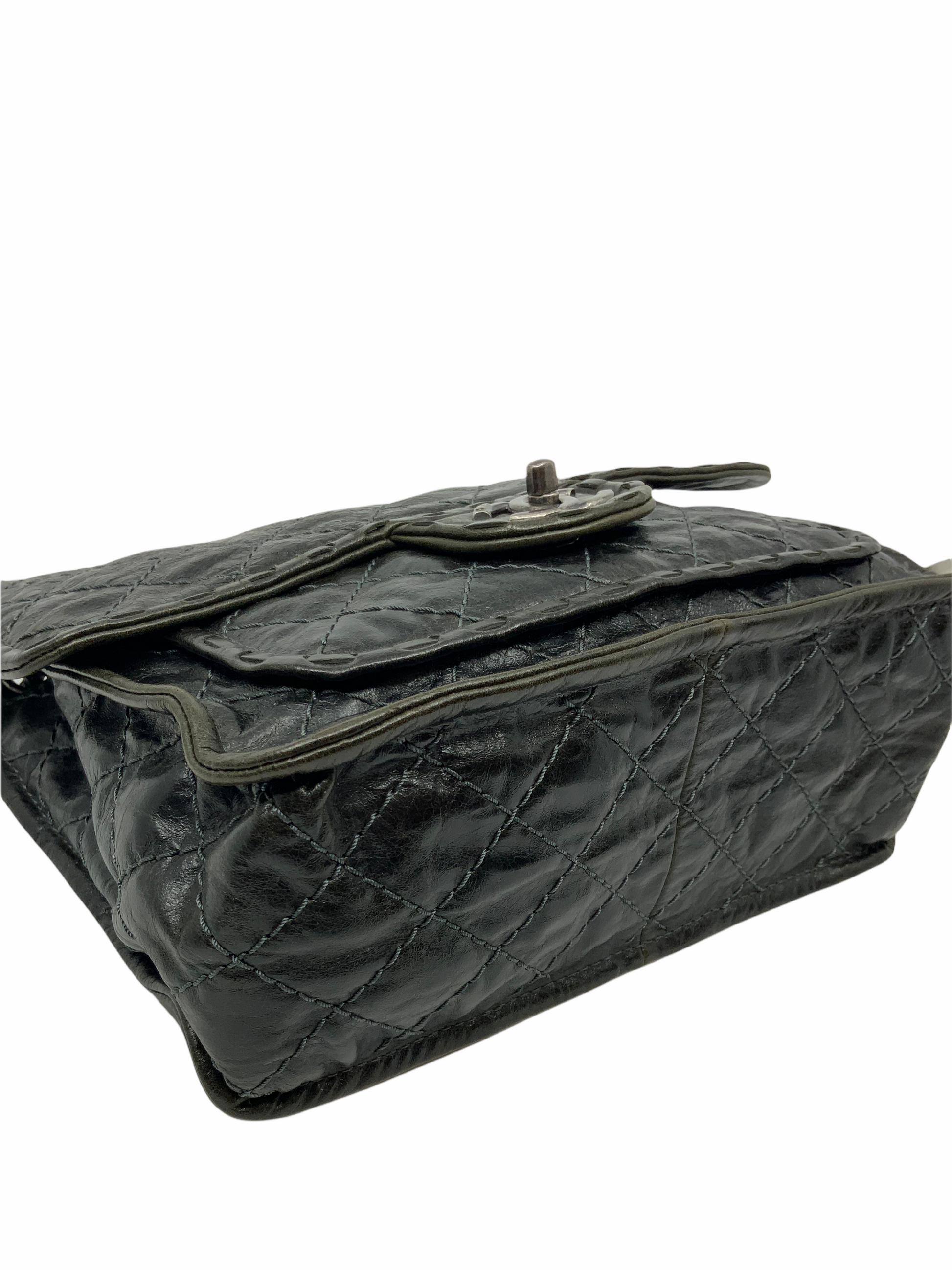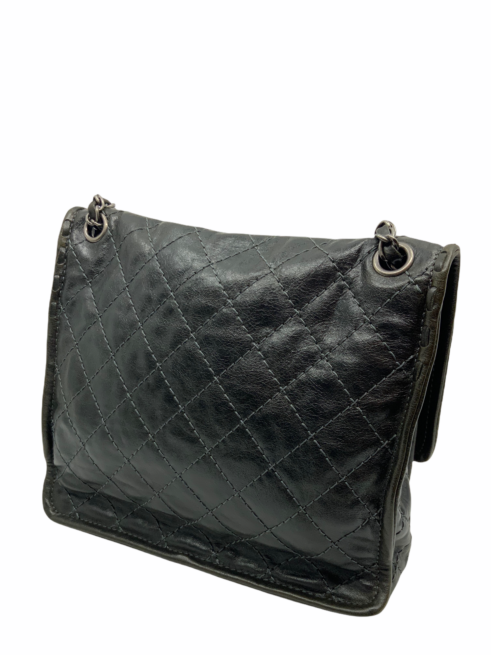Add this Chanel Quilted Calfskin Whipstitch Flap Bag 2015 to your collection today! This chic and sophisticatedshoulder bag has a sleek design and is beautifullycrafted fromblack distressed quiltedcalfskin with elegant ruthenium hardware.Featuring double chain link straps that can be long or doubled,a whipstitch trim detail around the edges of the bag and a signature 'CC' turn-lock to secure it. Shop designer handbags by Chanelat.
