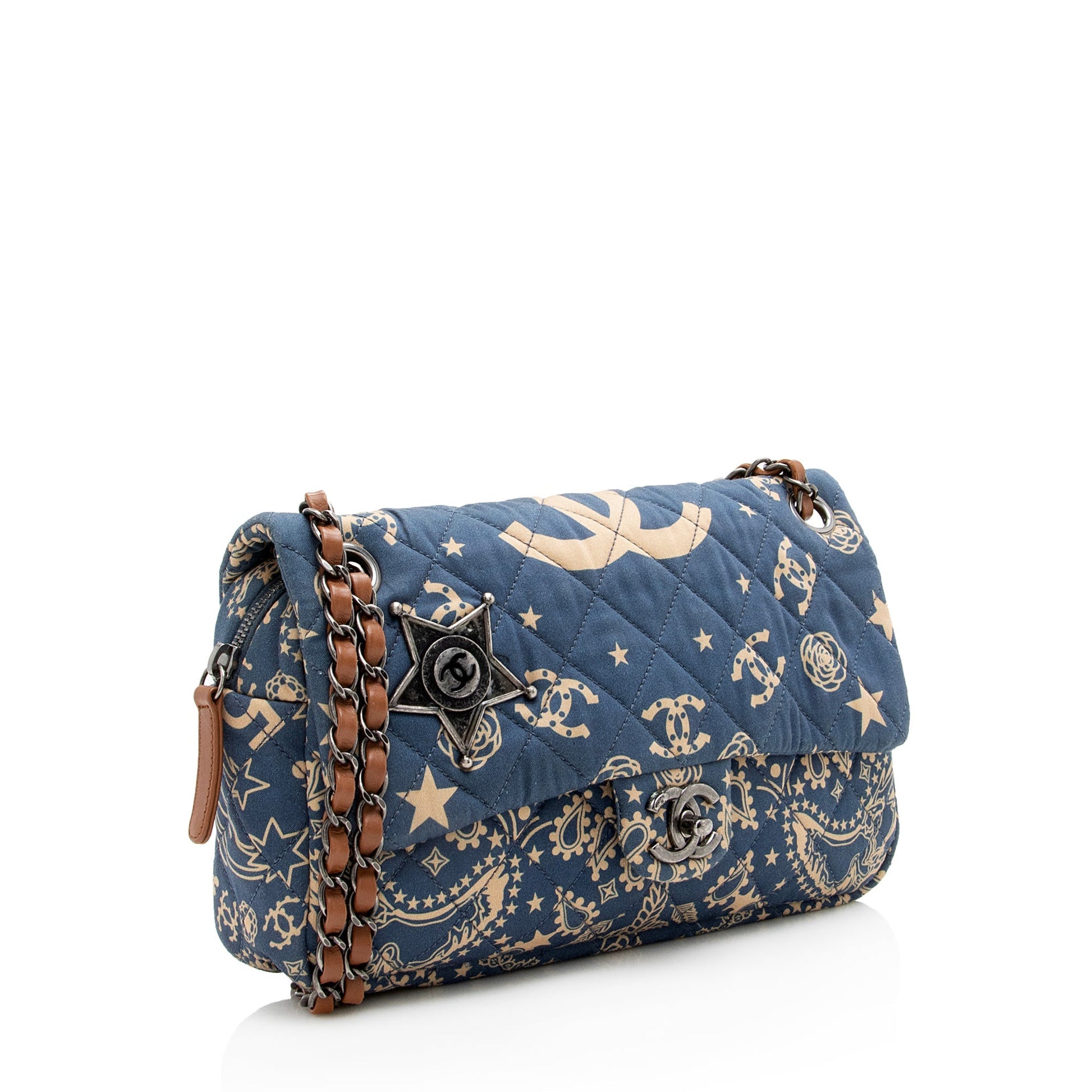Chanel Quilted Canvas Paris-Dallas Bandana Medium Flap Bag (SHF-22933)