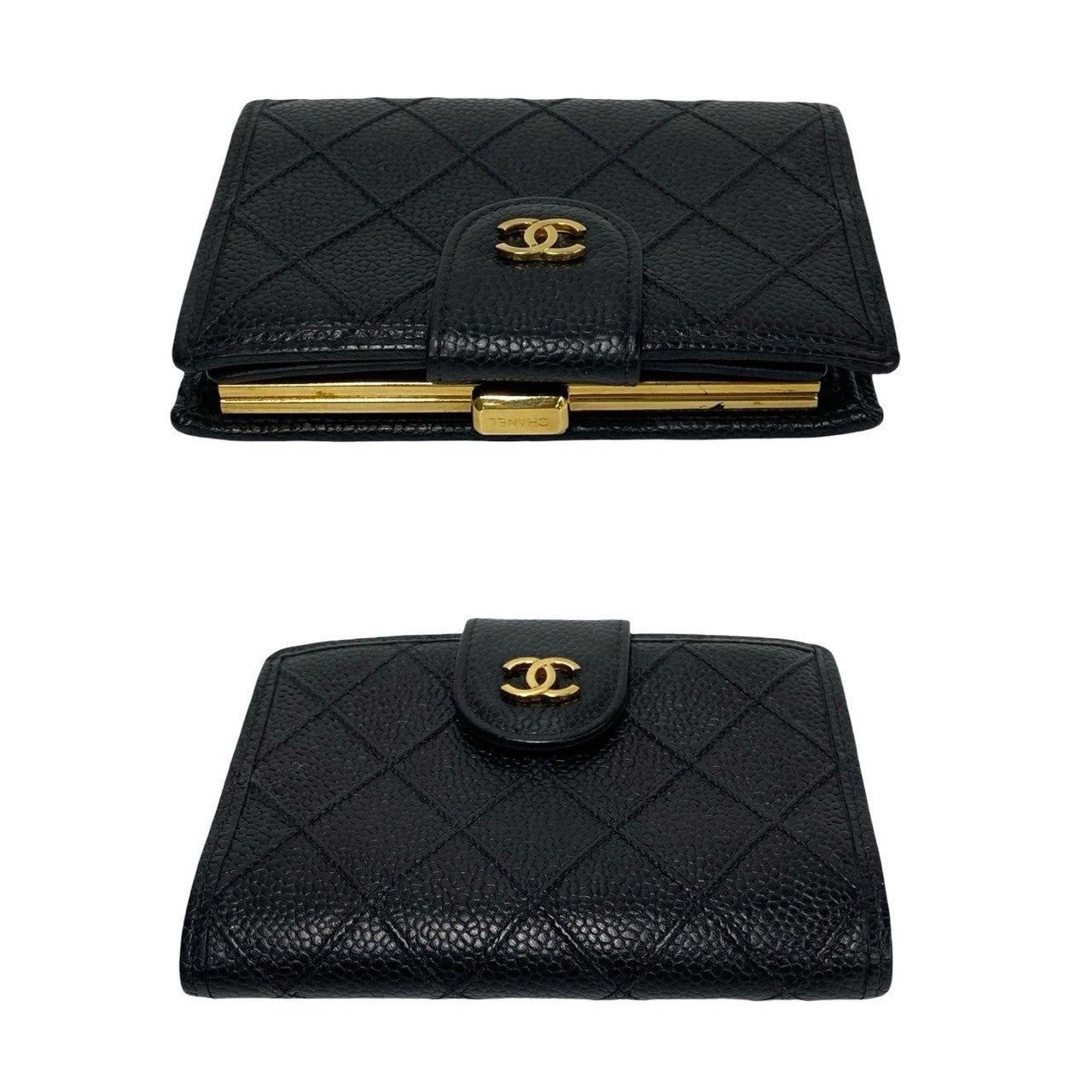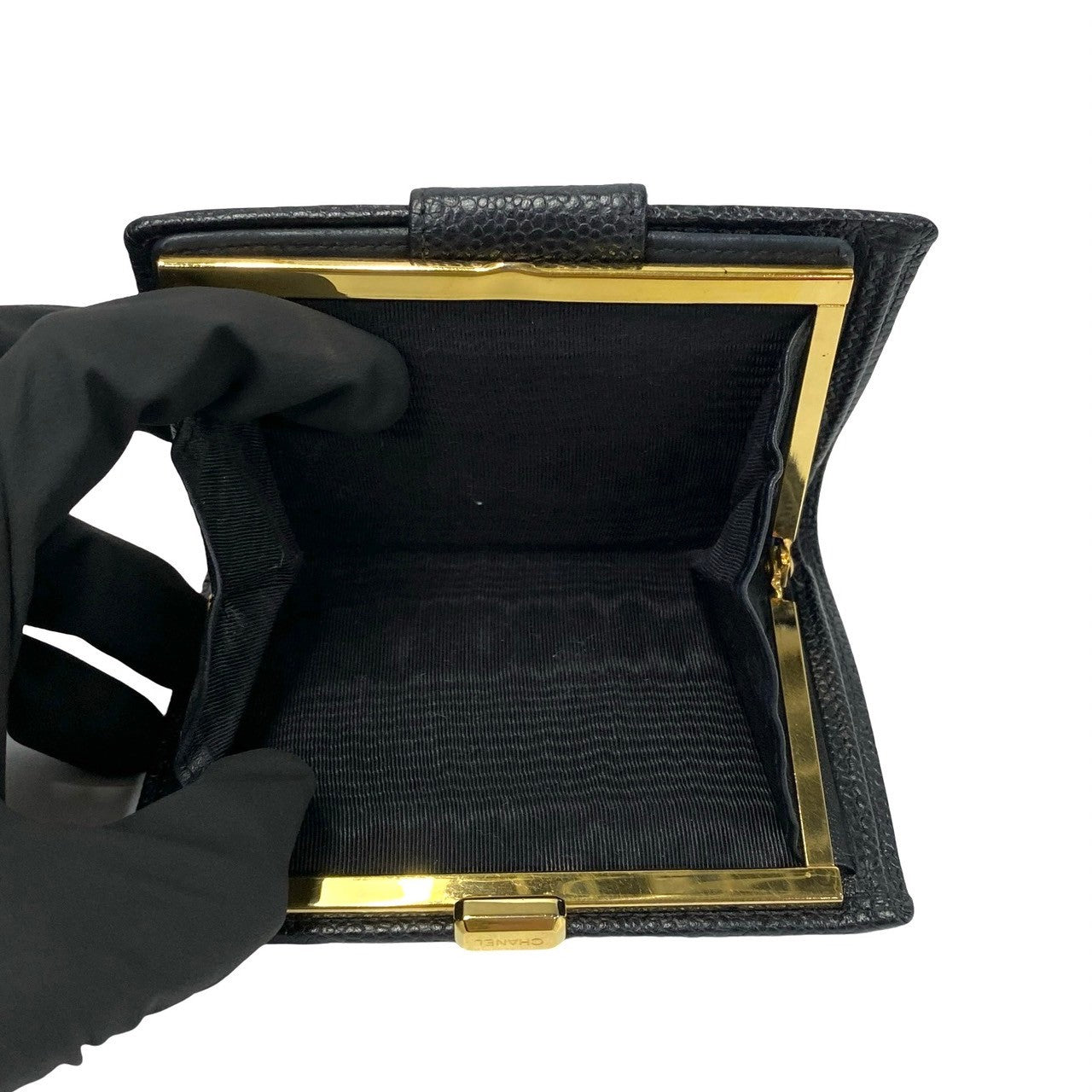 Chanel Quilted Caviar Clasp Purse Leather Short Wallet