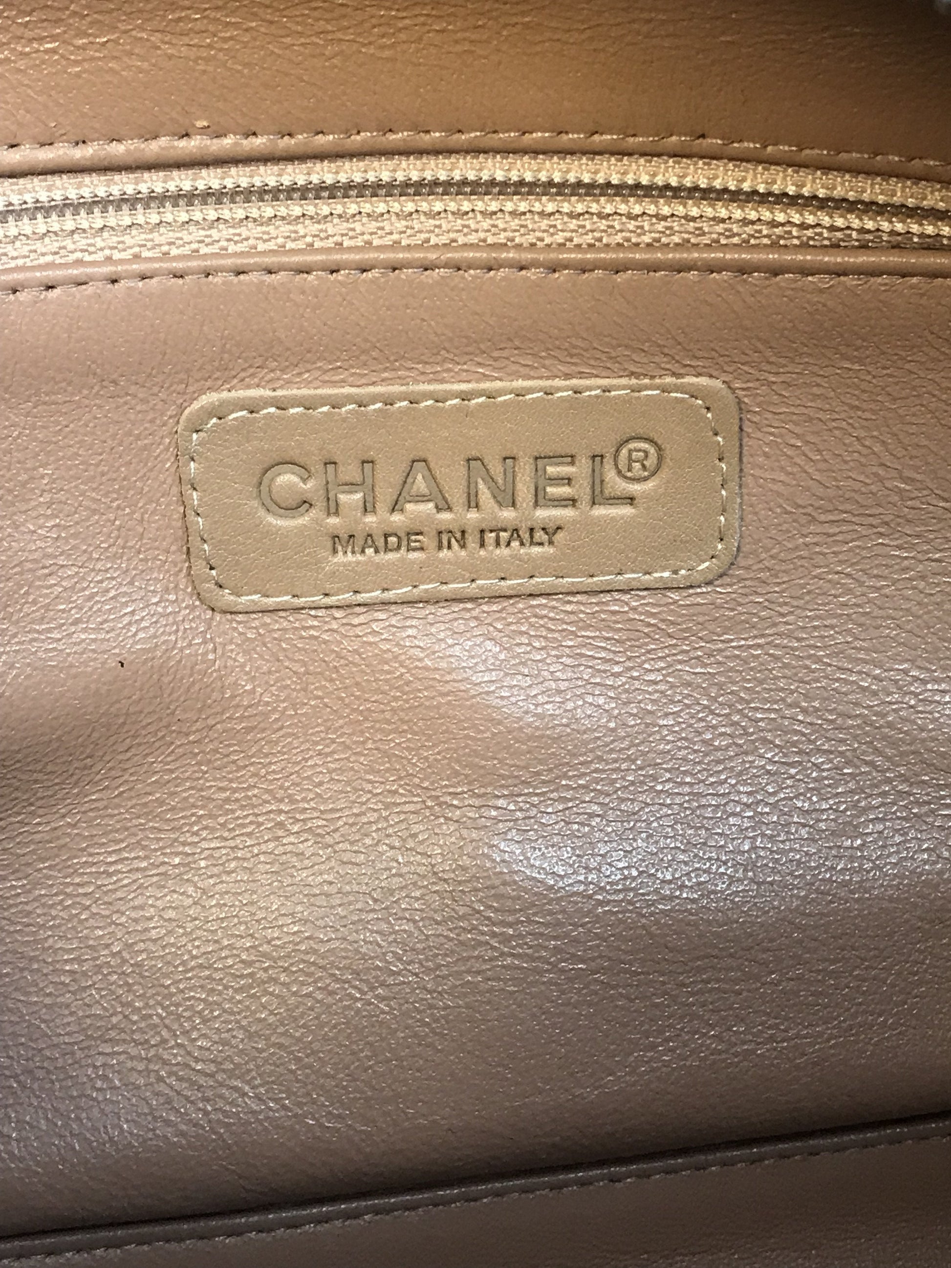 • Brown quilted caviar leather