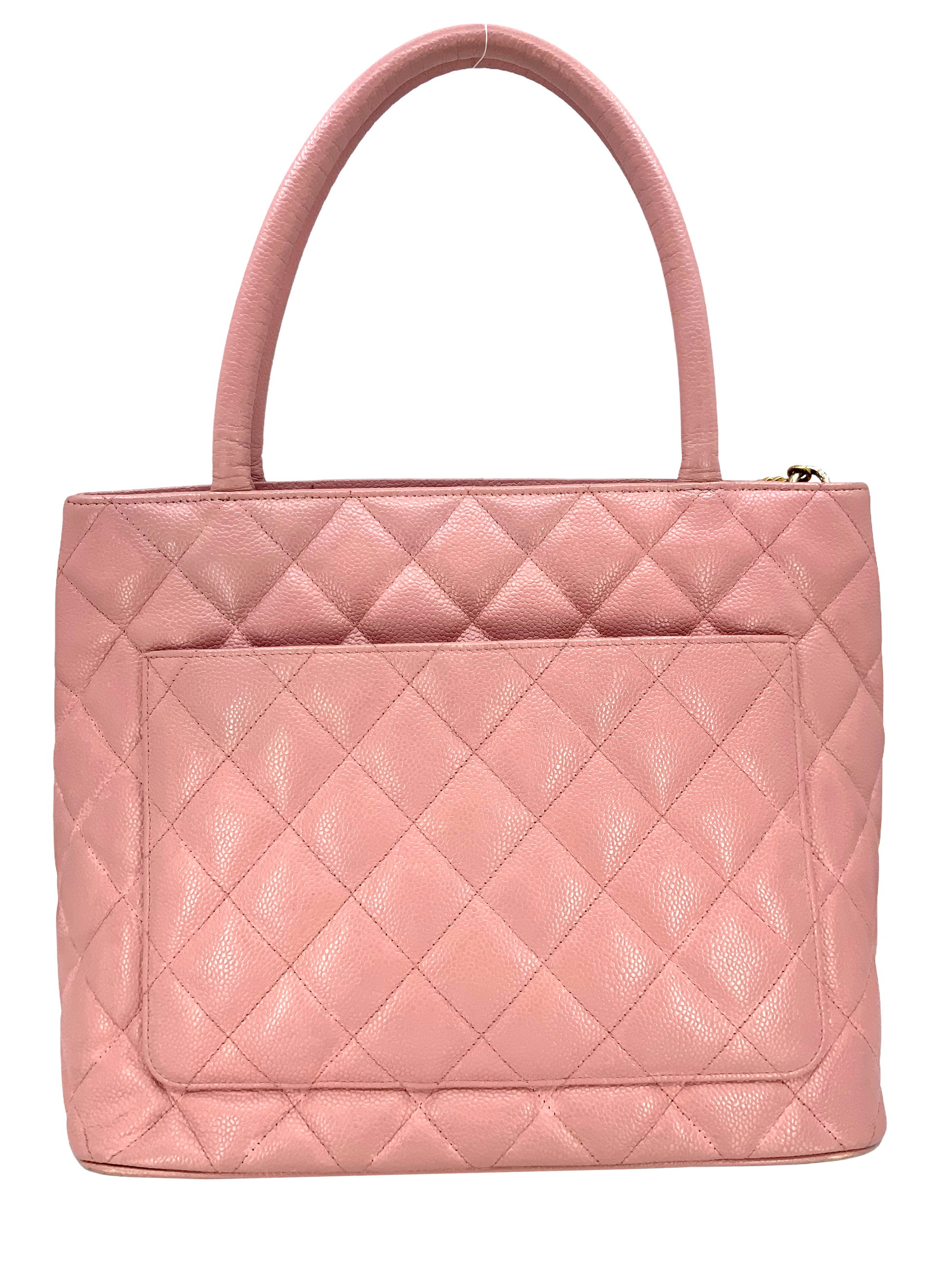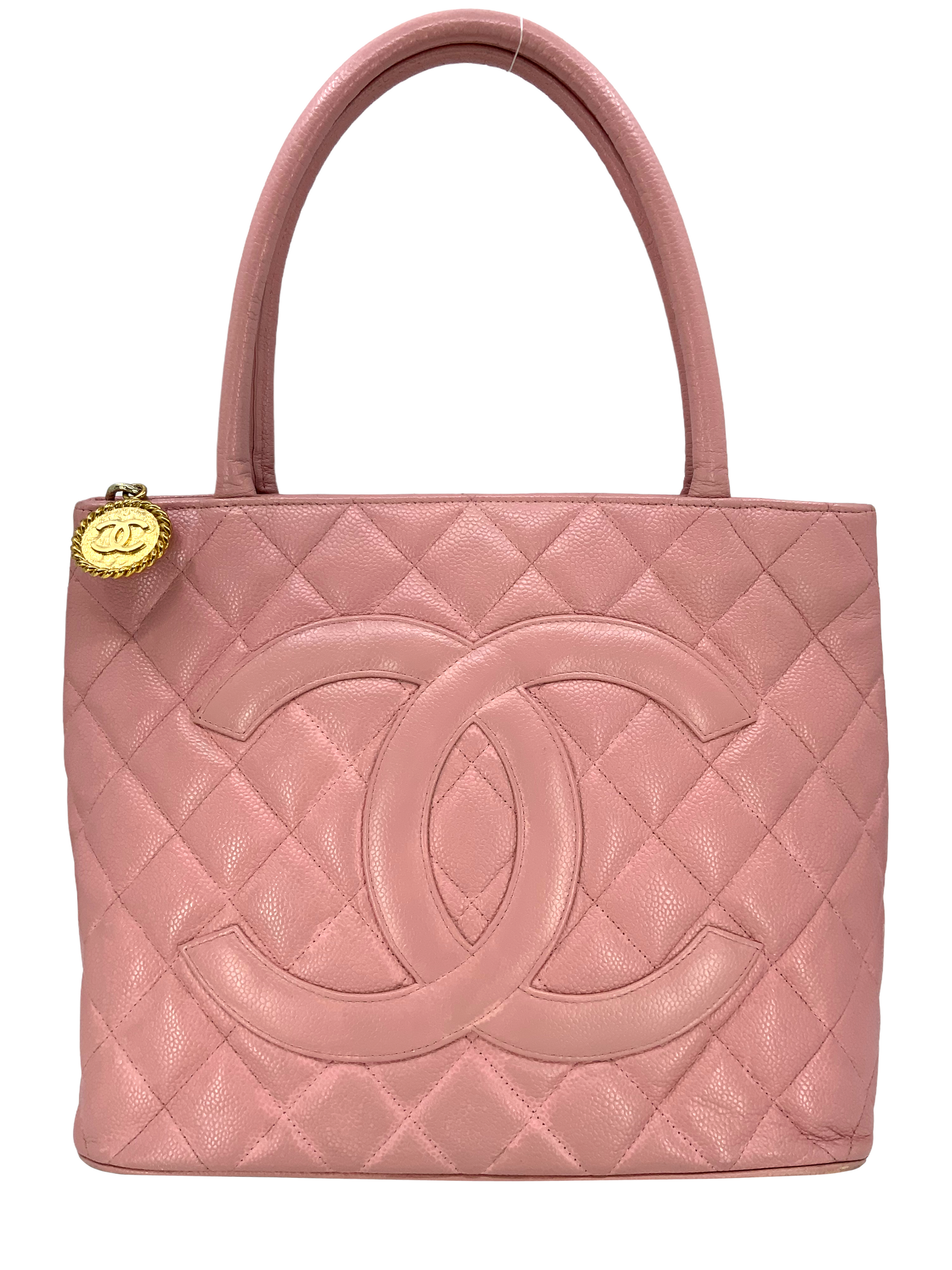 This and highly sought-after Chanel Quilted Caviar Medallion Tote Bag is a must-have in any fashionista's collection. This iconicbag is crafted fromsignaturepink diamond quilted caviar leather andgold-tone hardware. It features a bold large 'CC' stitched logo at front, rolled tote handles and a 'CC' medallion zip closure.