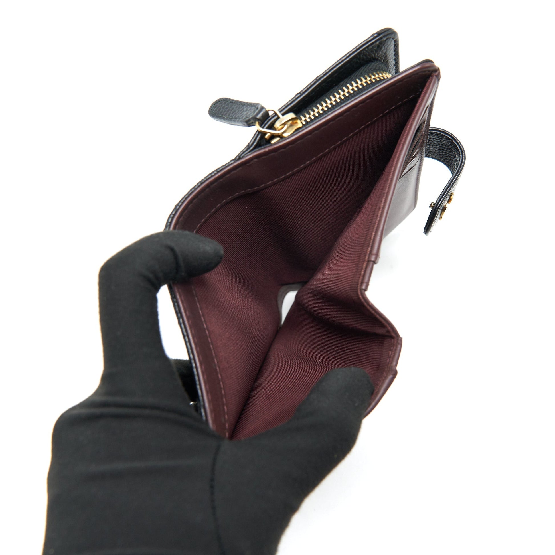 Chanel Quilted CC Bifold Caviar Wallet Black GHW