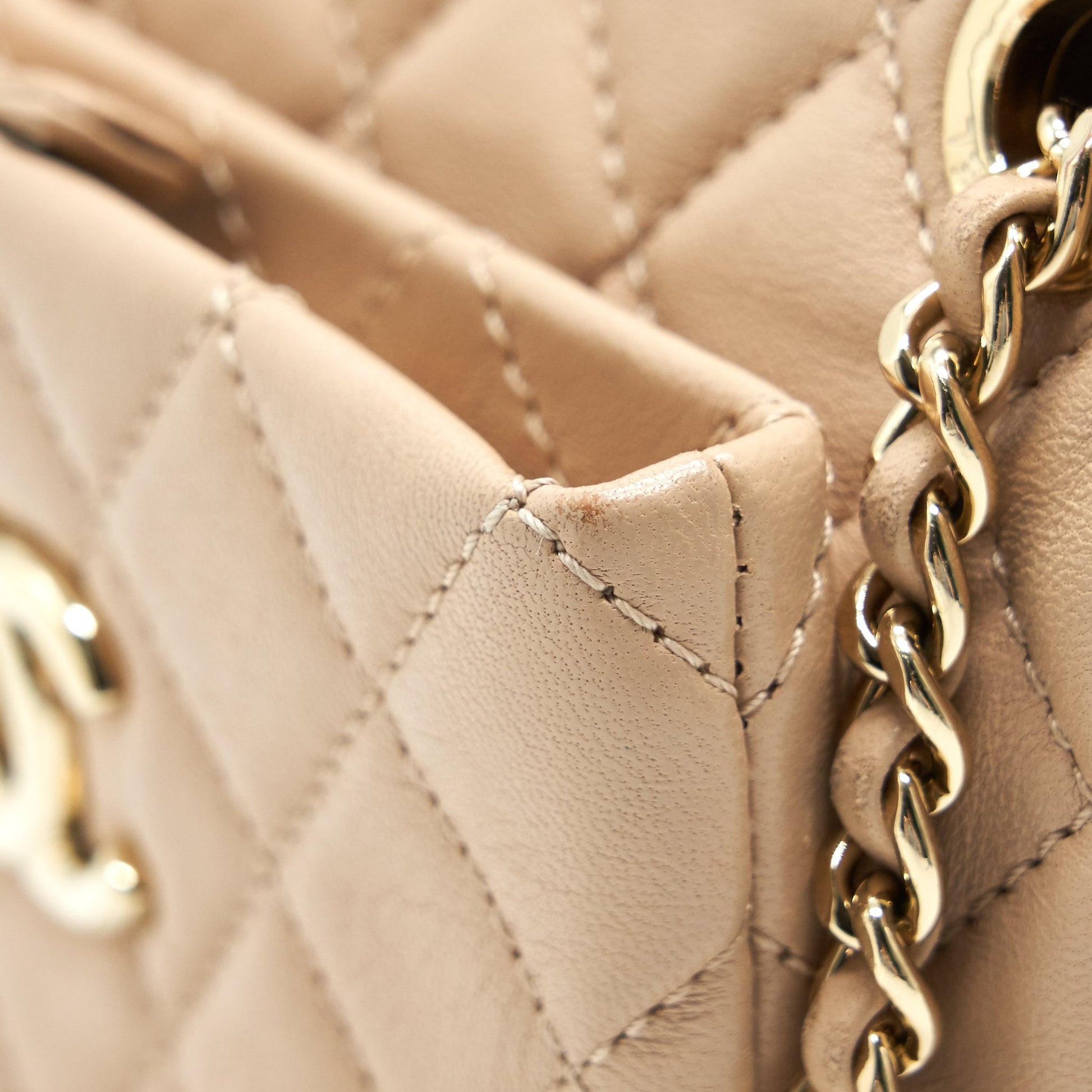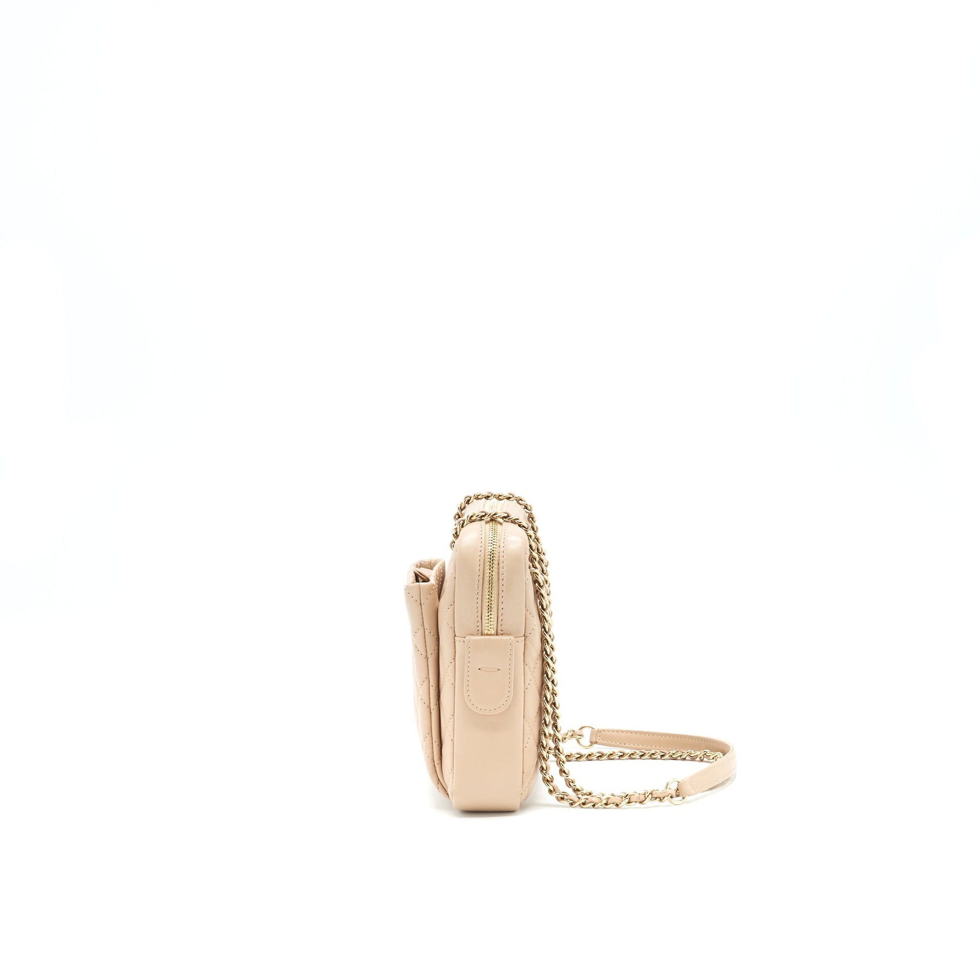 Chanel Quilted Chain Shoulder Bag/ Crossbody Bag beige LGHW
