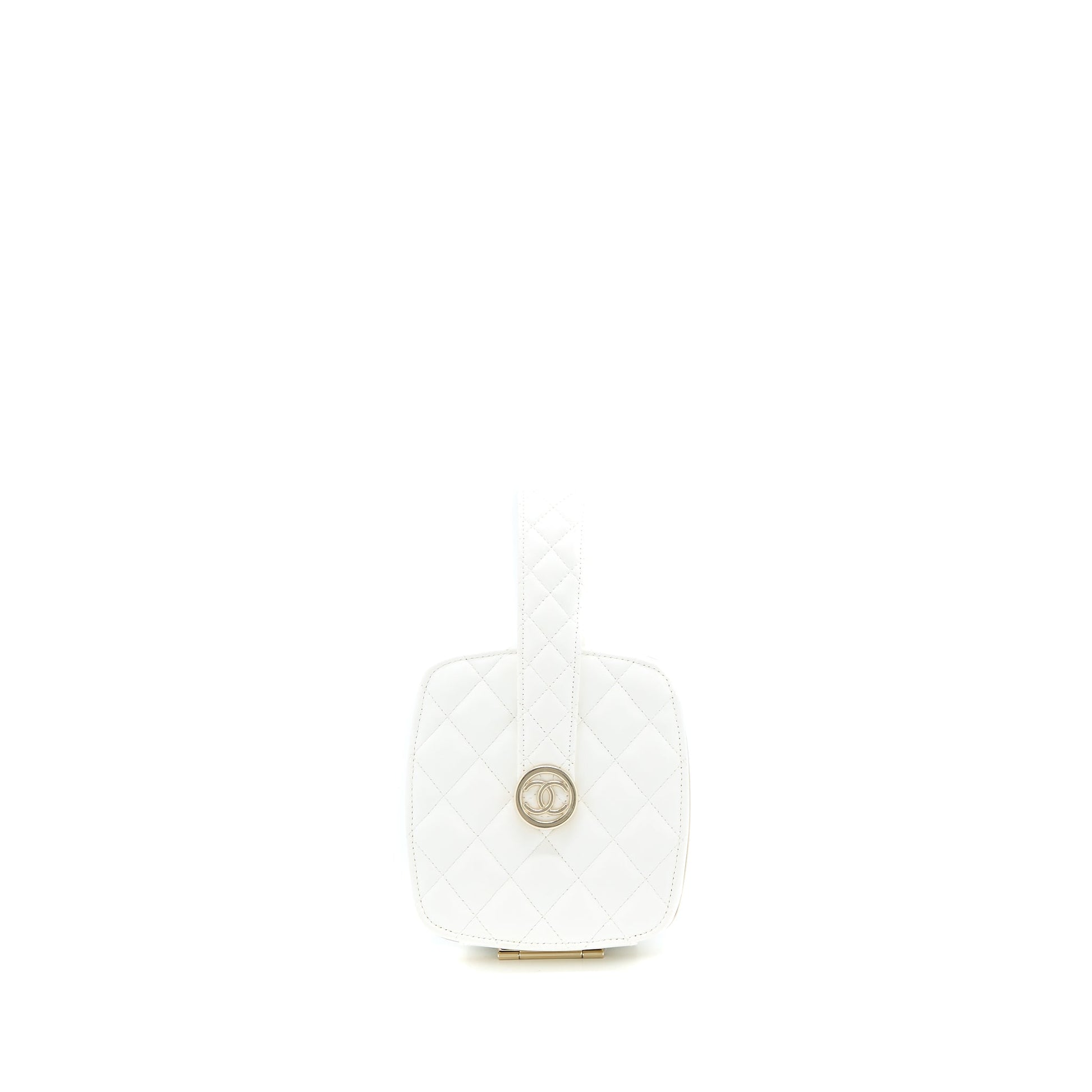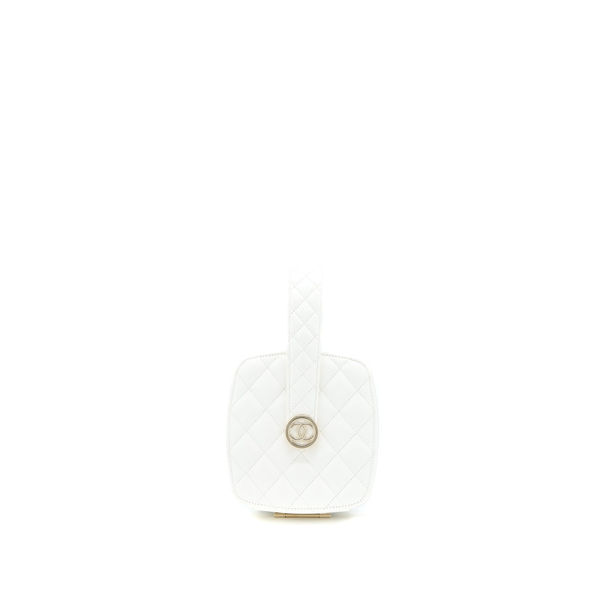 Chanel Quilted Clutch Bag Lambskin White LGHW