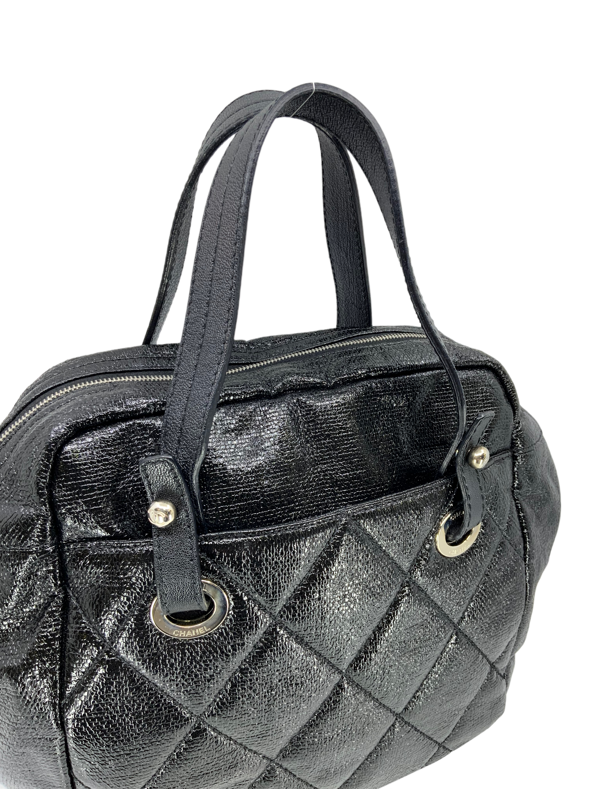 CHANEL Quilted Coated Leather Large Bowling Bag