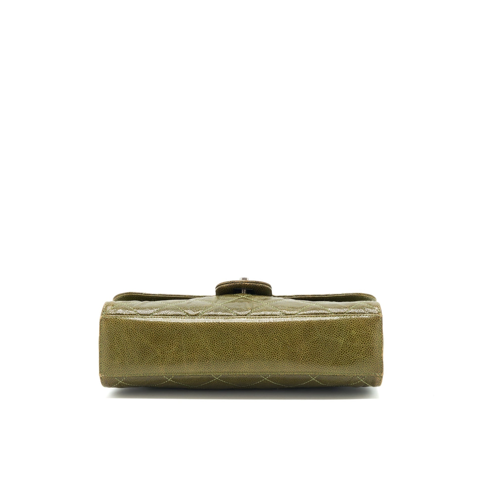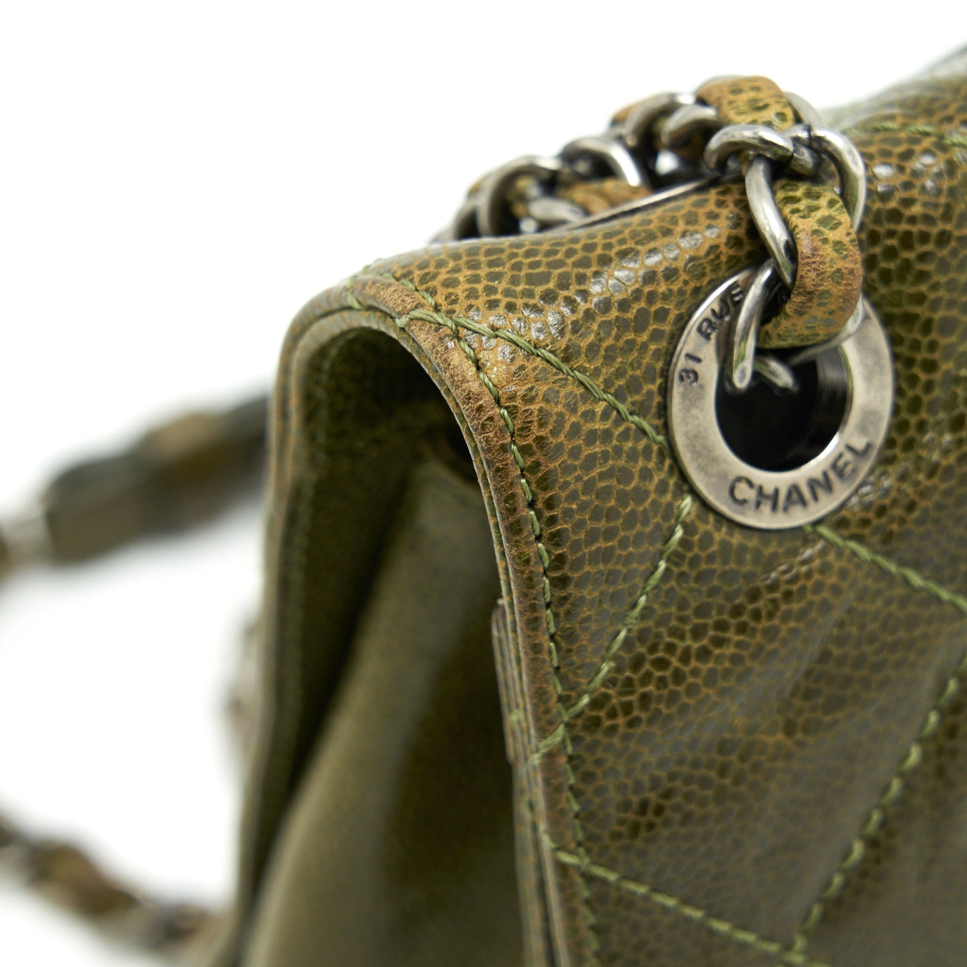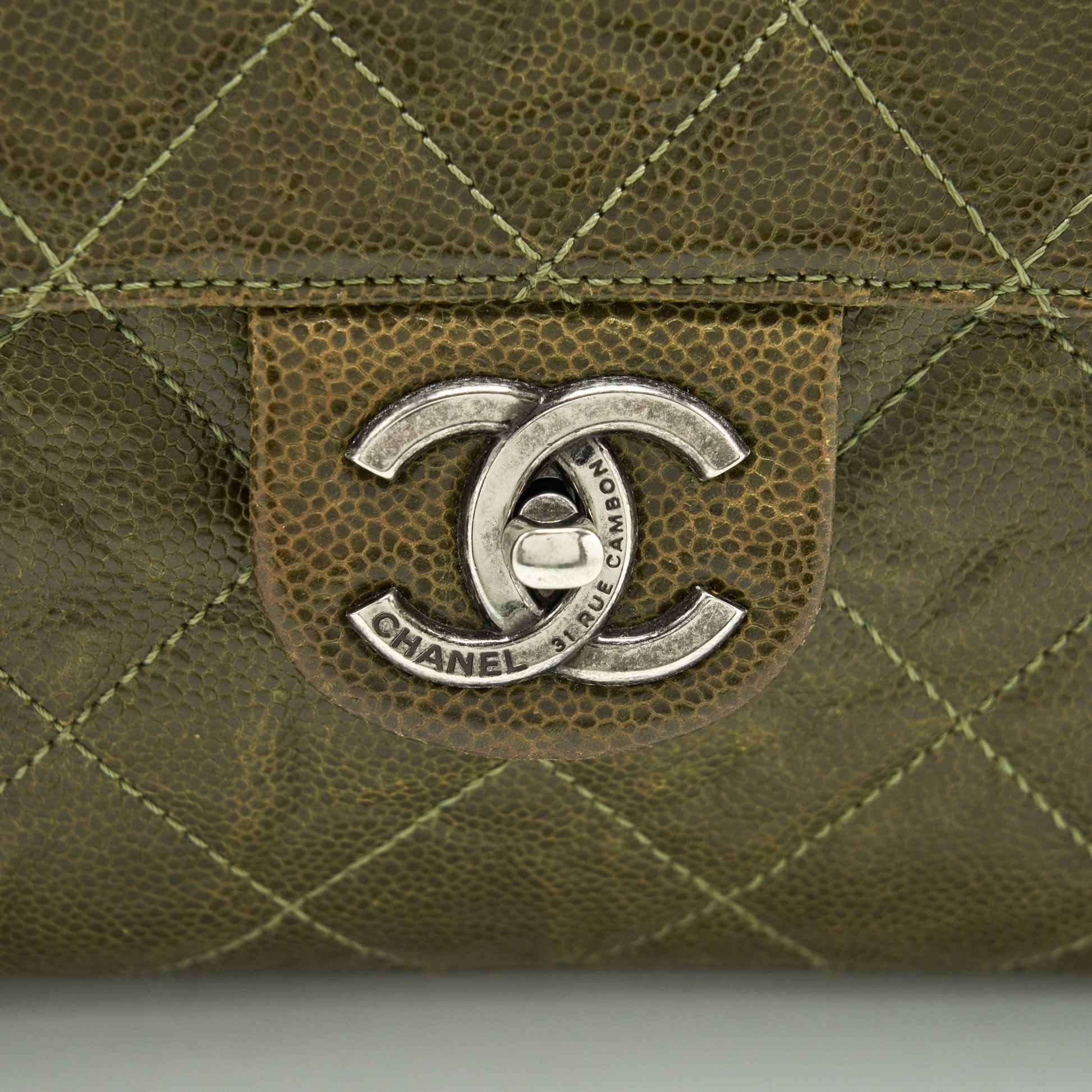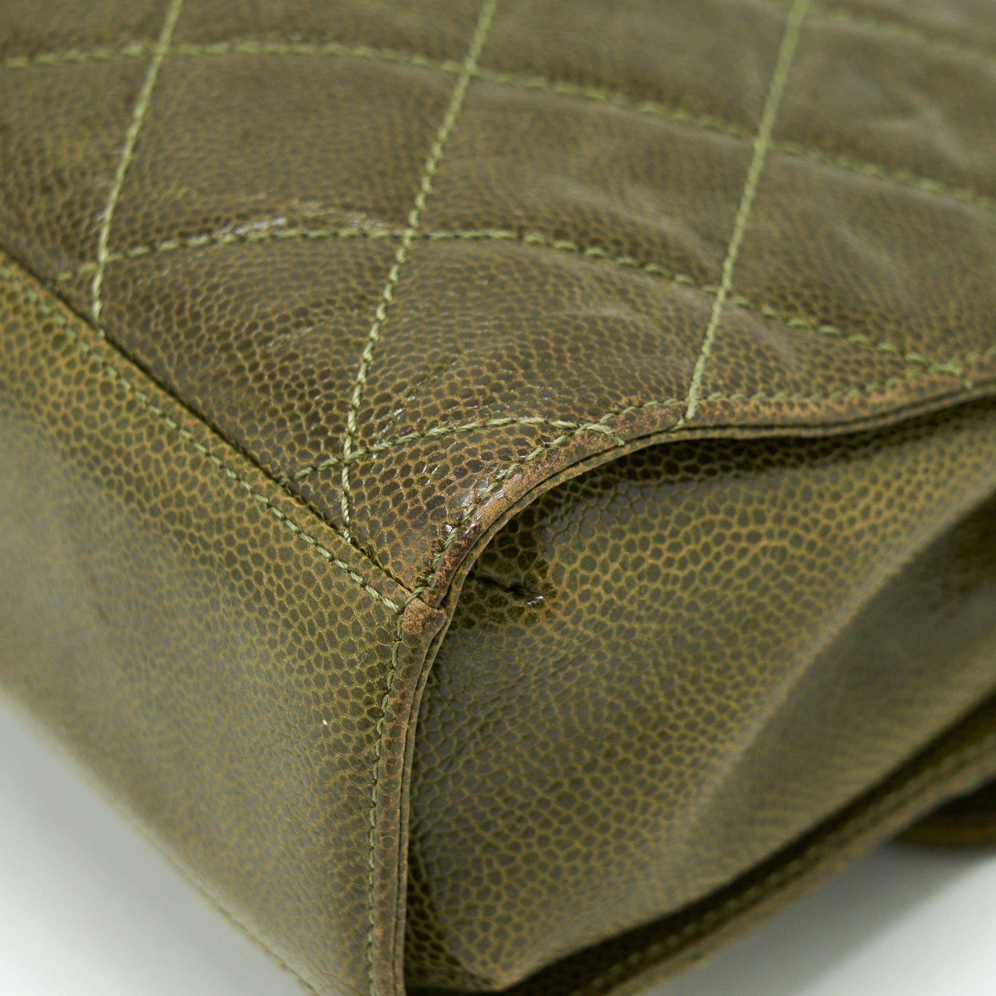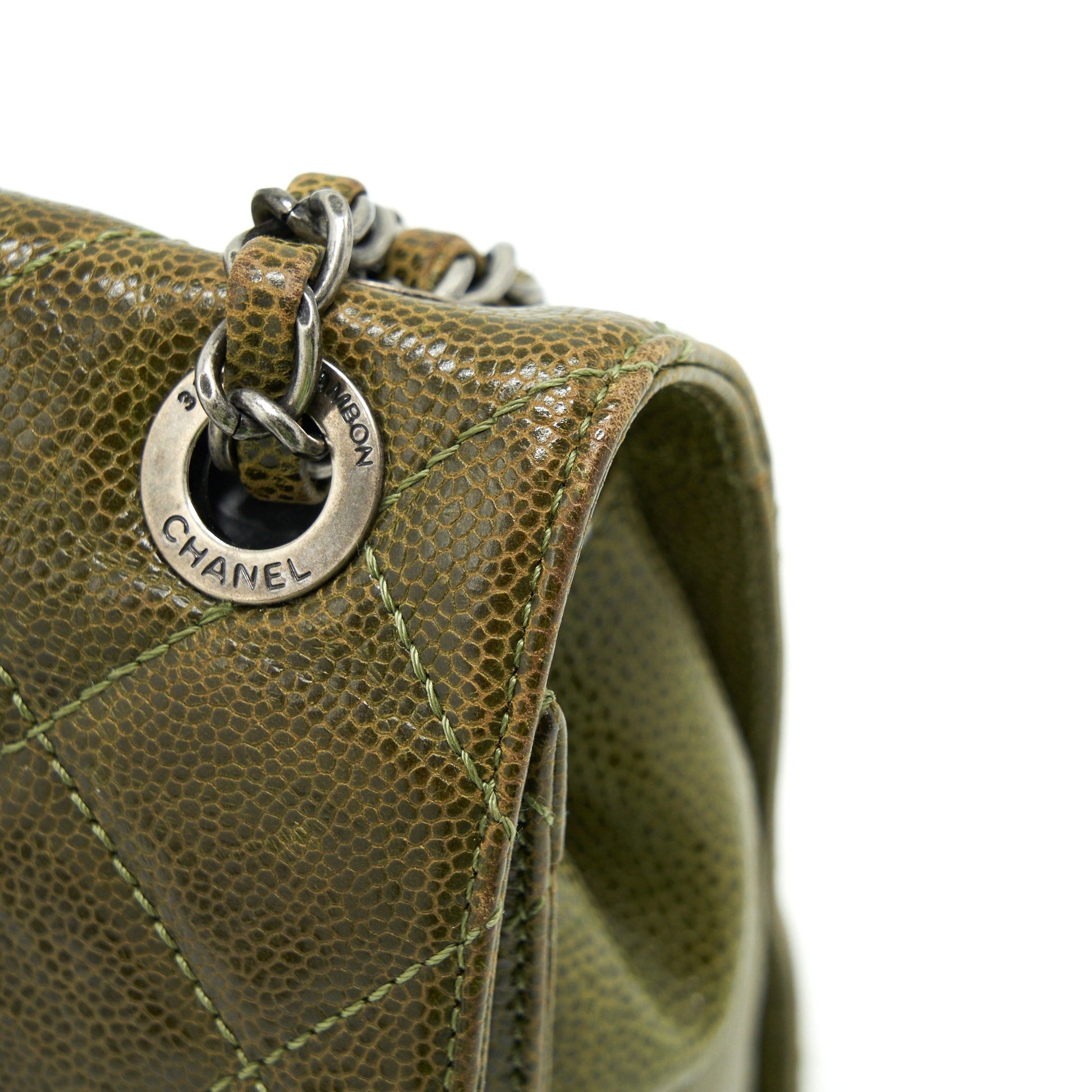 Chanel Quilted Grained Calfskin Bag Olive Green Ruthenium Hardware