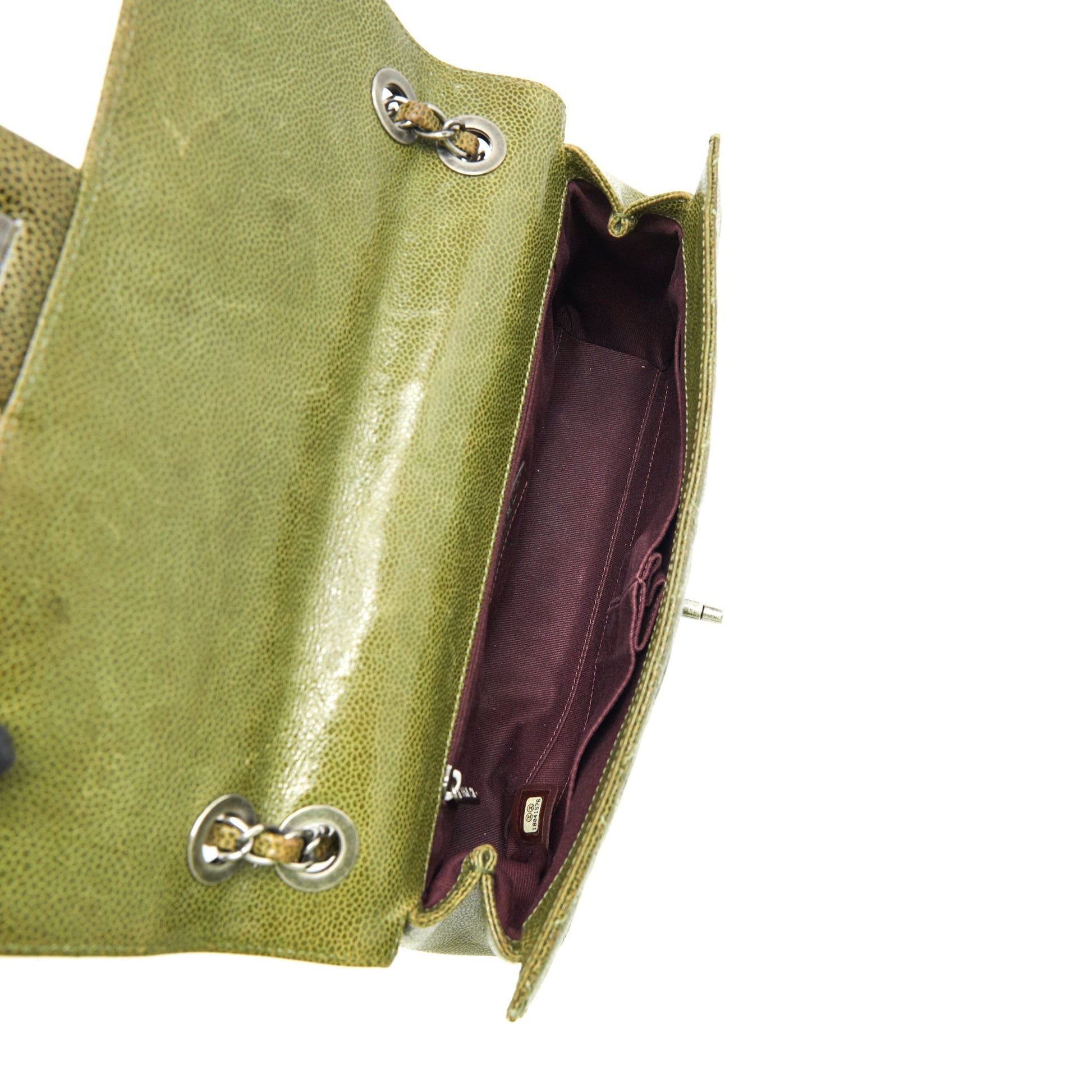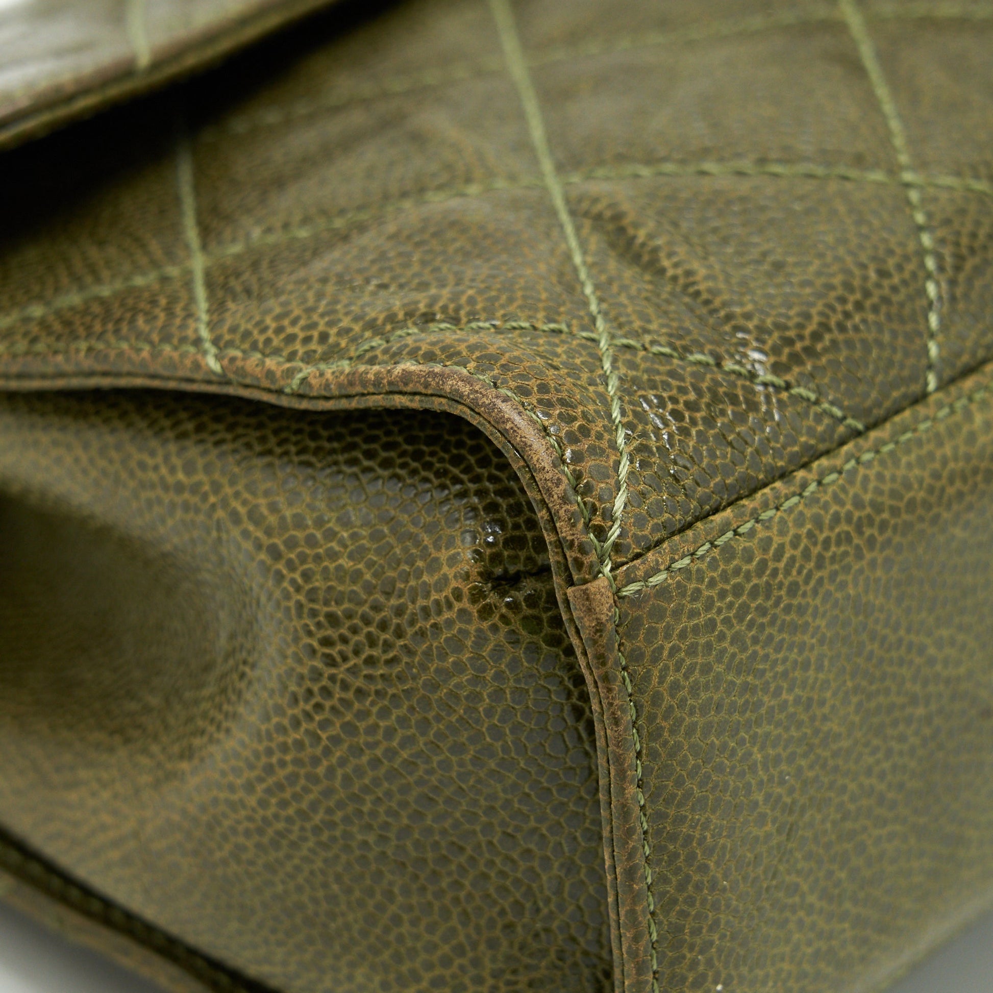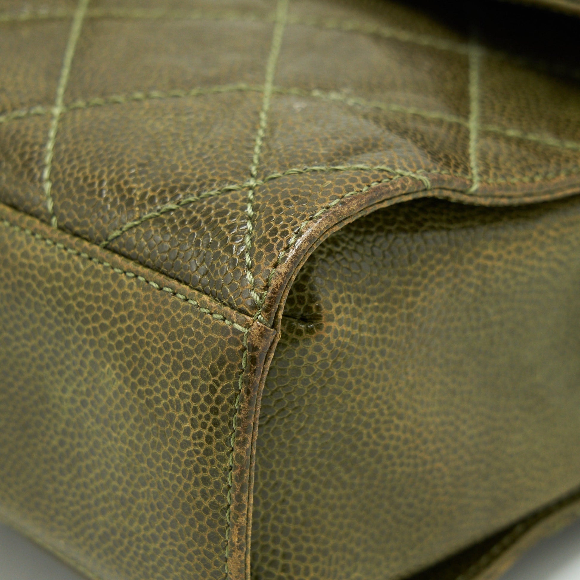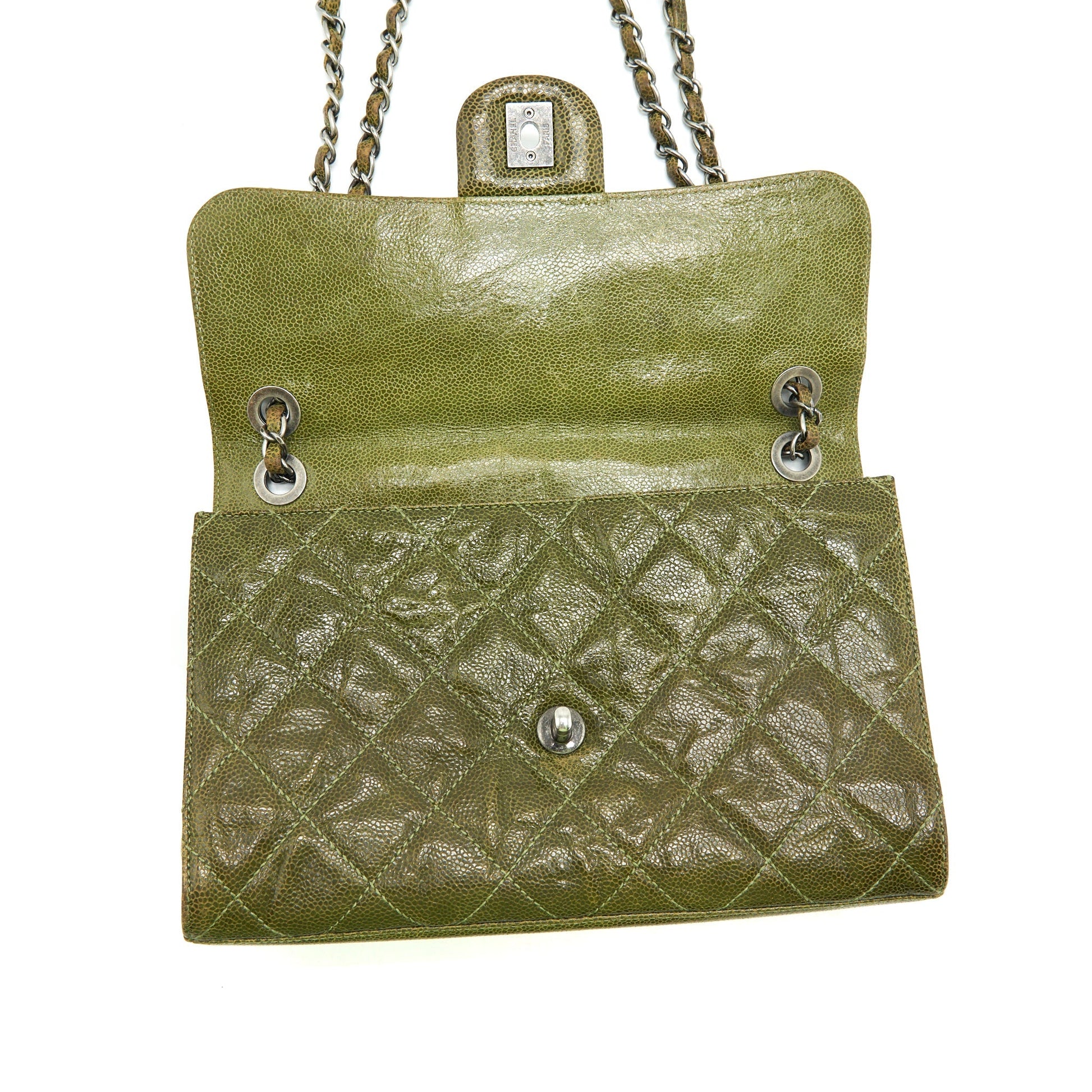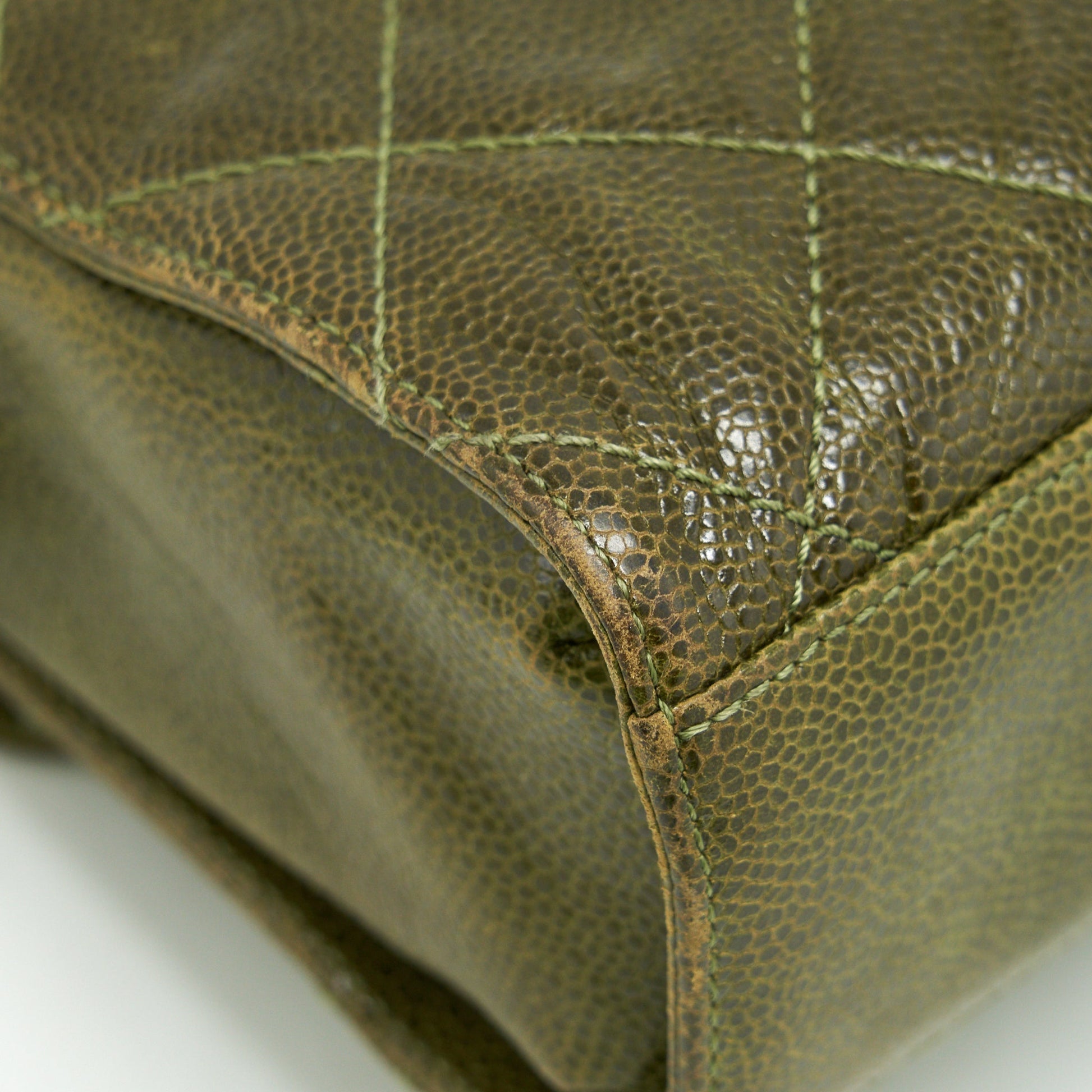 Chanel Quilted Grained Calfskin Bag Olive Green Ruthenium Hardware
