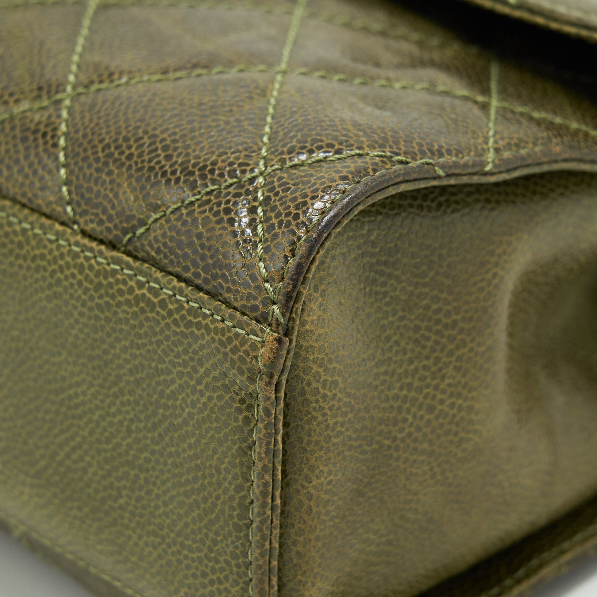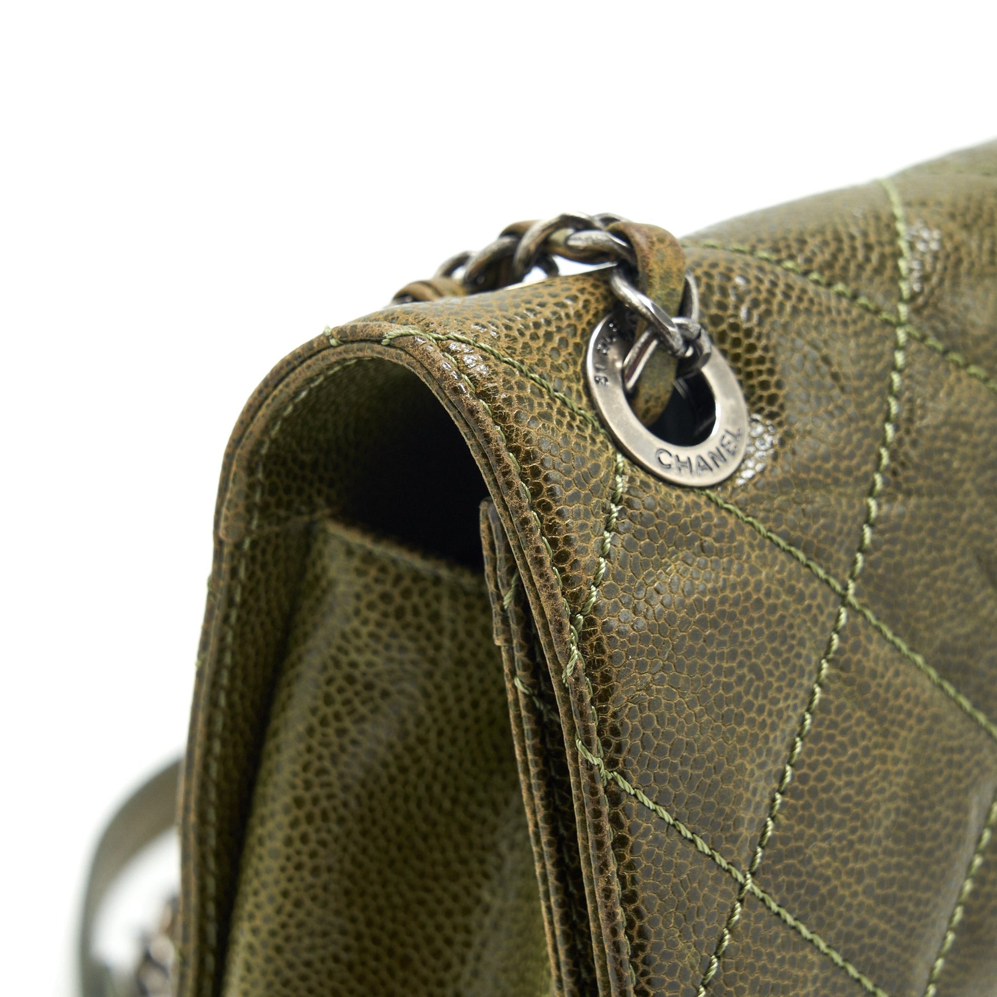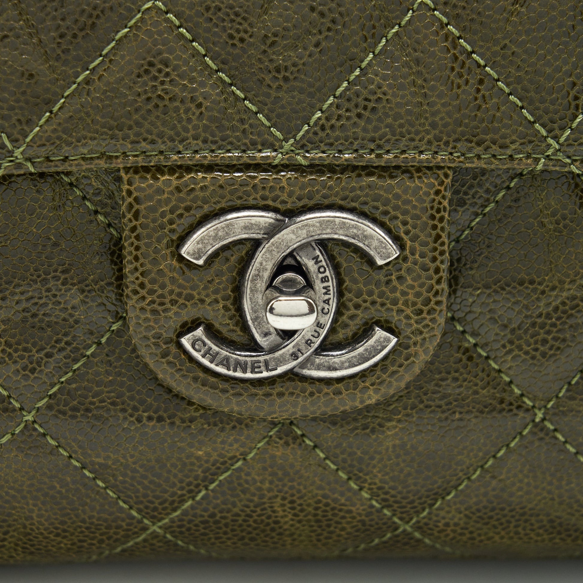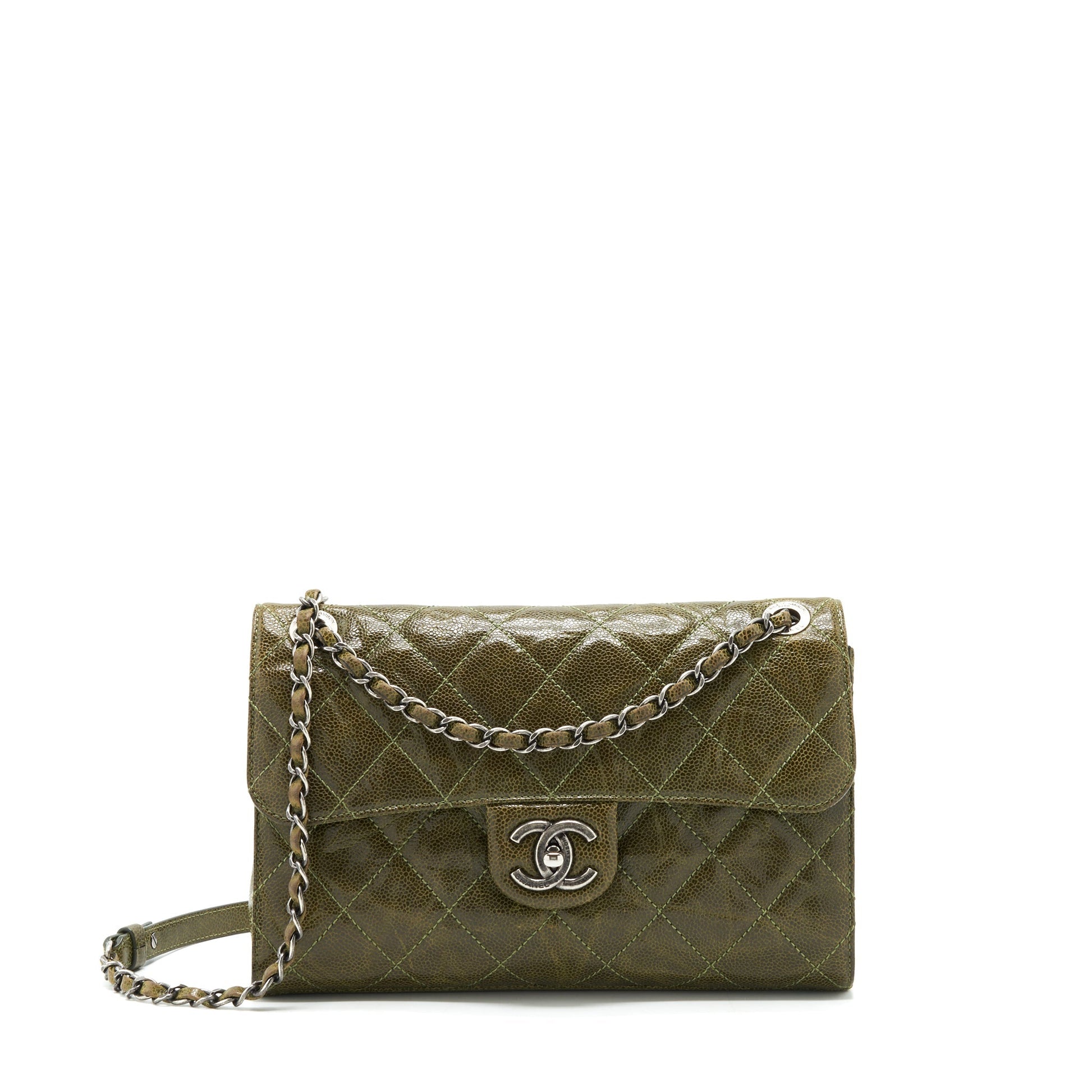 Chanel Quilted Grained Calfskin Flap Bag Olive green ruthenium hardware