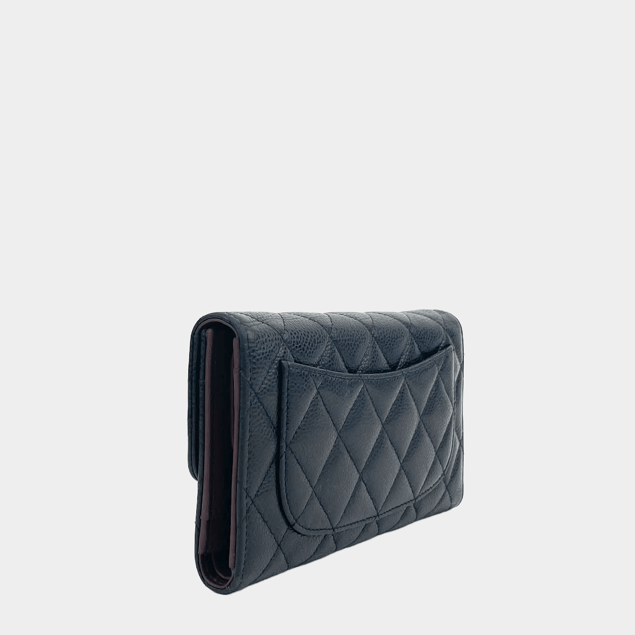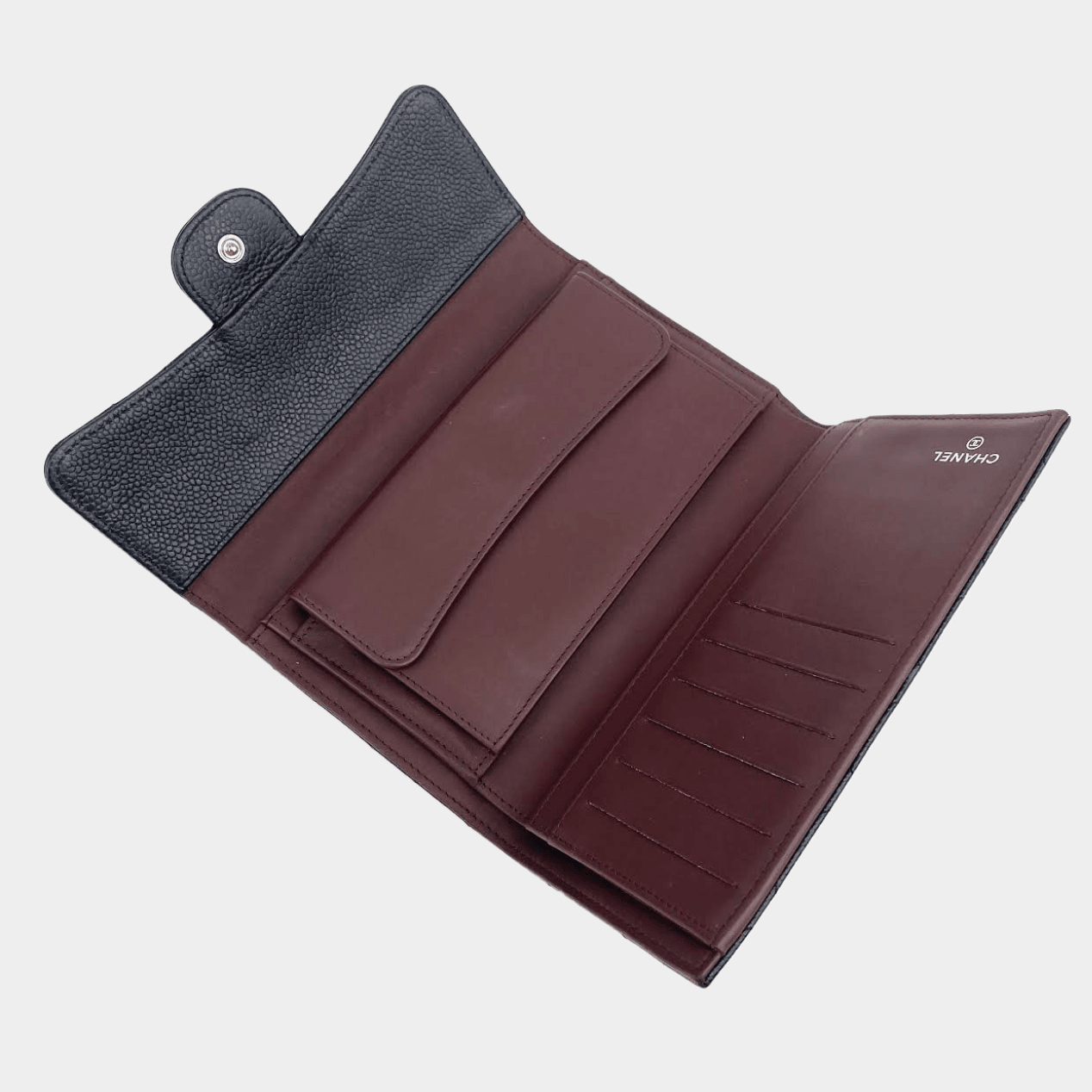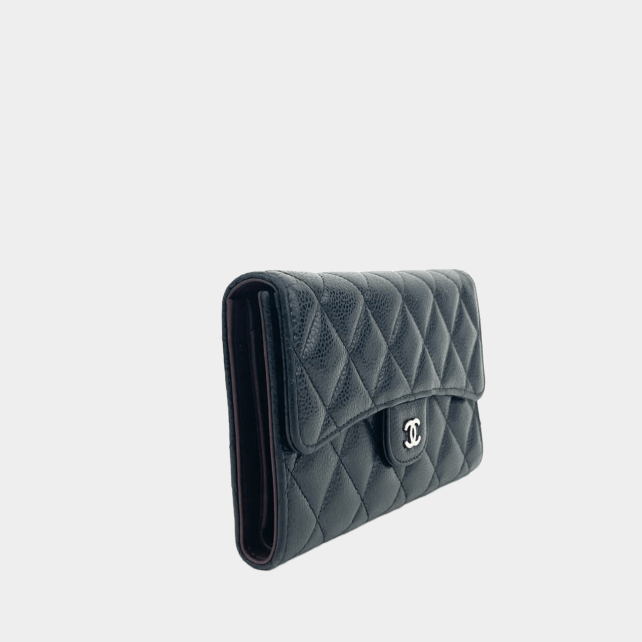 CHANEL Quilted L- Gusset Trifold Wallet-Black Caviar