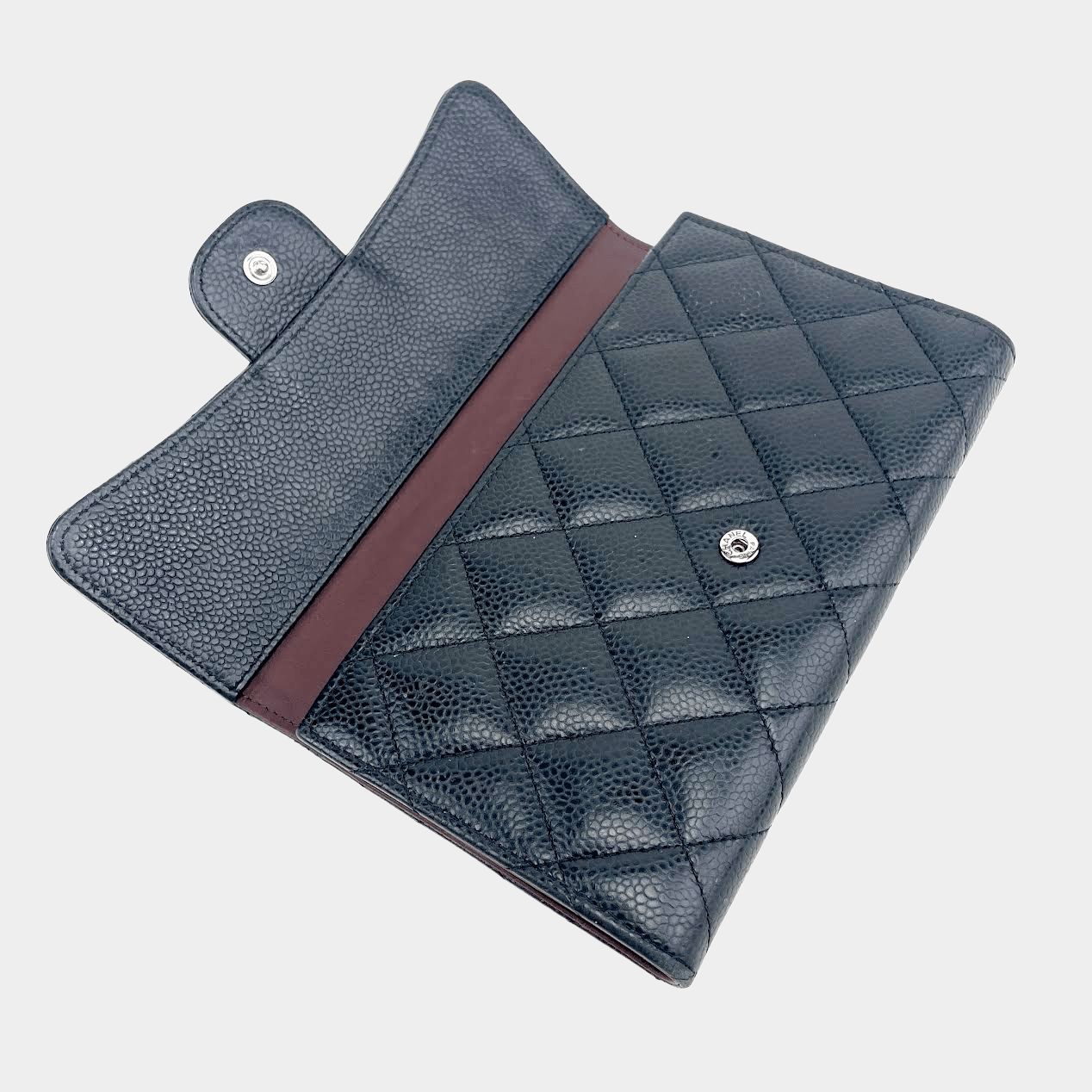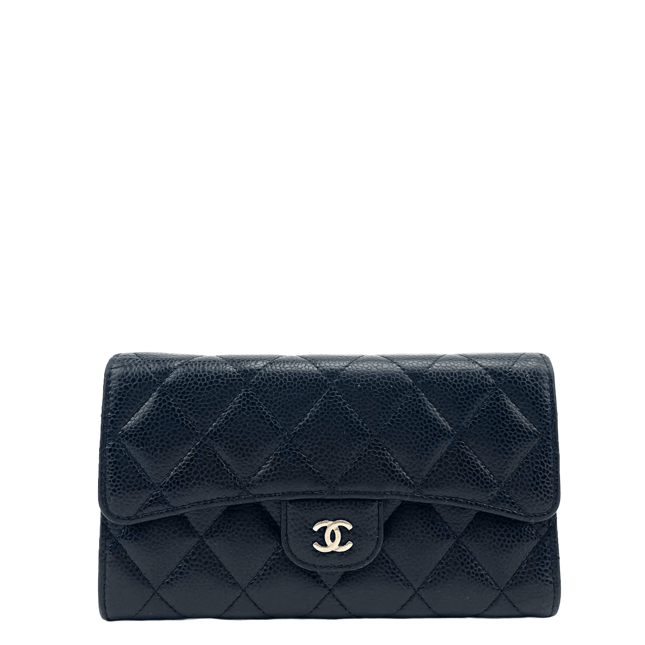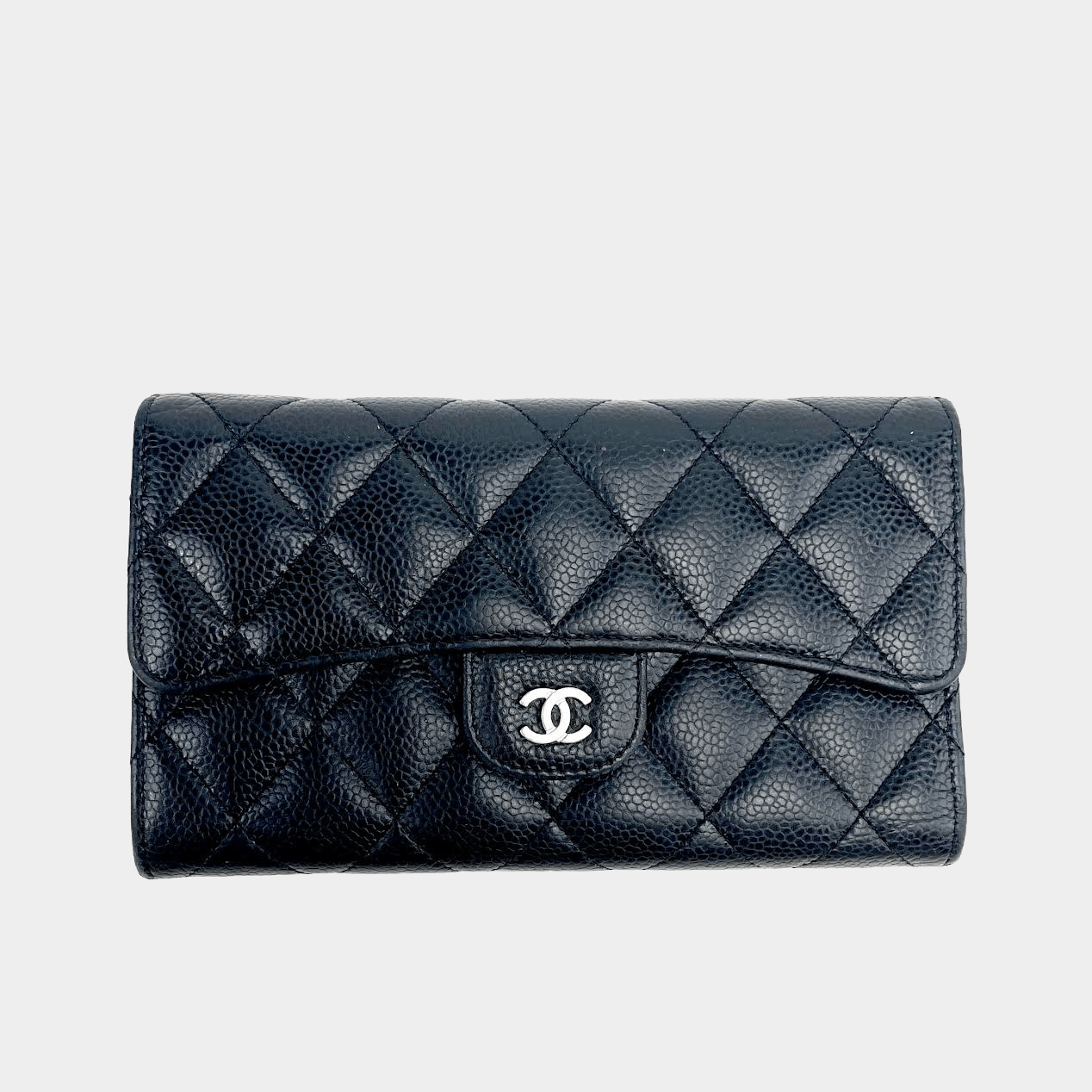 CHANEL Quilted L- Gusset Trifold Wallet-Black Caviar