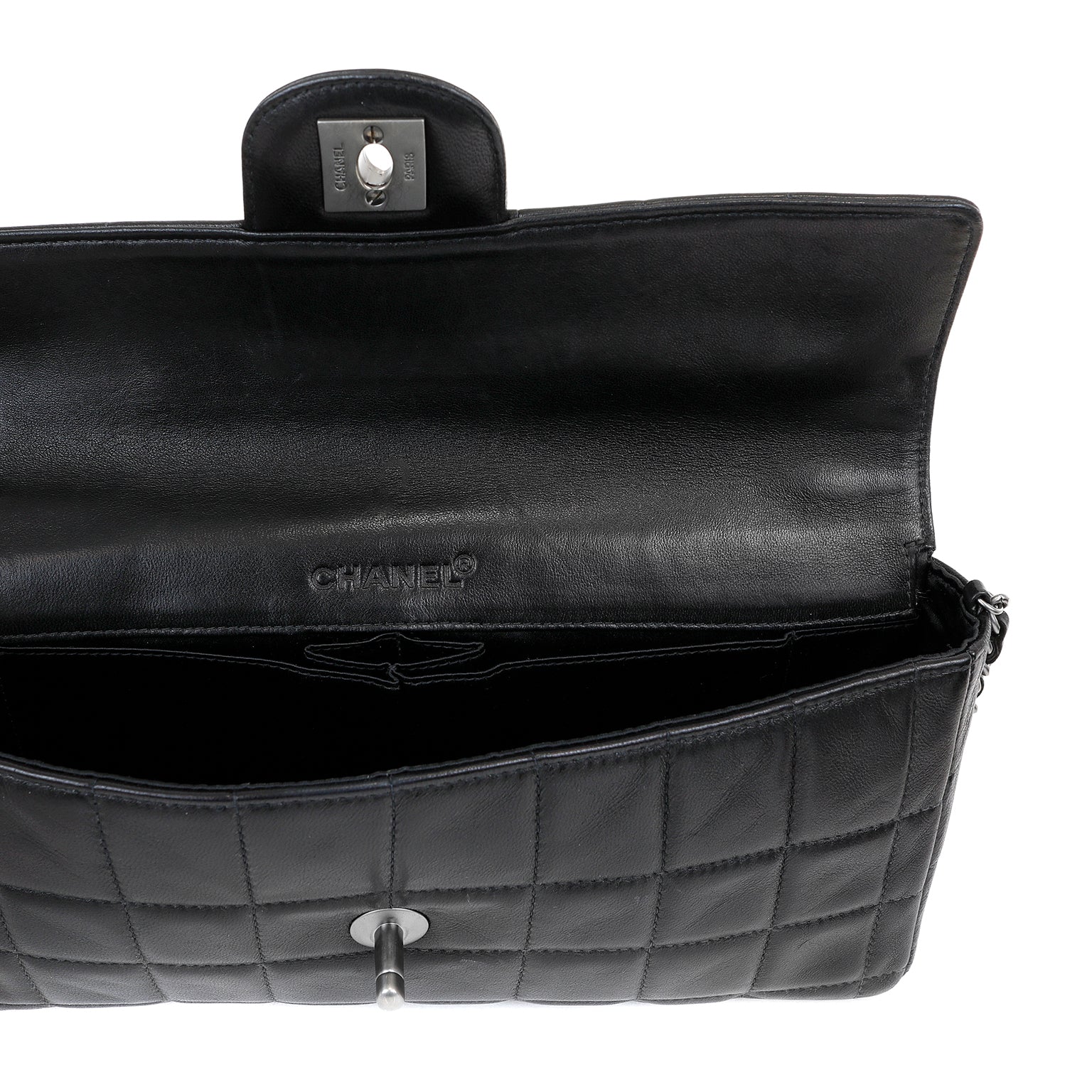 Chanel Black Lambskin Chocolate Bar Quilted East West Classic with Silver Hardware