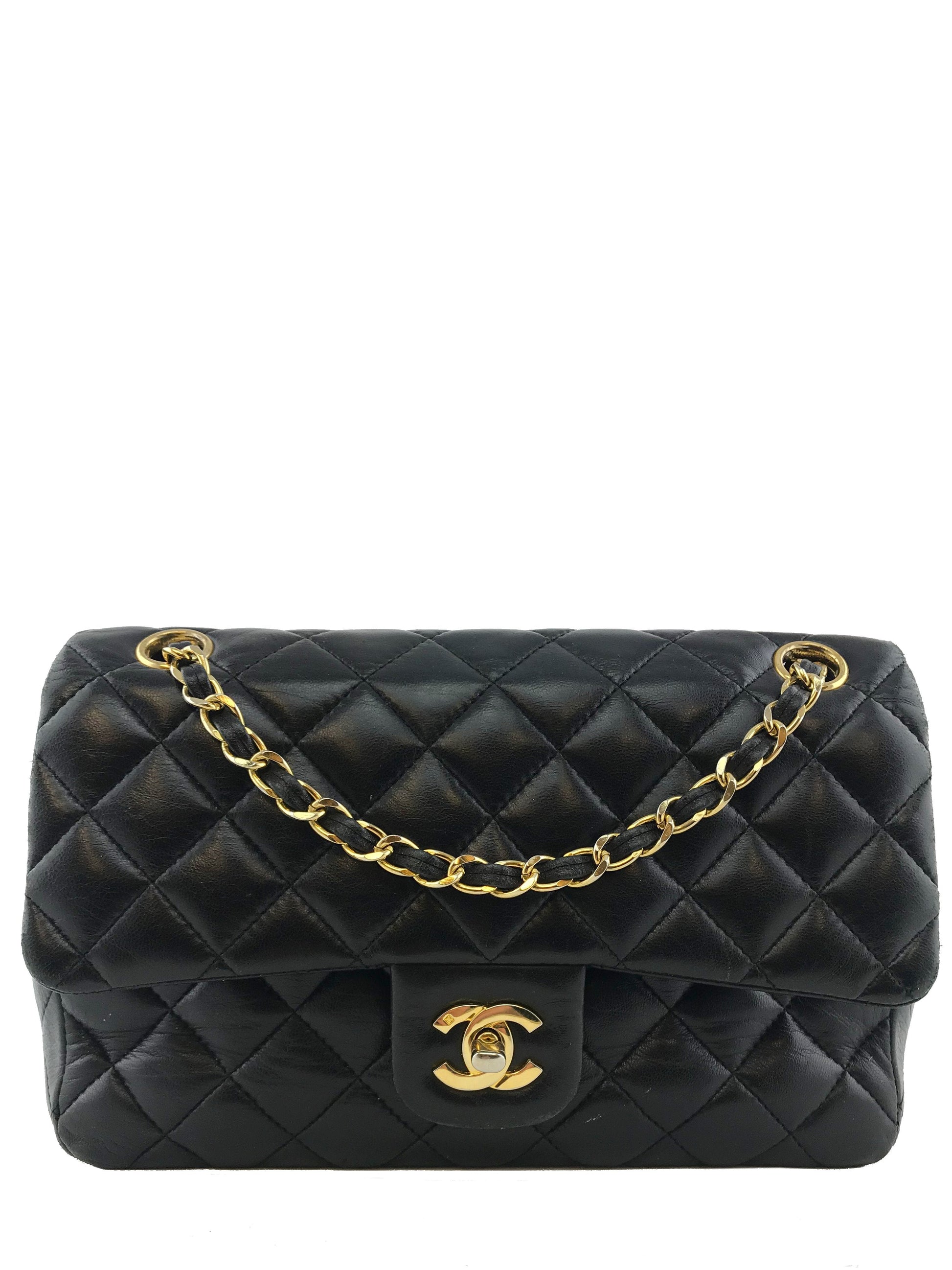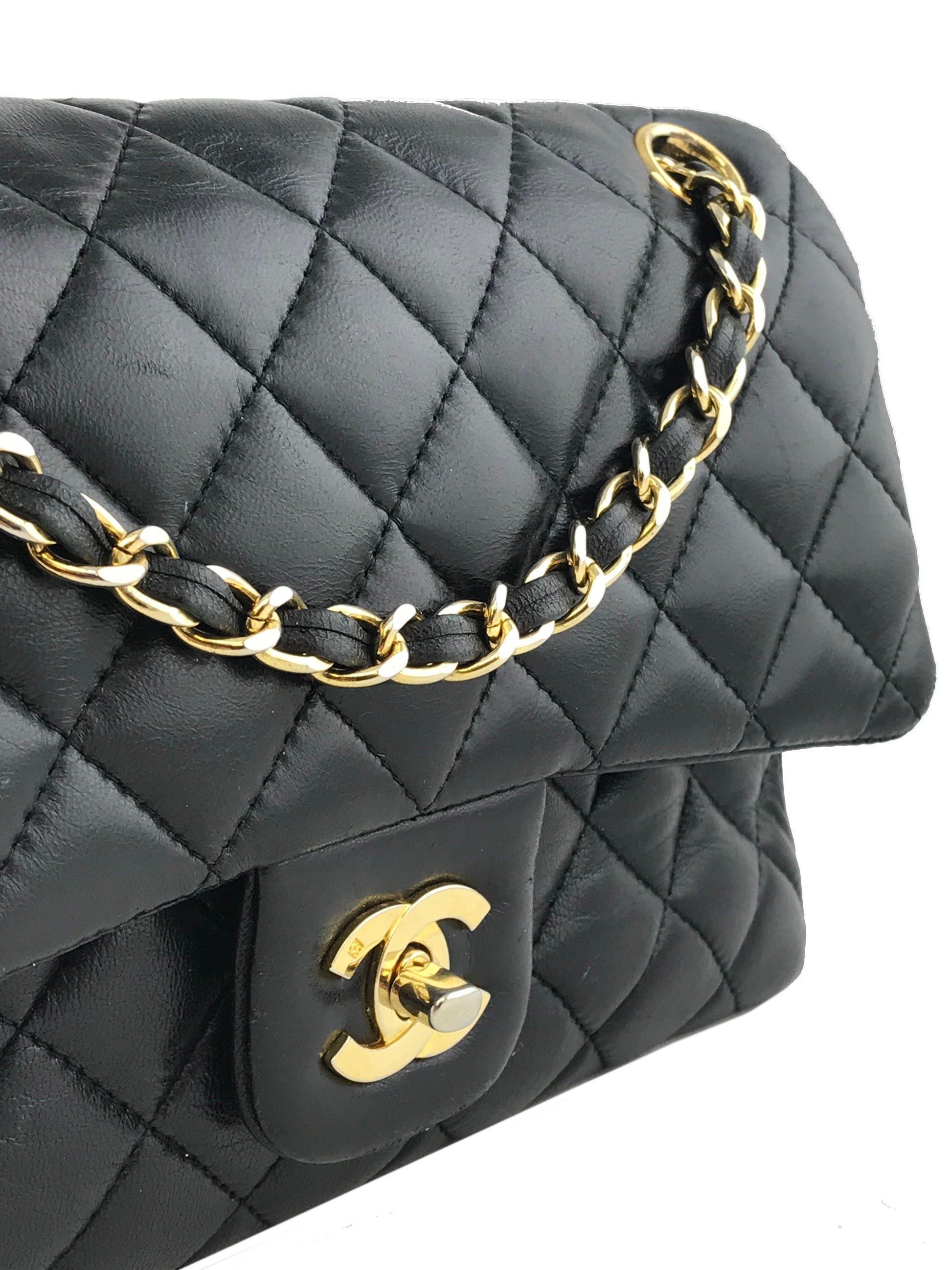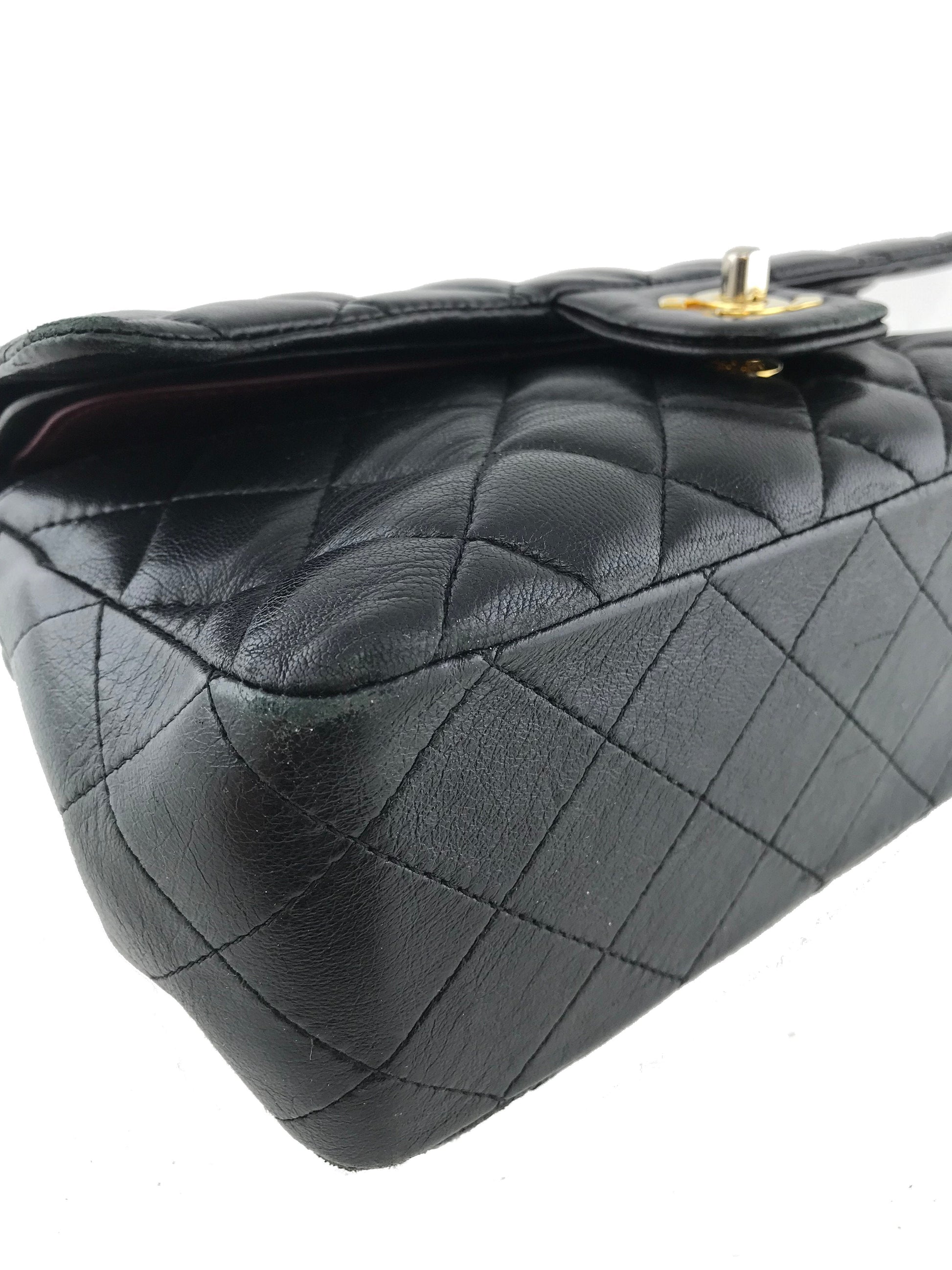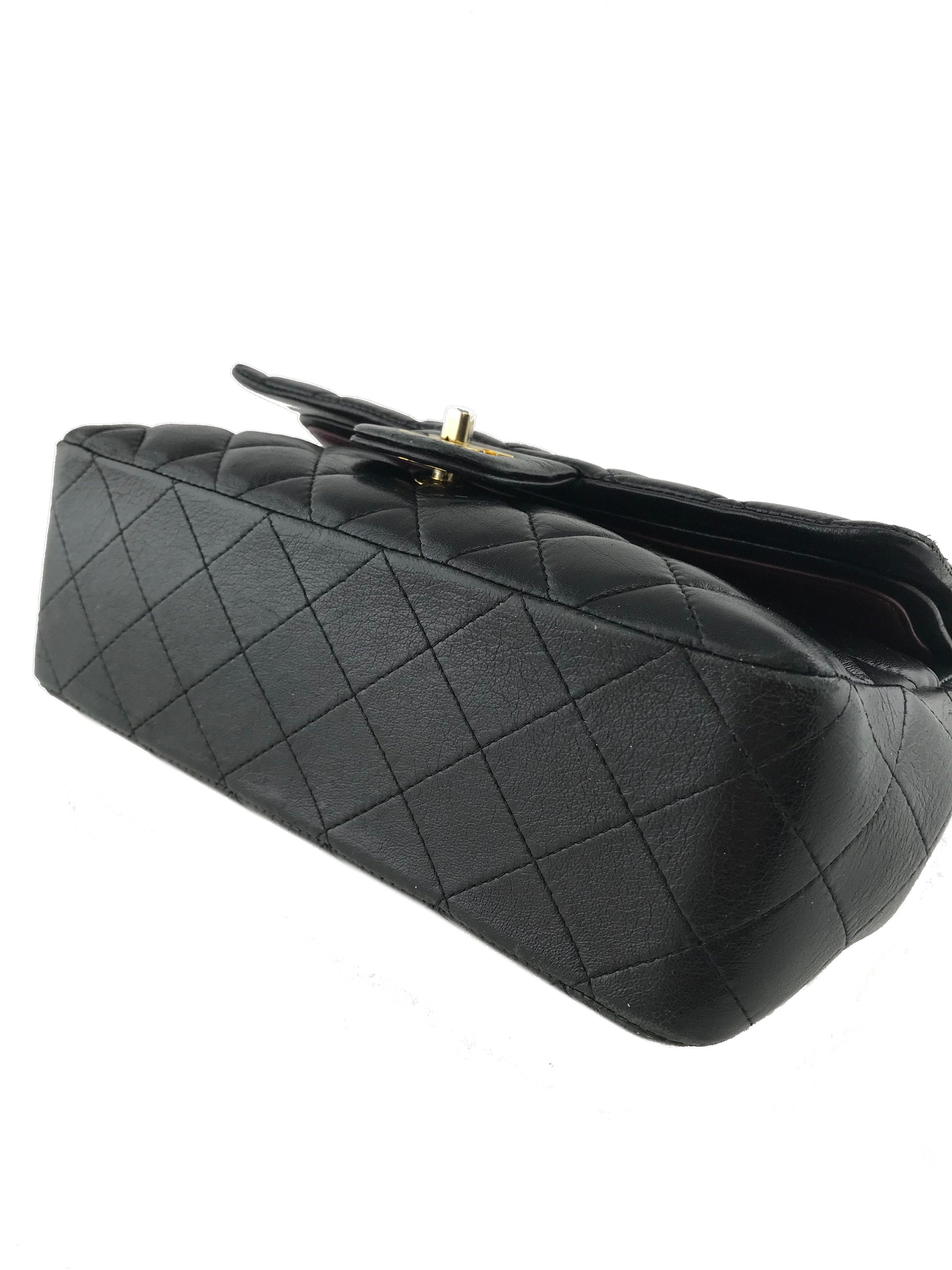 We the ity of this chic and sophisticated vintage Chanel Quilted Lambskin Classic Medium Double Flap Bag crafted from Chanel's signature blackdiamond quilted leather and24k goldplatedhardware. This highly sought after bag features a chain link and leather strap that has the option of being long over the shoulder or doubled.The frontal flap withsignature 'CC' turn-lock closure opens to a burgundy leather interior withpatch pockets.