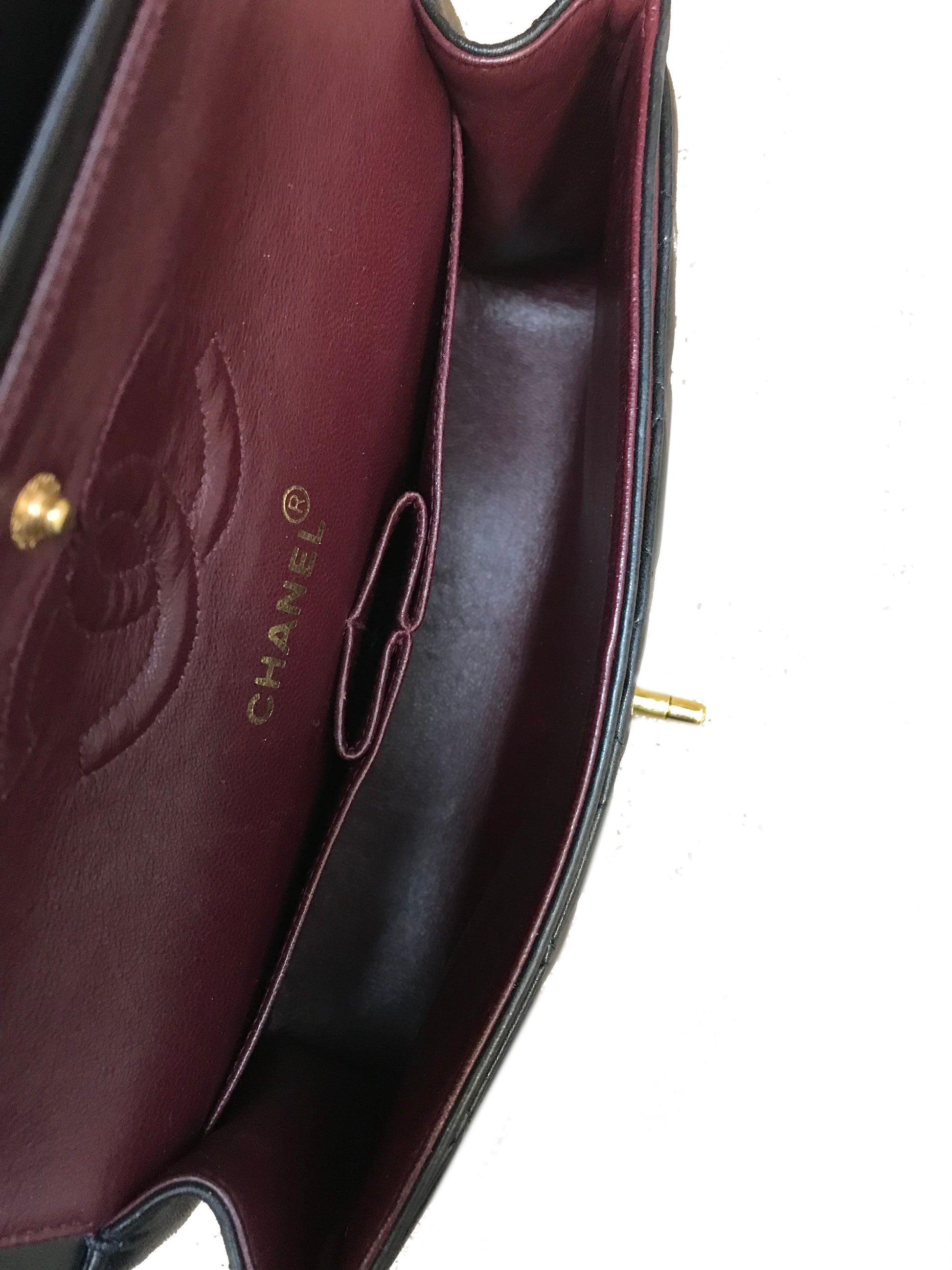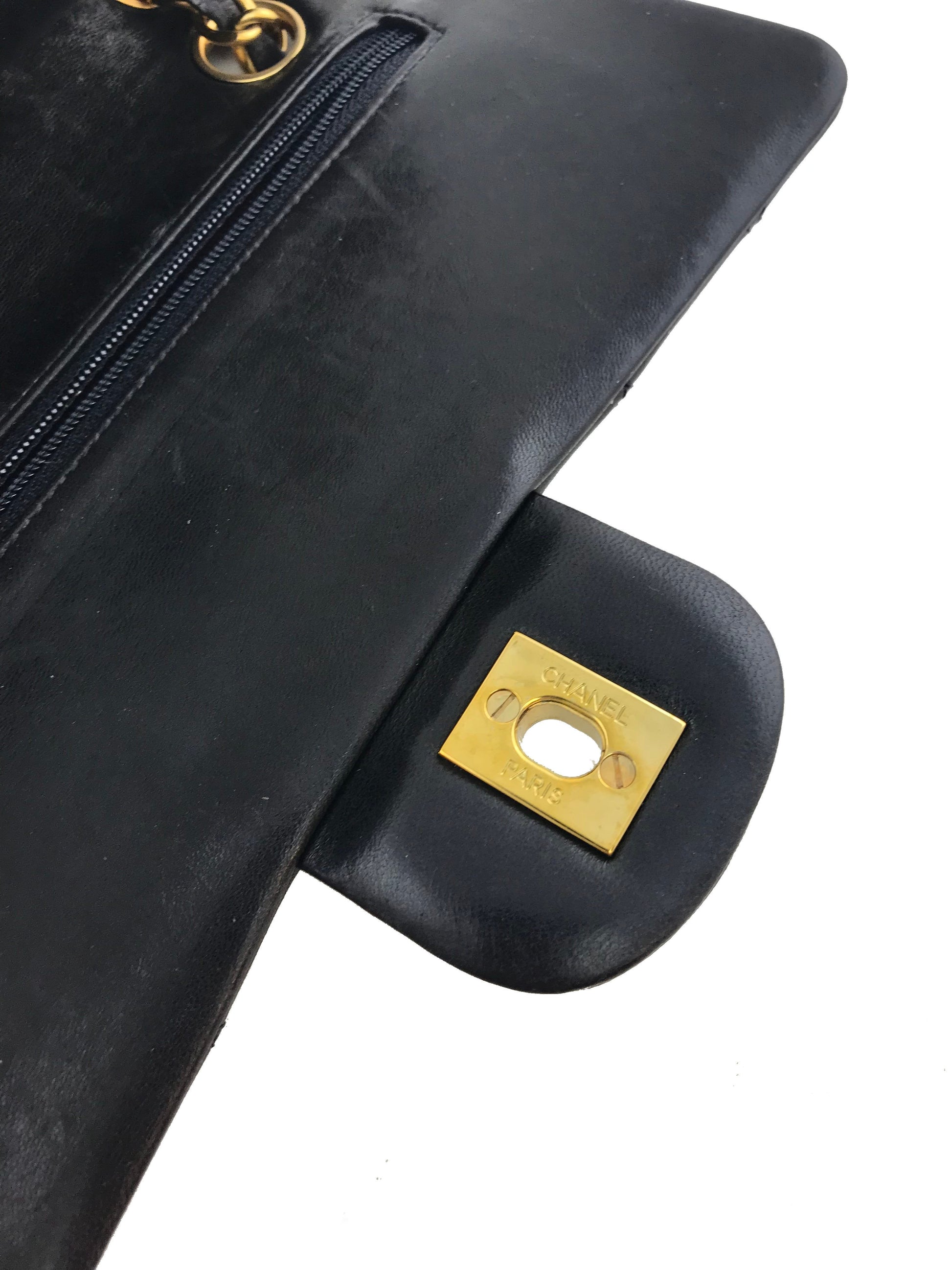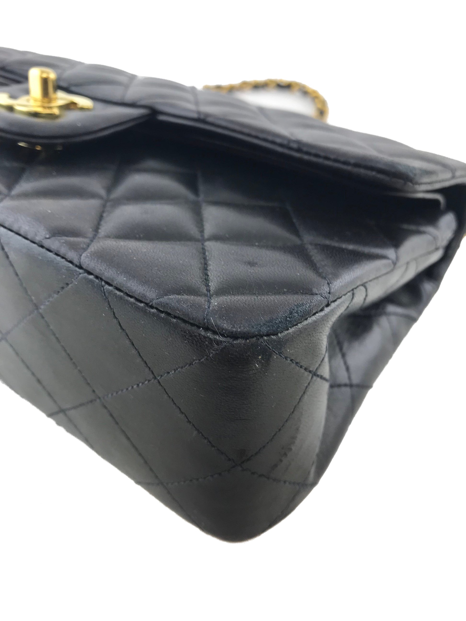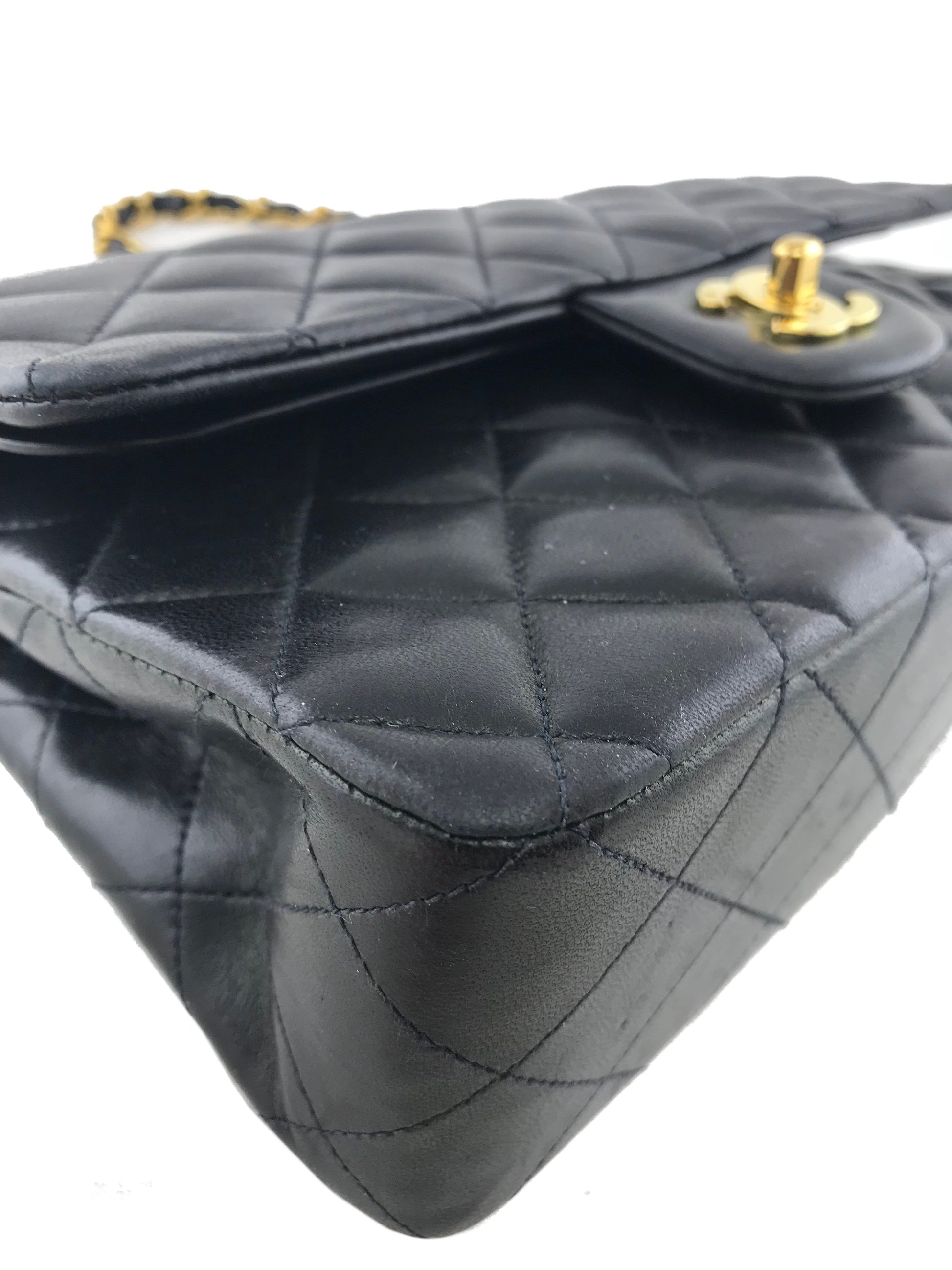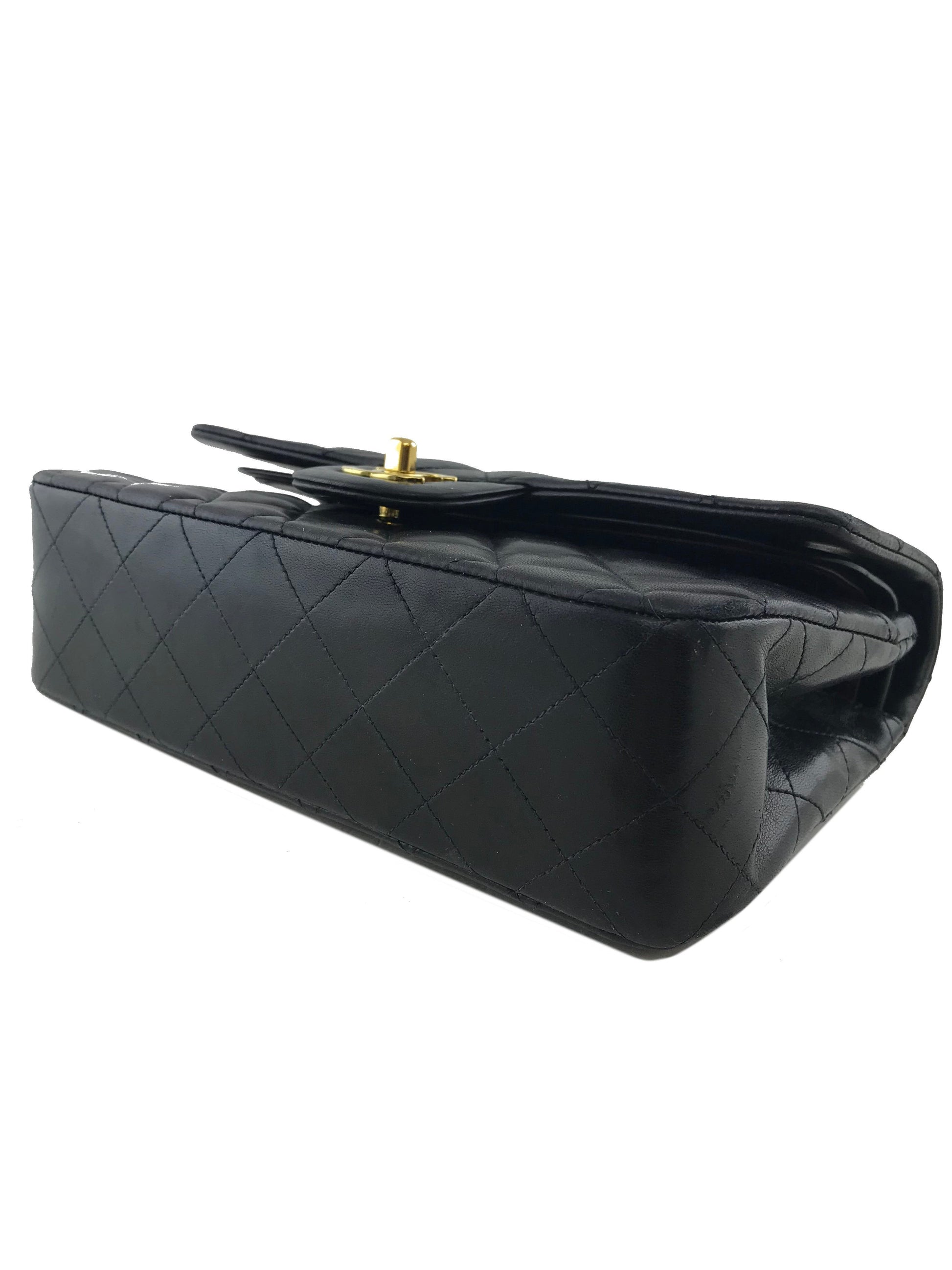 We the ity of this Chanel Quilted Lambskin Small Classic Double Flap Bag crafted in supple black diamond quilted lambskin leather and gold-tone hardware. This iconic bag features a chain link and leather shoulder strap that can be long or doubled, an exterior rear pocket and a double front flap with signature CC turn lock closure.
