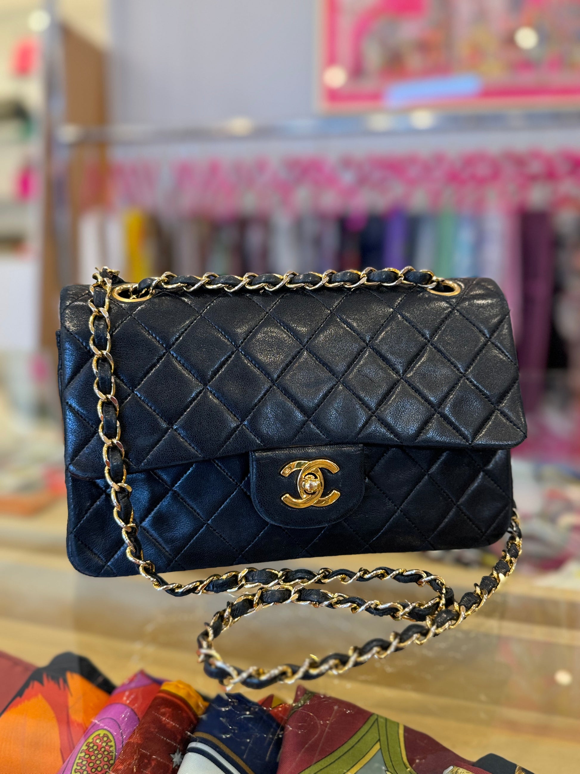 • Navy blue quilted lambskin
