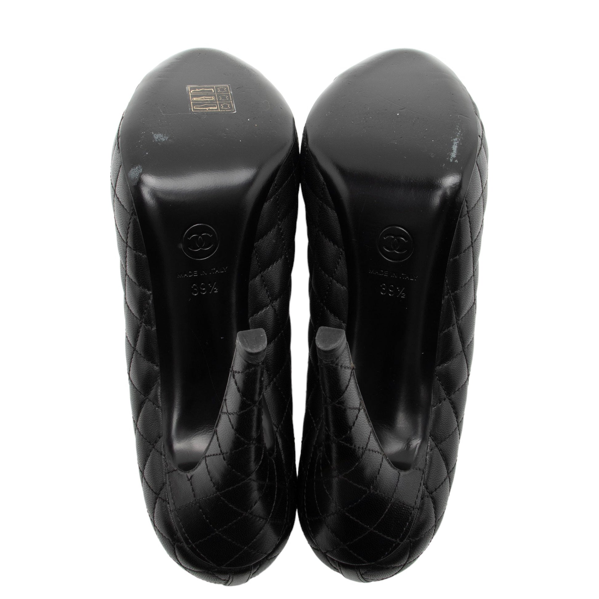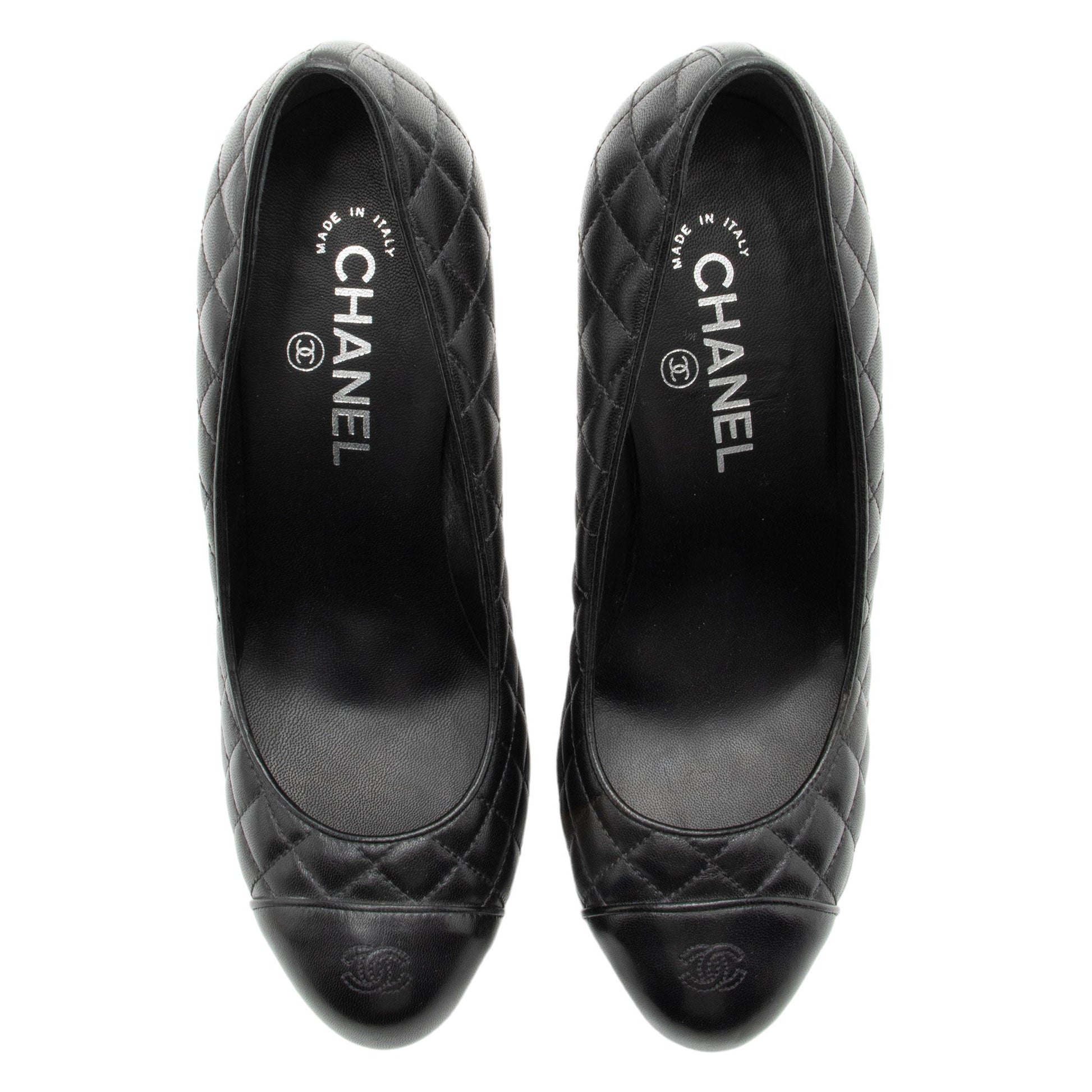 Chanel Quilted Leather CC Cap Toe Platform Pumps - Size 9.5 / 39.5 (SHF-5kGom3)