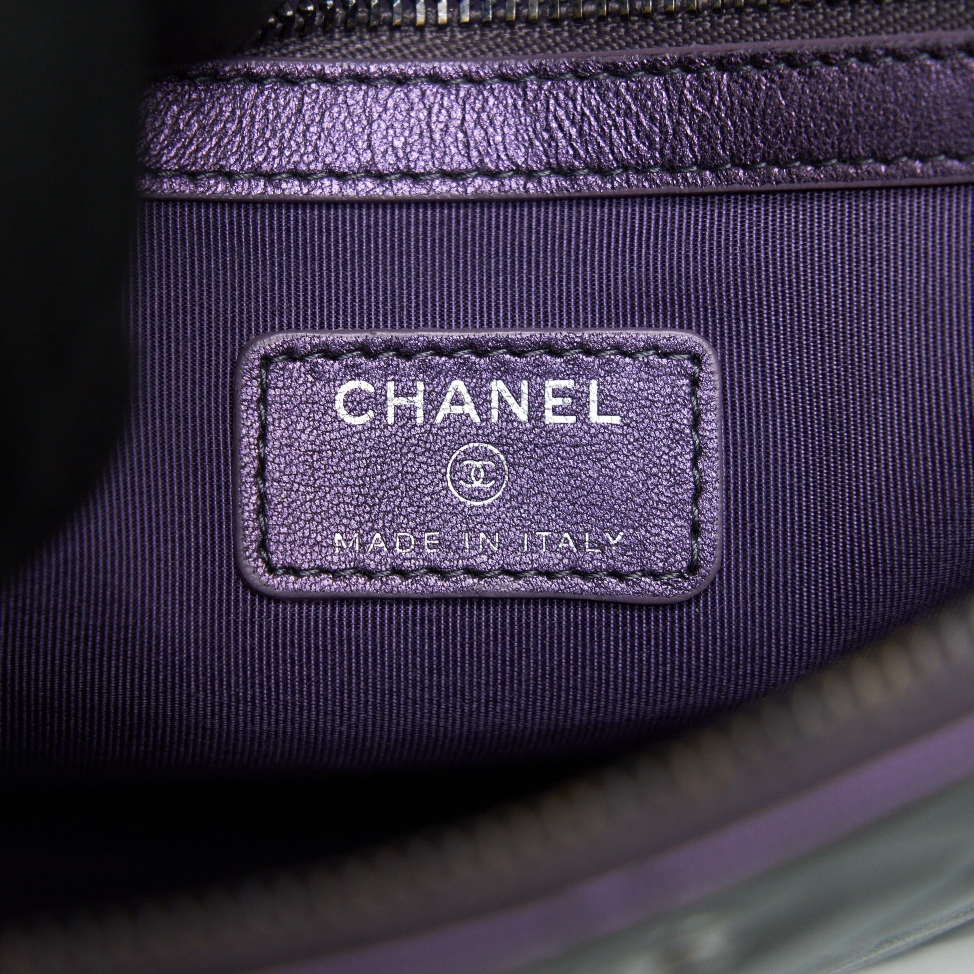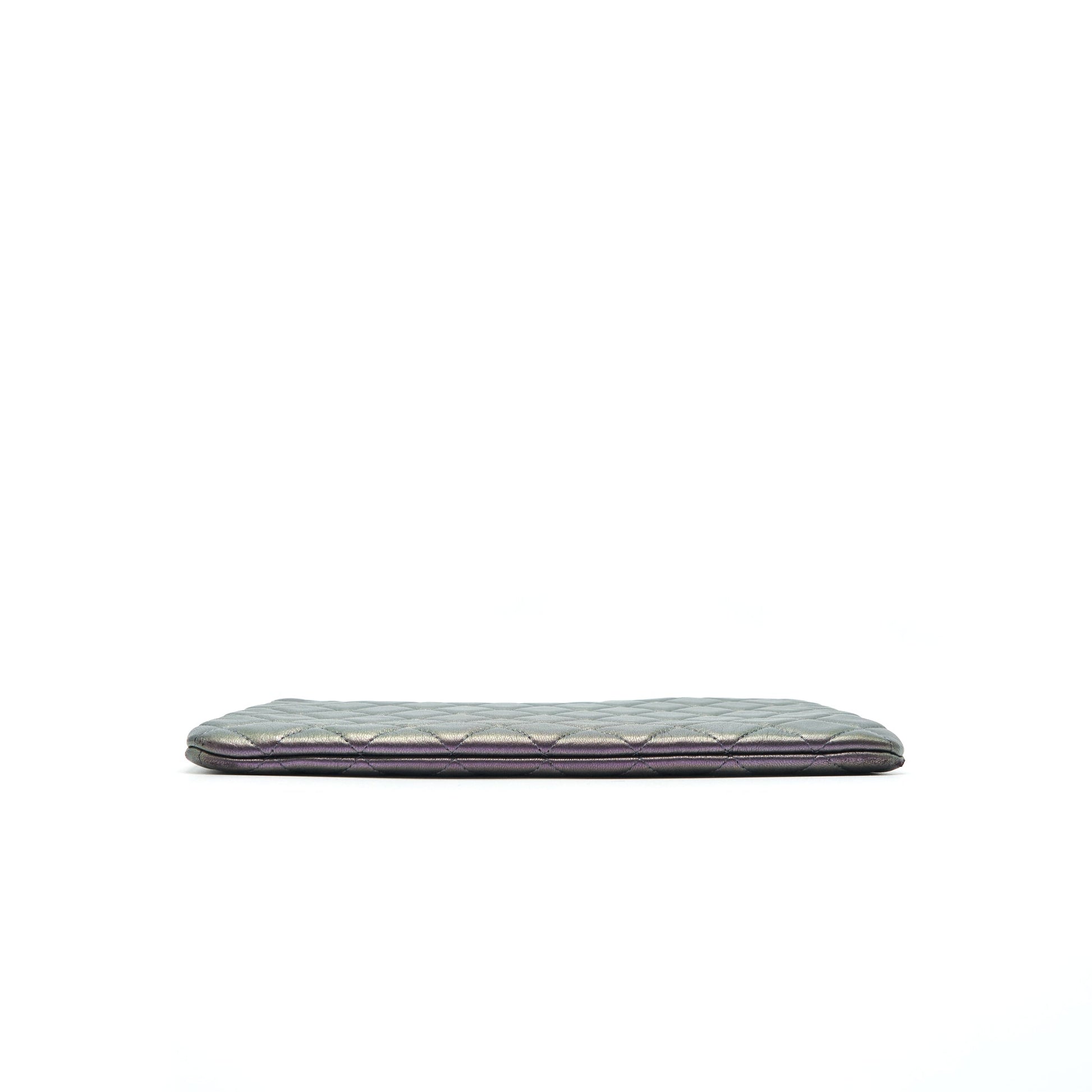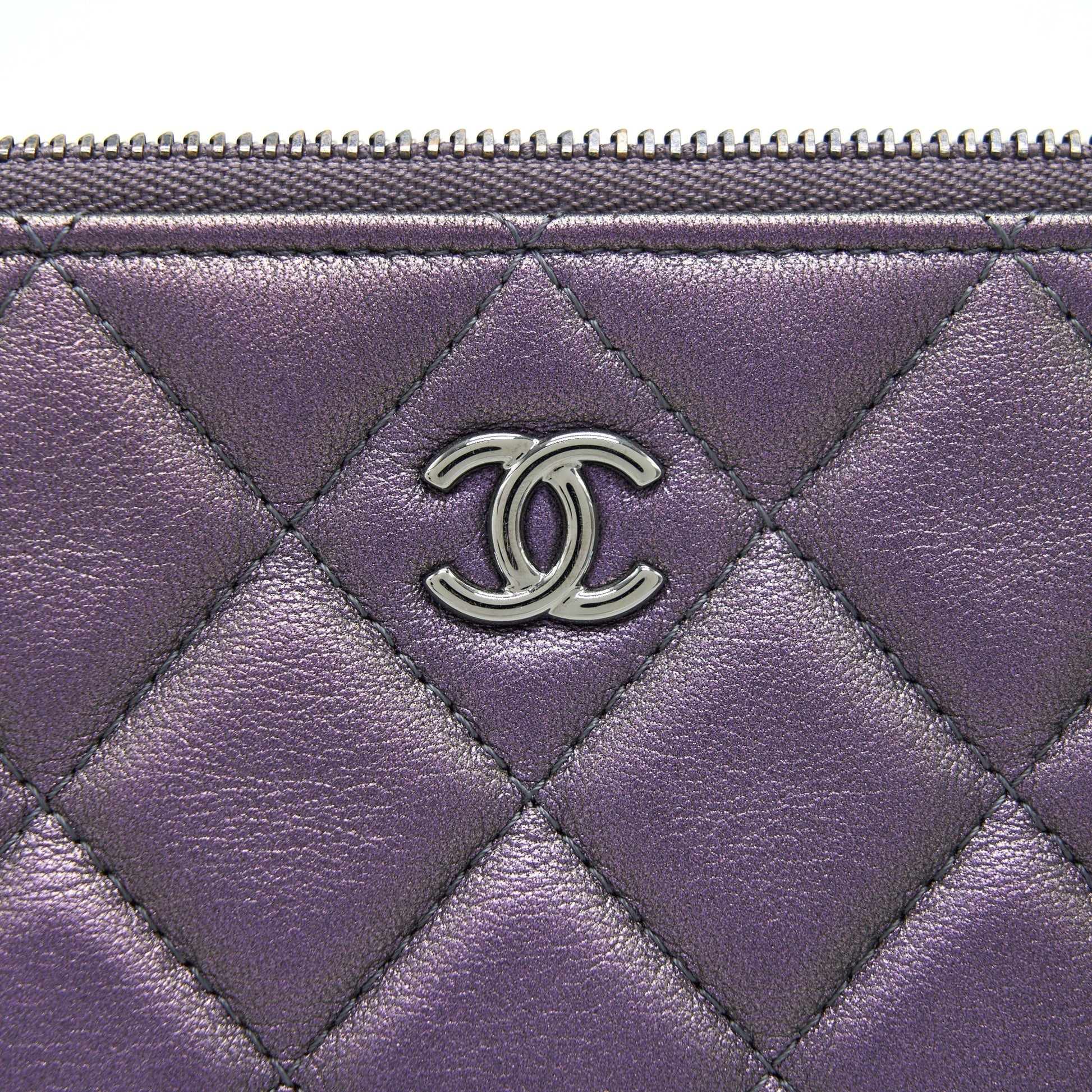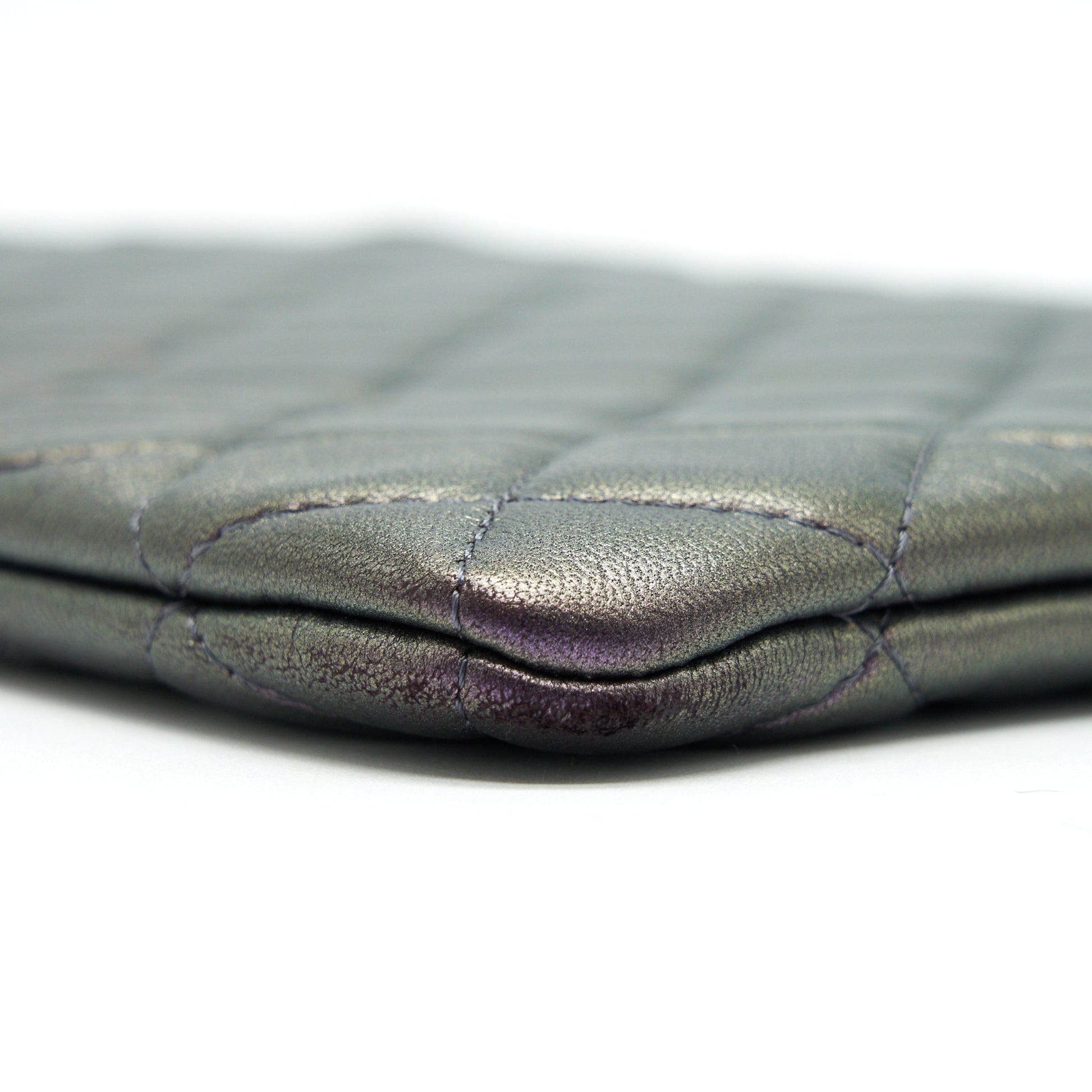 Chanel Quilted Leather Clutch Bag in Metallic Purple