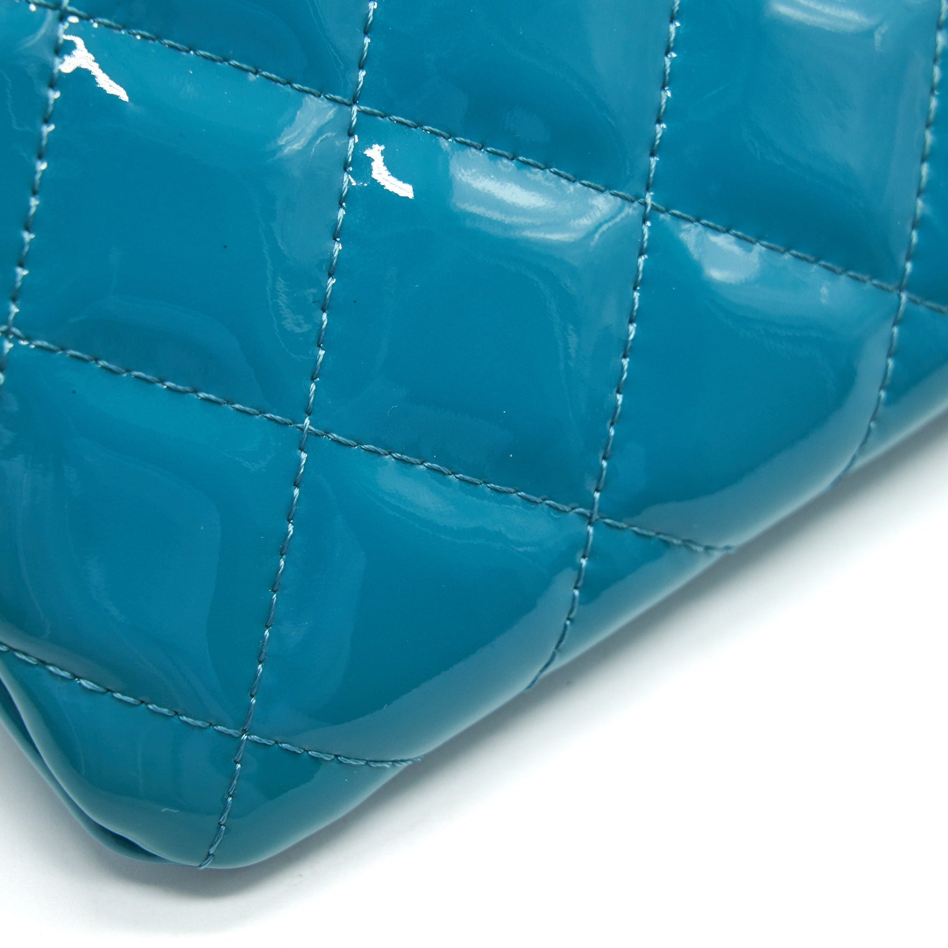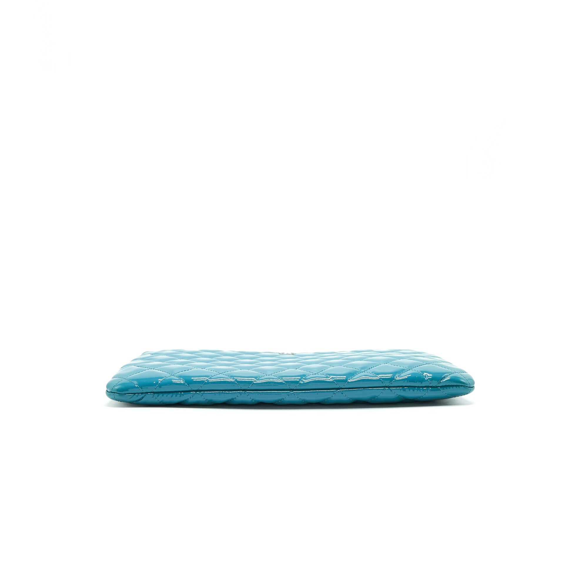 CHANEL QUILTED LEATHER CLUTCH BAG IN PATENT BLUE