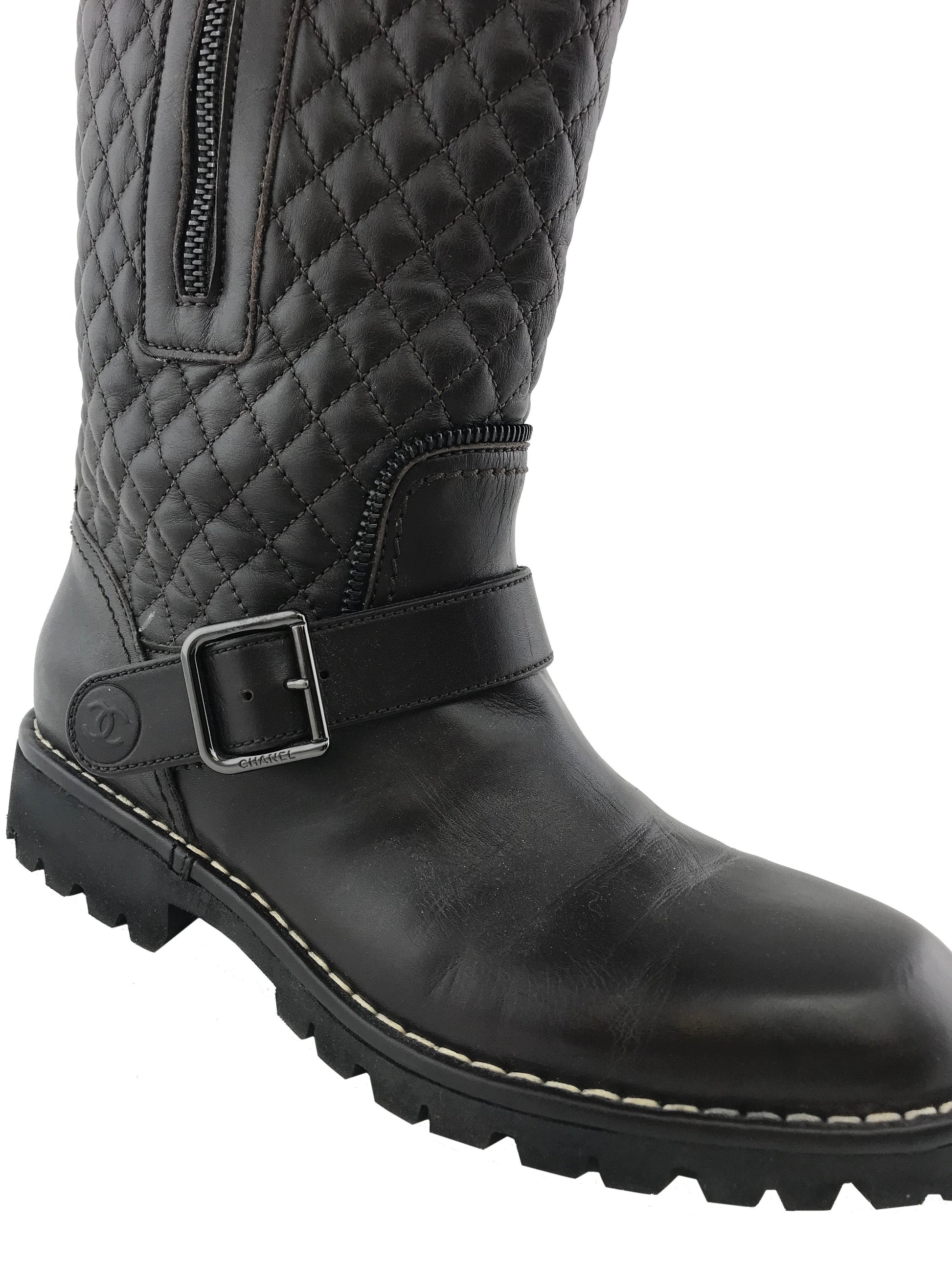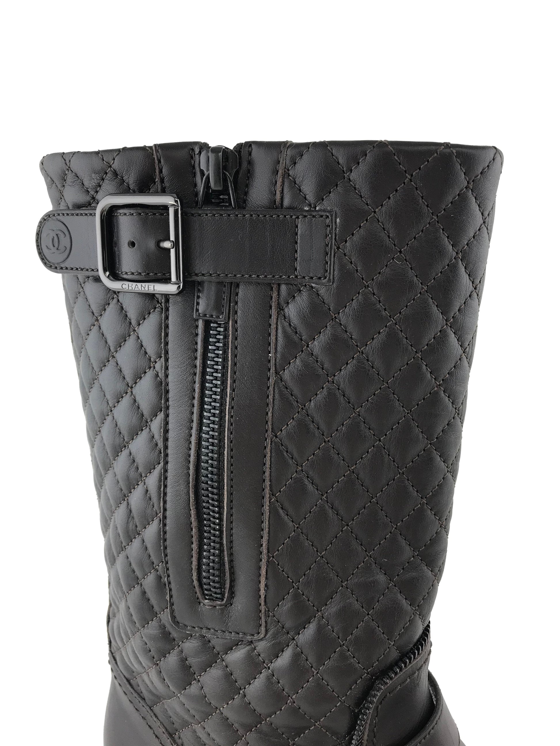 Chanel Quilted Leather Mid Calf Boots Size 9 (IT 39)crafted frombrownquilted leather with around toe. Featuring tonalstitching, rubber soles and buckle and zip closures at the sides.