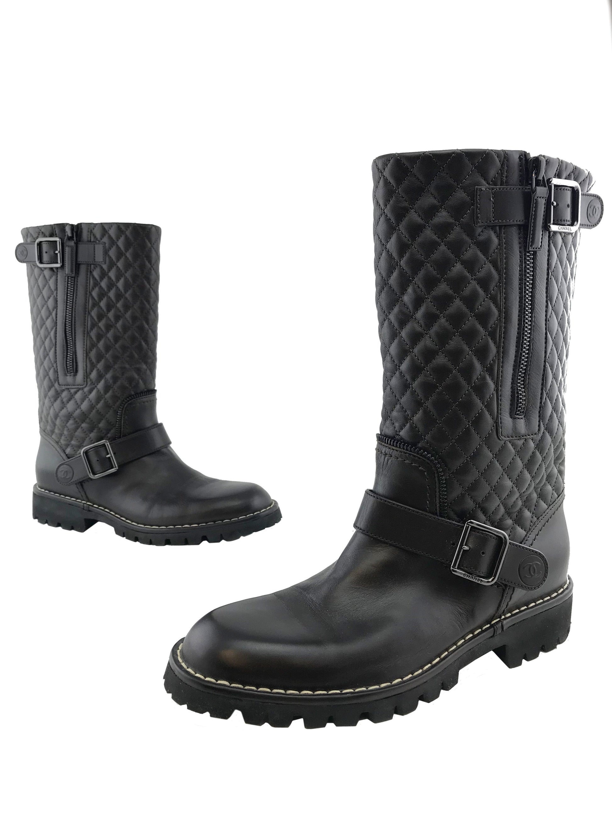Chanel Quilted Leather Mid Calf Boots Size 9