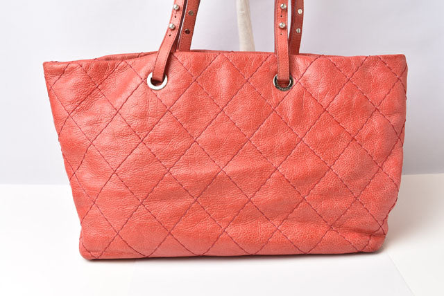 Item name : Chanel Quilted Leather Shoulder Tote Bag Dark Pink/Silver