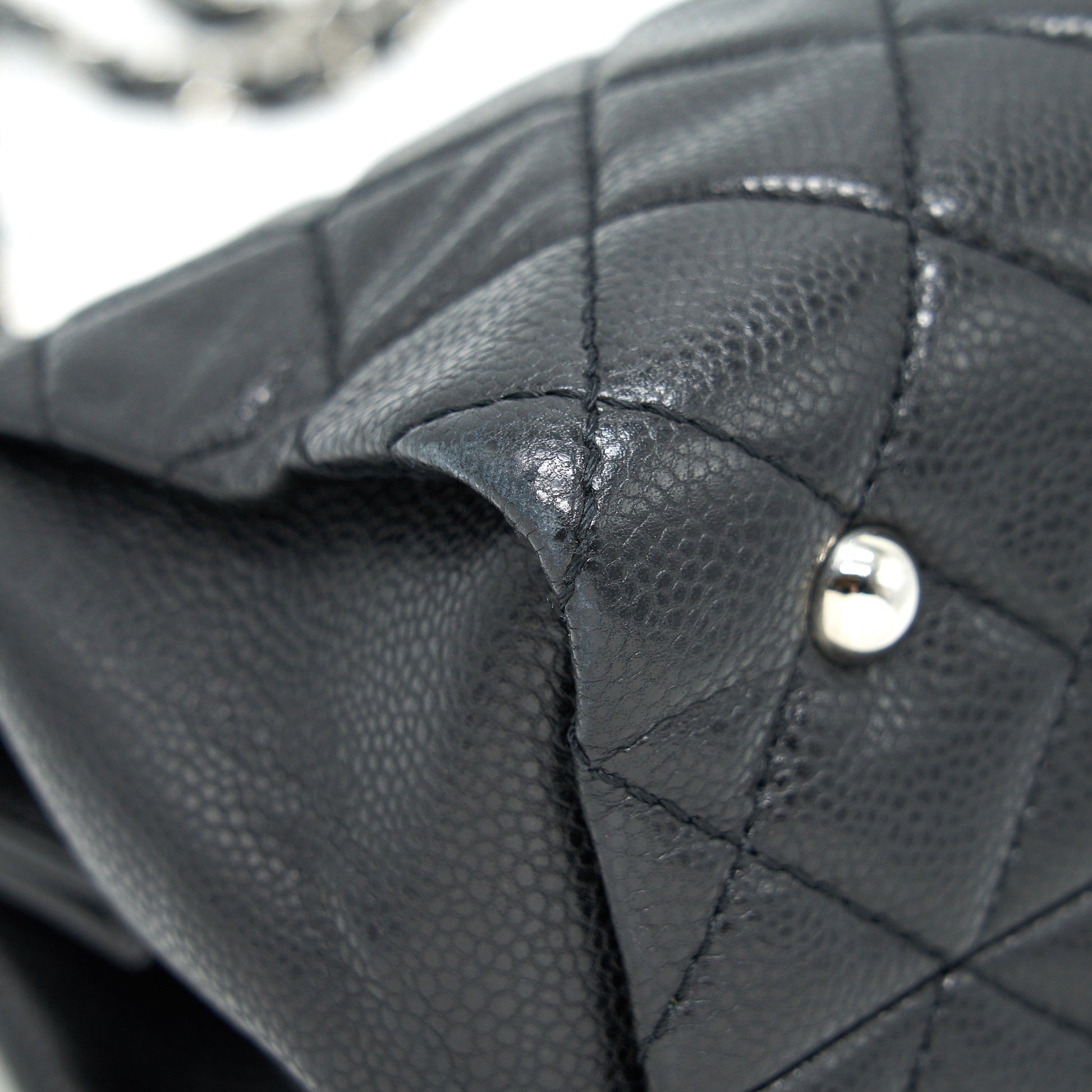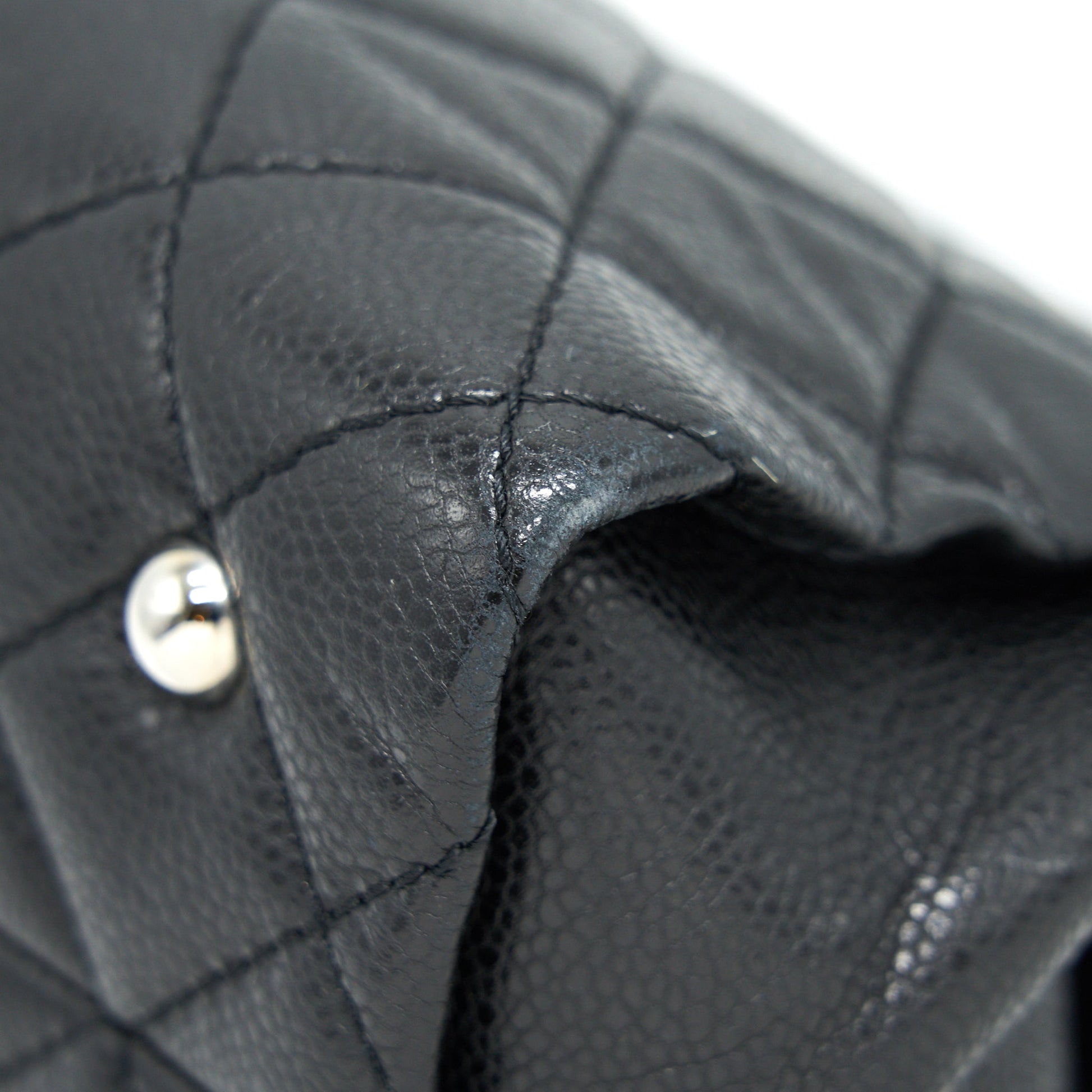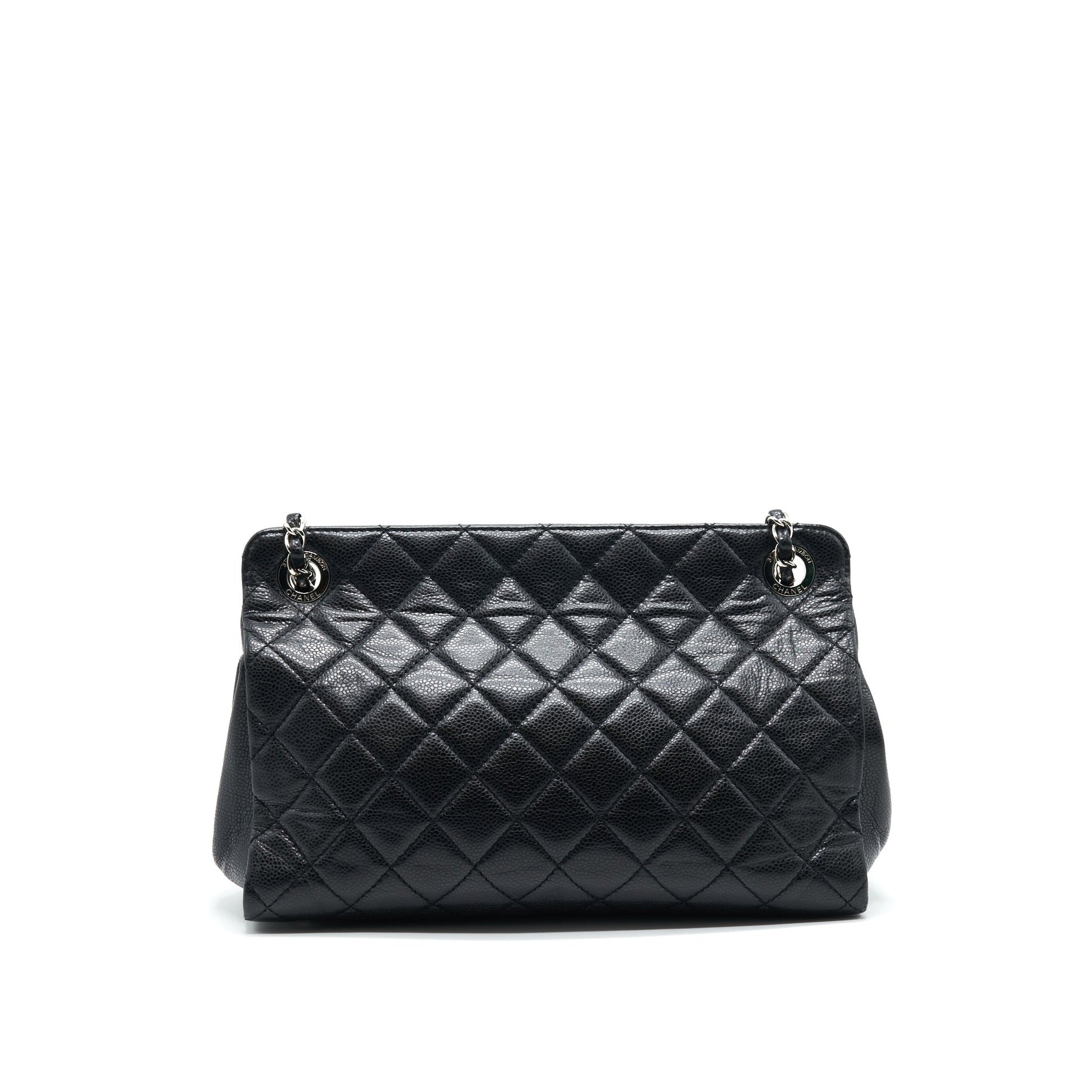 CHANEL QUILTED LEATHER TOTE BAG WITH CHAIN IN CARVIAR BLACK SHW