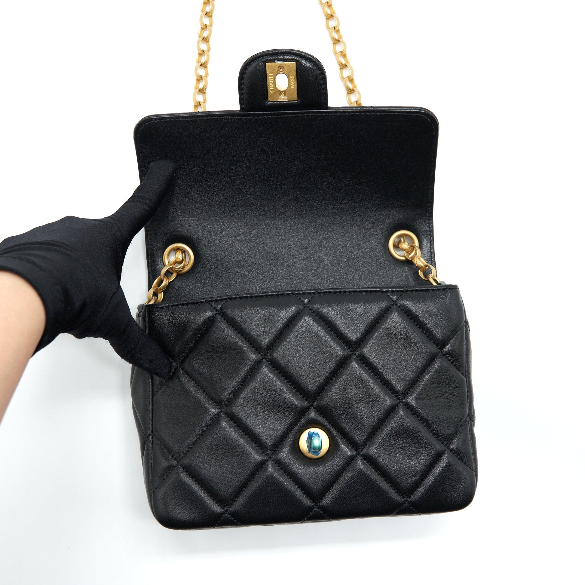 Chanel Quilted Medium Square Flap Bag Lambskin Black Brushed GHW (Microchip)