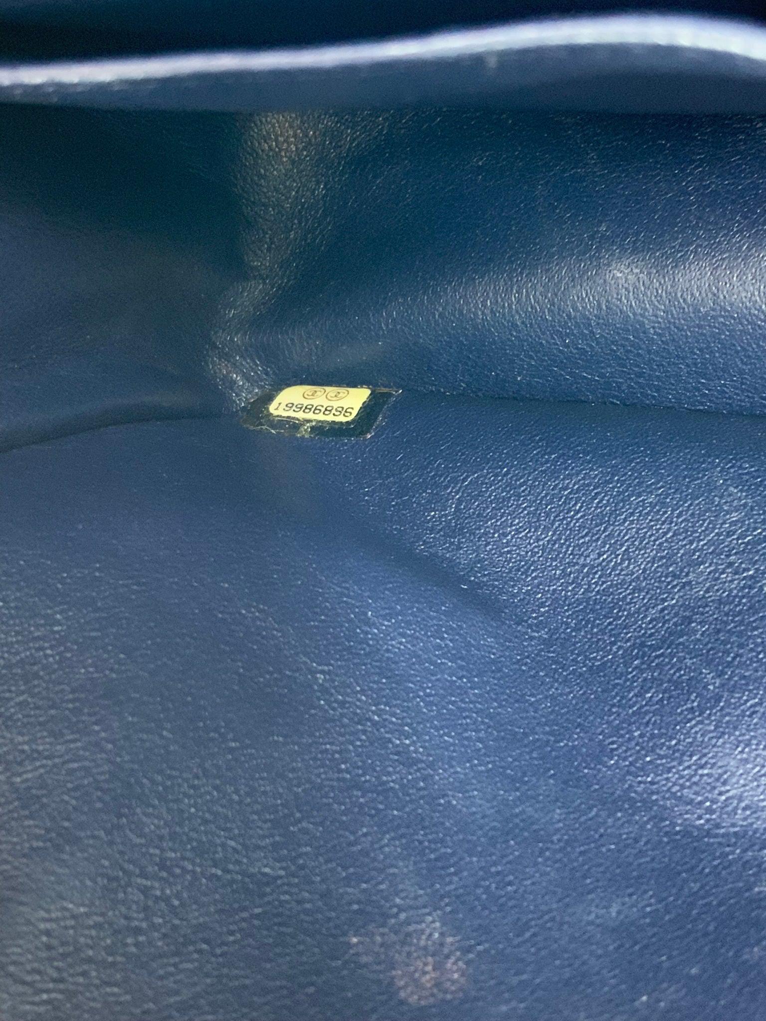 Condition:New.The exterior patent leather is like-new throughout. The chain link and leather shoulder straps are perfect and remain strong and sturdy. The silver-tone hardware shines bright and new with a few hairline surface scratches that can only be noticed at very close inspection.The leather under the front flap has a few minor surface scratches and scuff marks. The front of the inner-most flap has minor indentations from the chain straps. The interior lining is overall clean with a few subtle marks.
