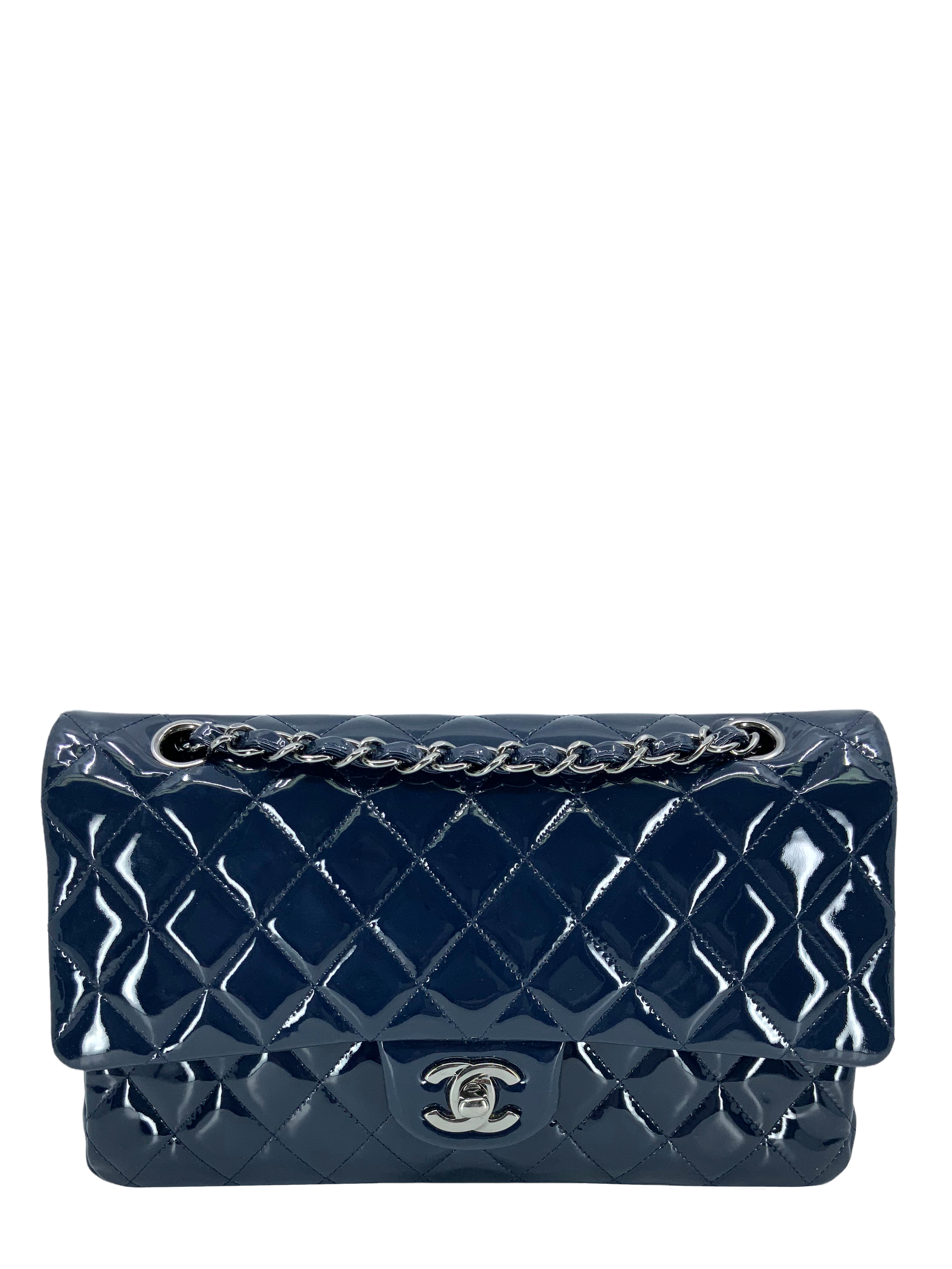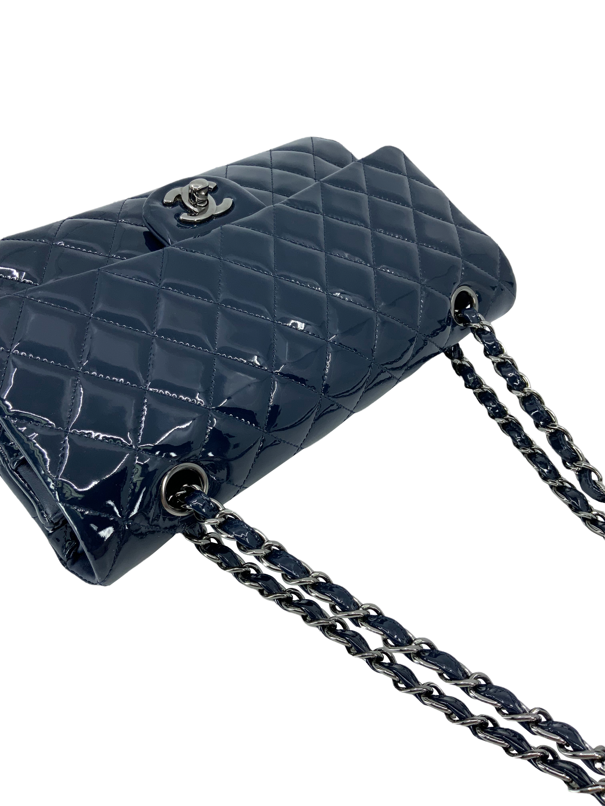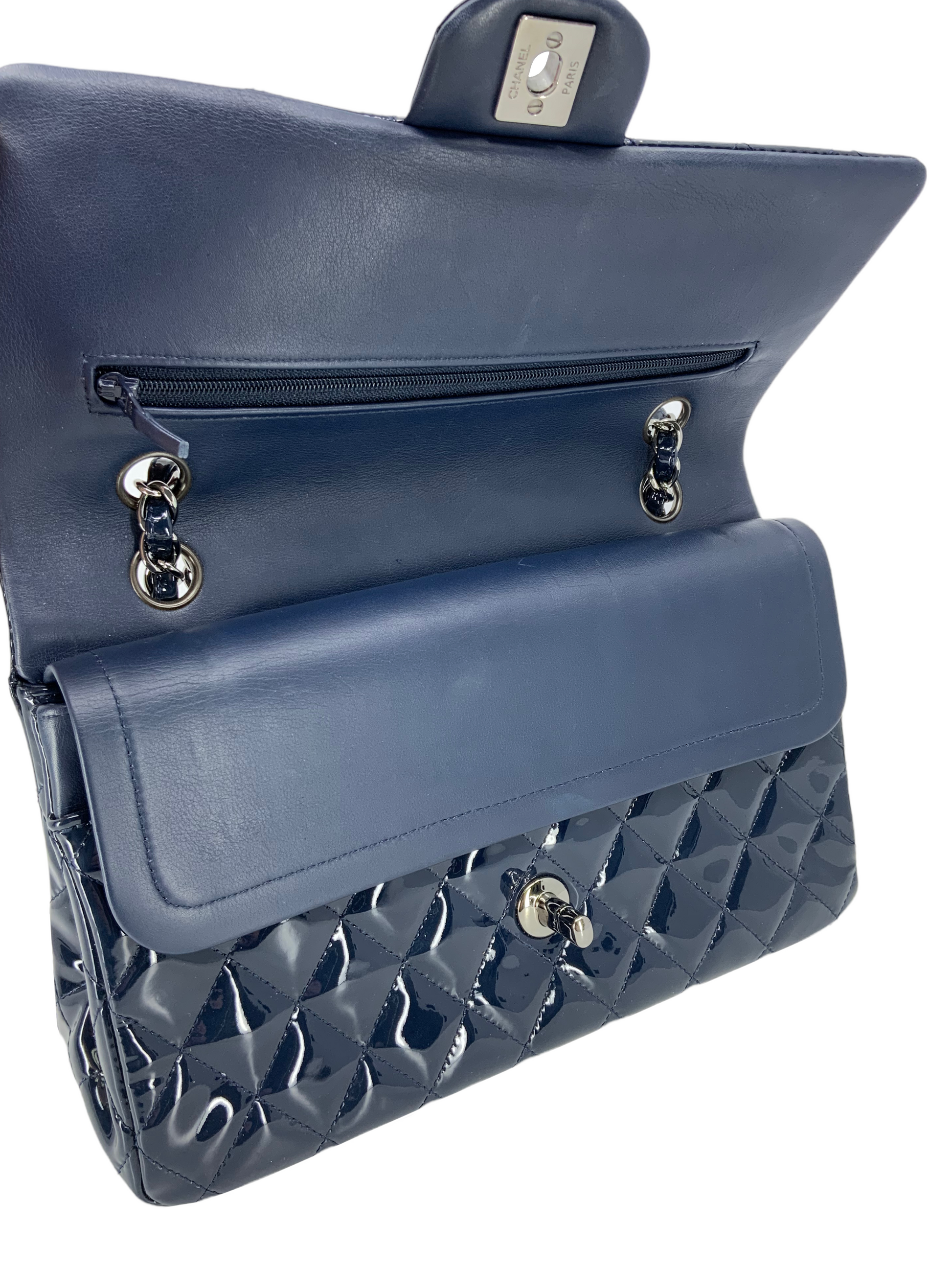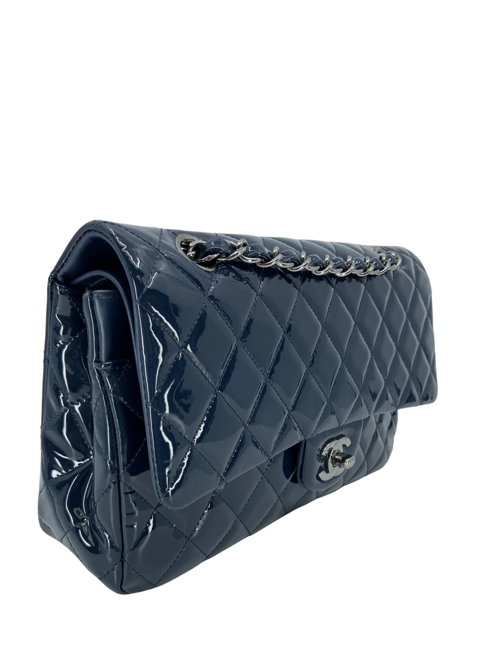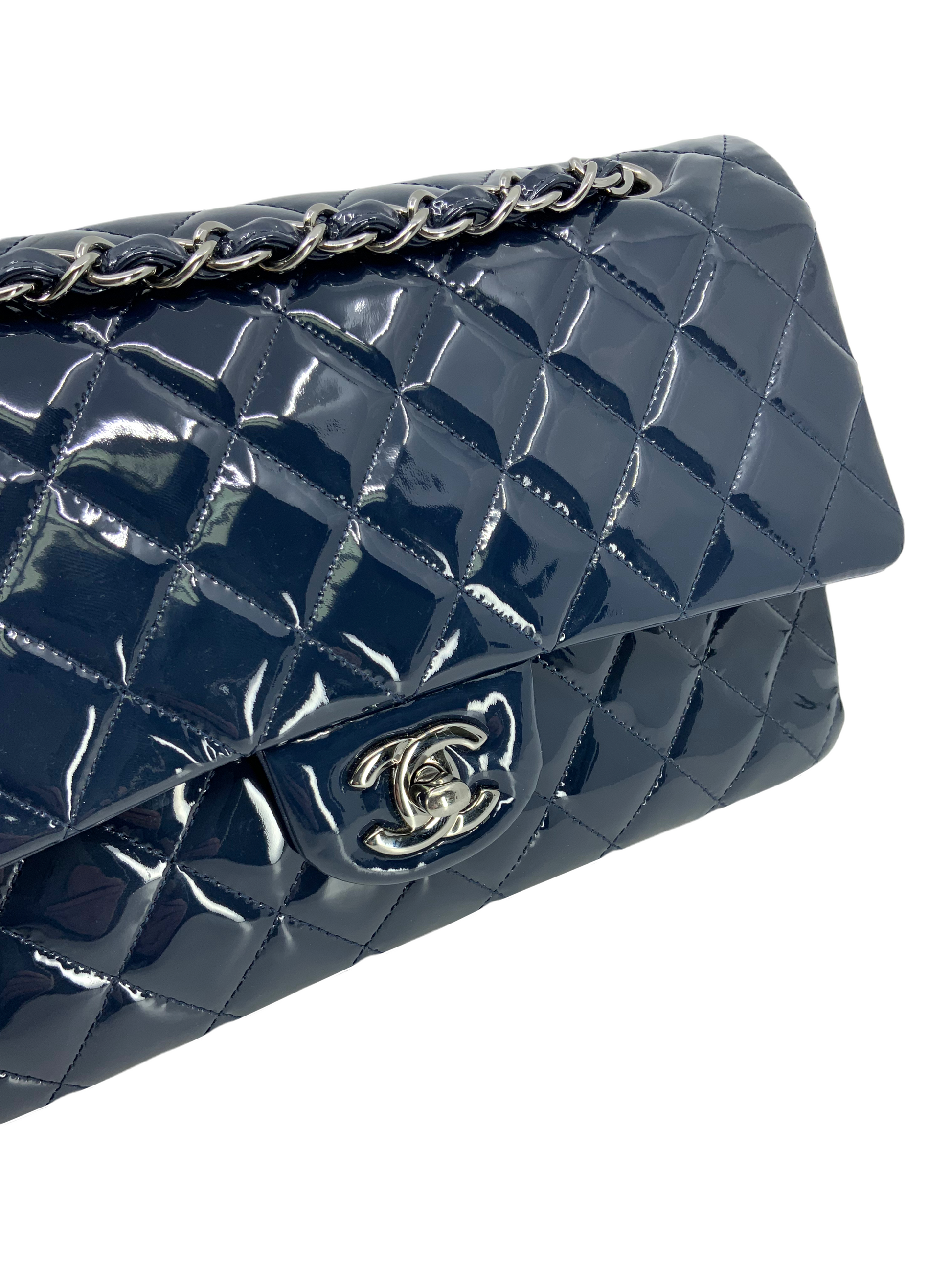 Chanel Quilted Patent Leather Classic Medium Double Flap Bag