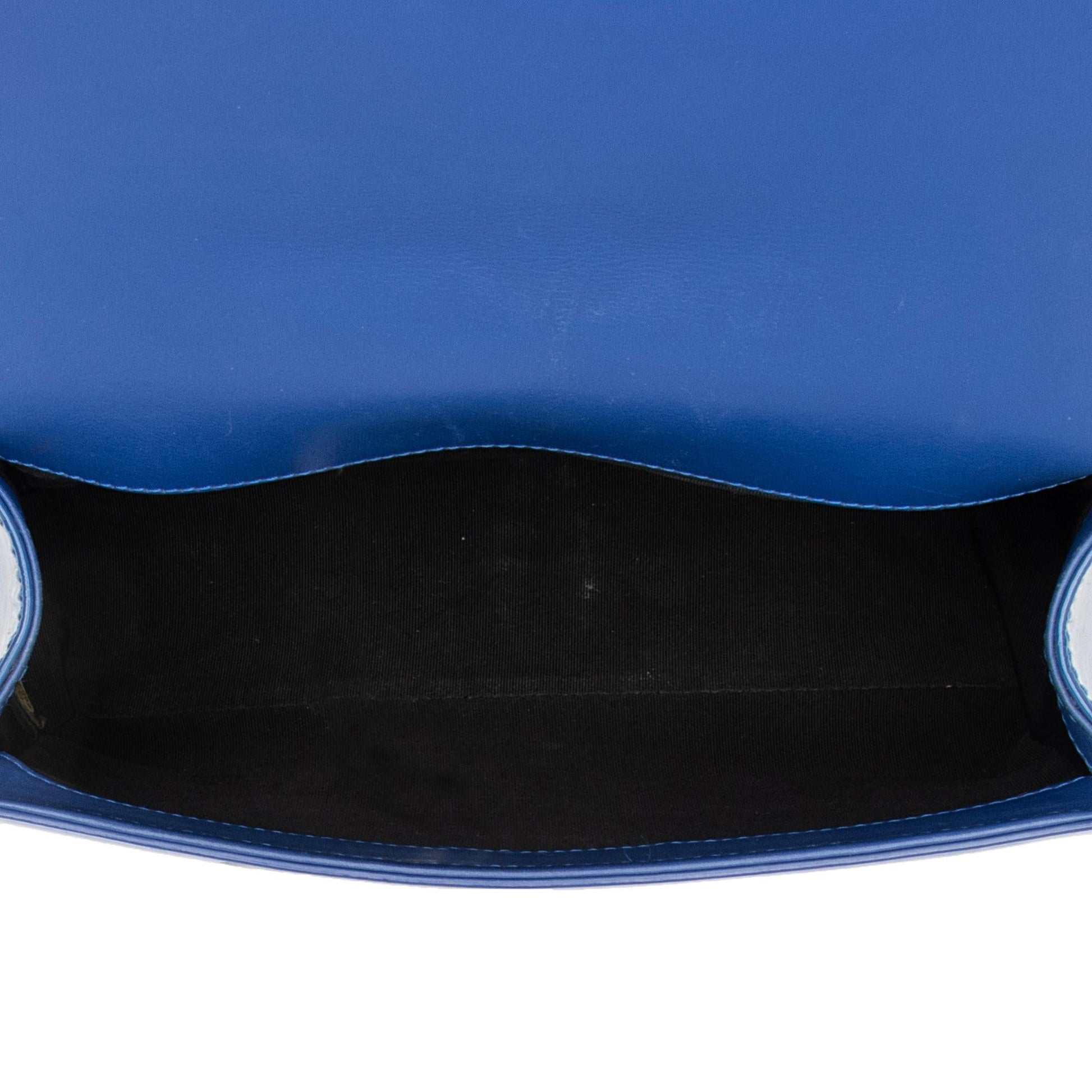 Condition Notes: Visible scuffs and marks to exterior bottom corners. Light scuffs and subtle creasing throughout exterior. Moderate creasing and wear throughout patent leather on shoulder strap. Light surface scratches to hardware. Light scuffs throughout interior. Light marks throughout interior.